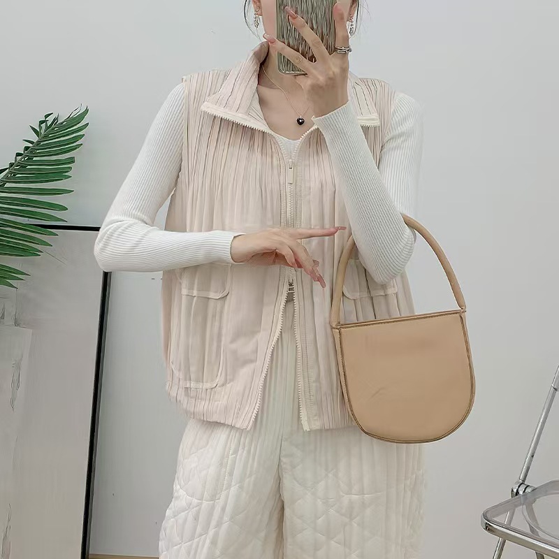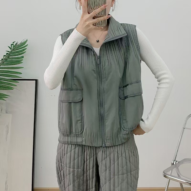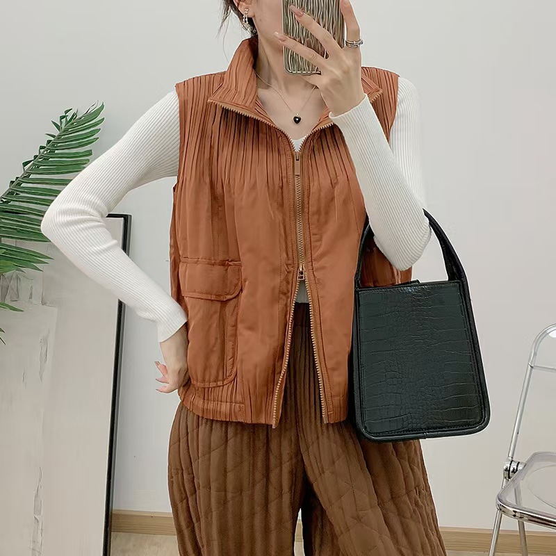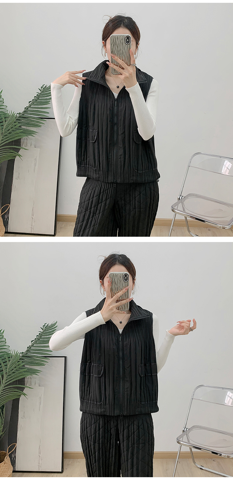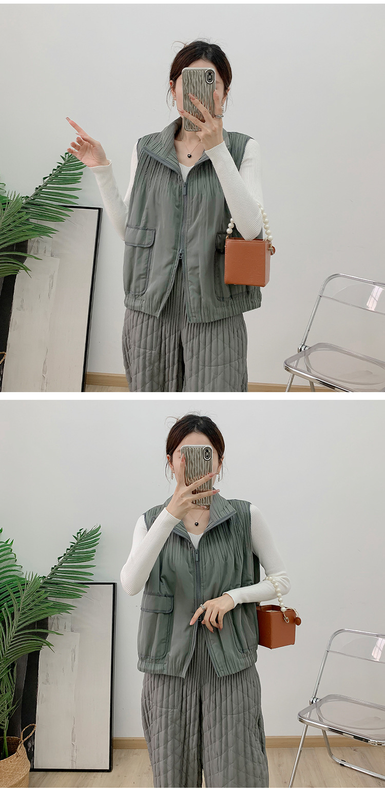 코튼 조끼 여성의 유행 하이 엔드 주름 가을과 겨울 두꺼운 외부 착용 민소매 자켓 루즈 탑