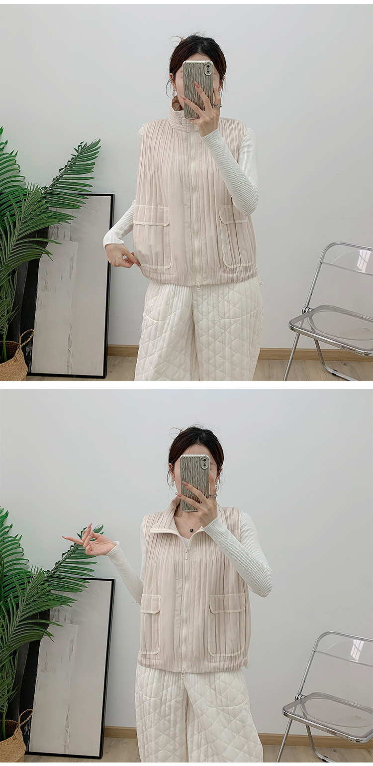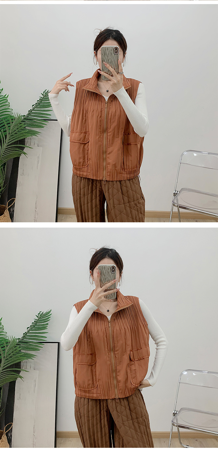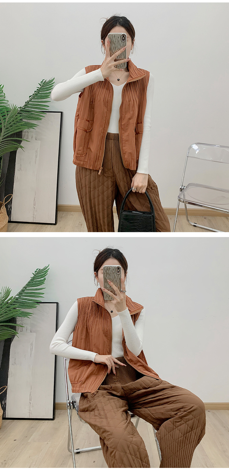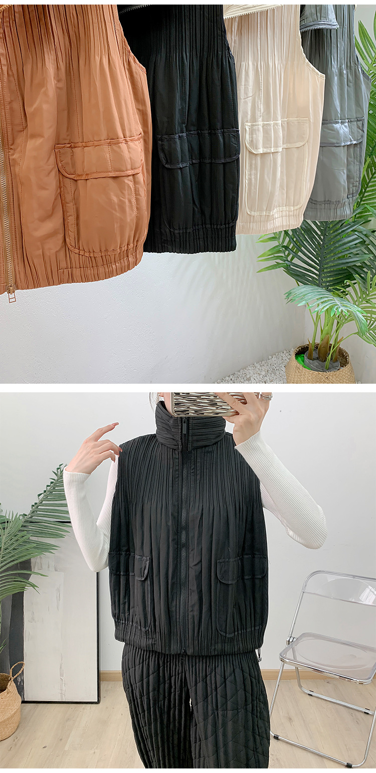 코튼 조끼 여성의 유행 하이 엔드 주름 가을과 겨울 두꺼운 외부 착용 민소매 자켓 루즈 탑스토어 가기