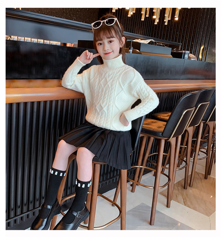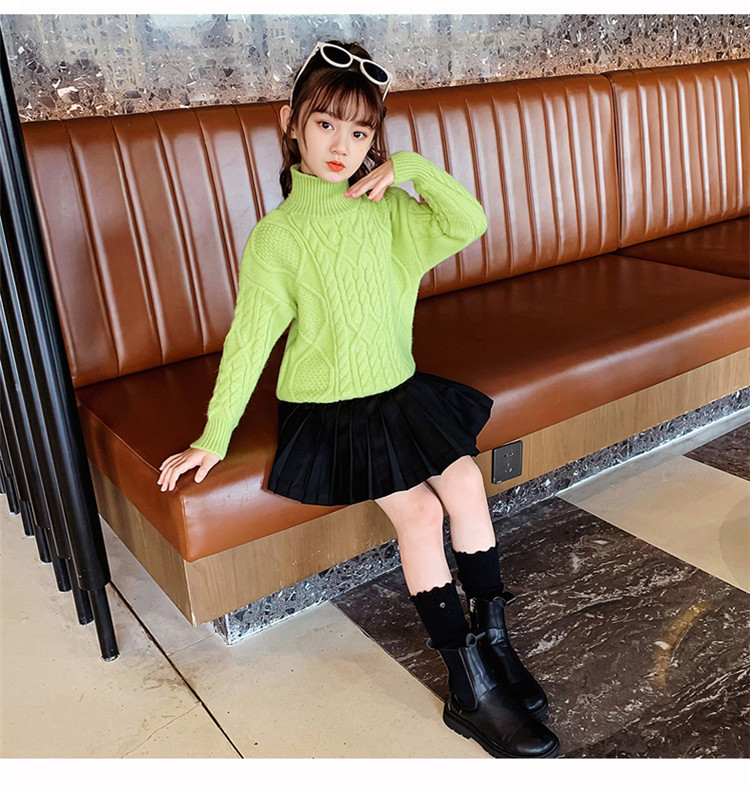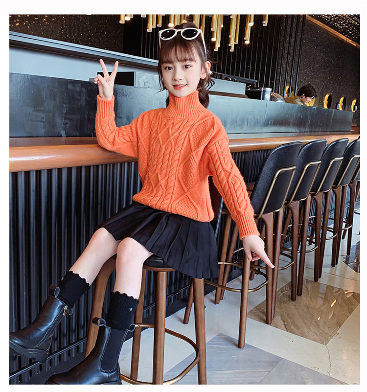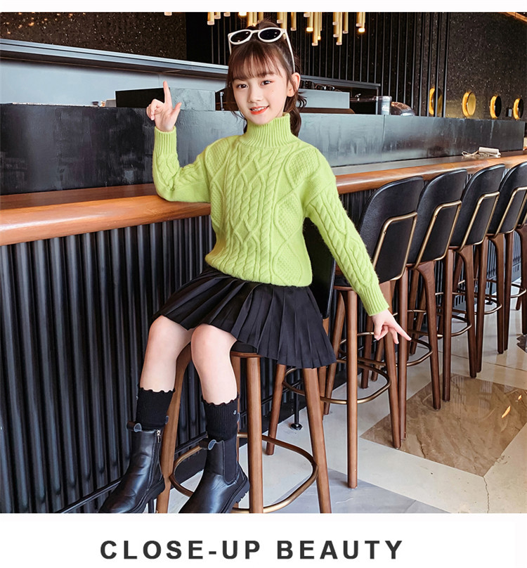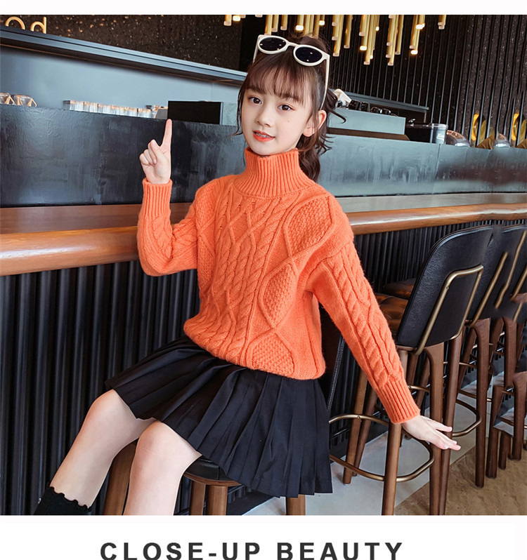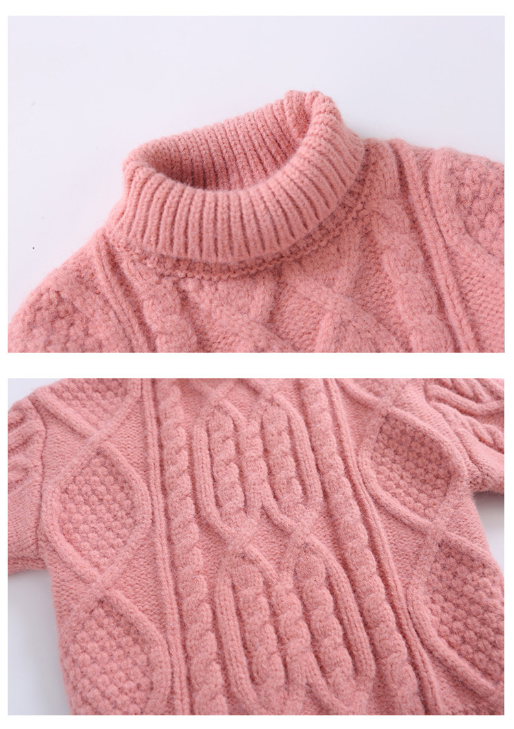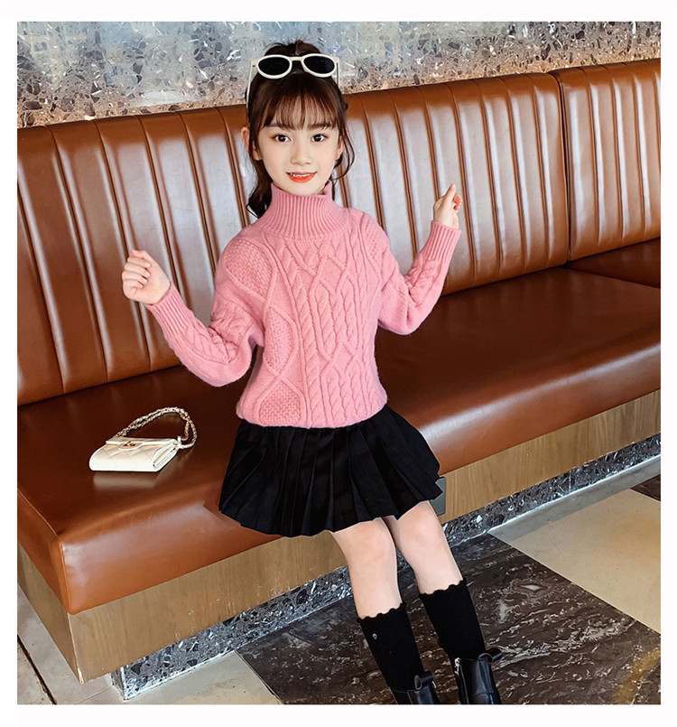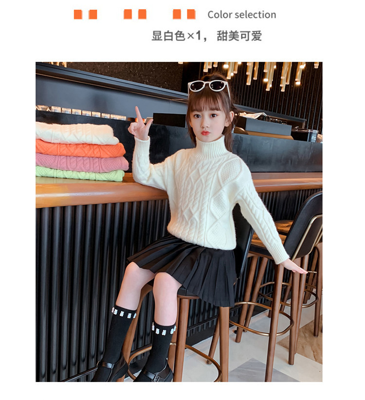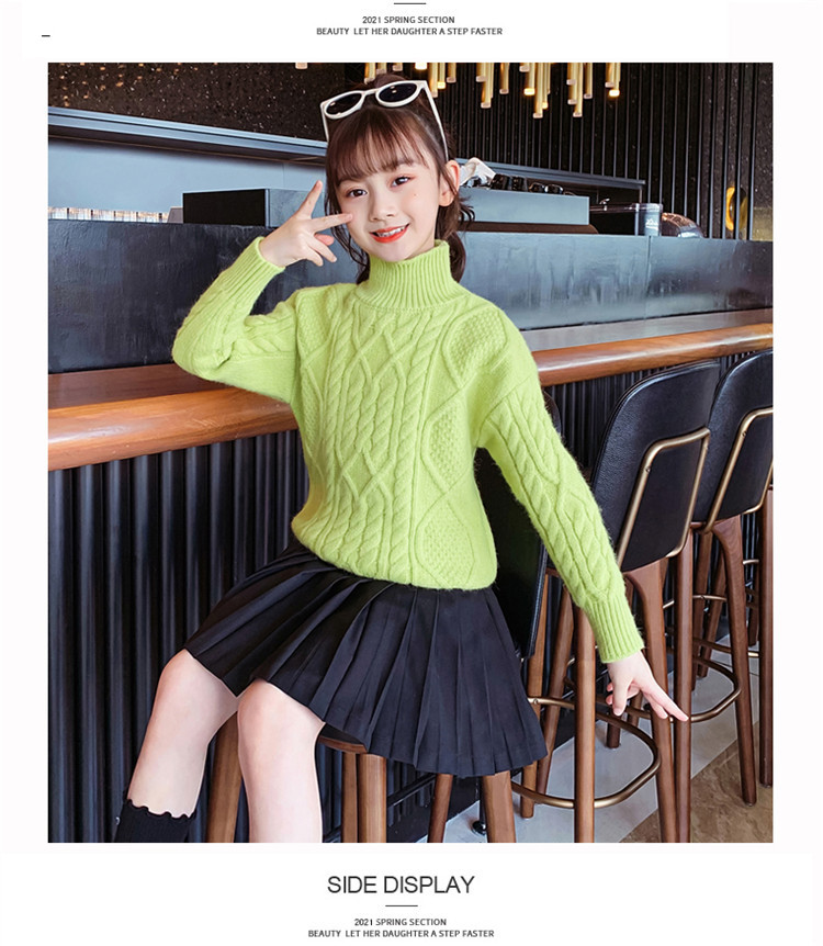 소녀의 가을과 겨울 스웨터 2024 새로운 높은 목베이스 셔츠 어린이를위한 단색 두꺼운 기모 니트 스웨터