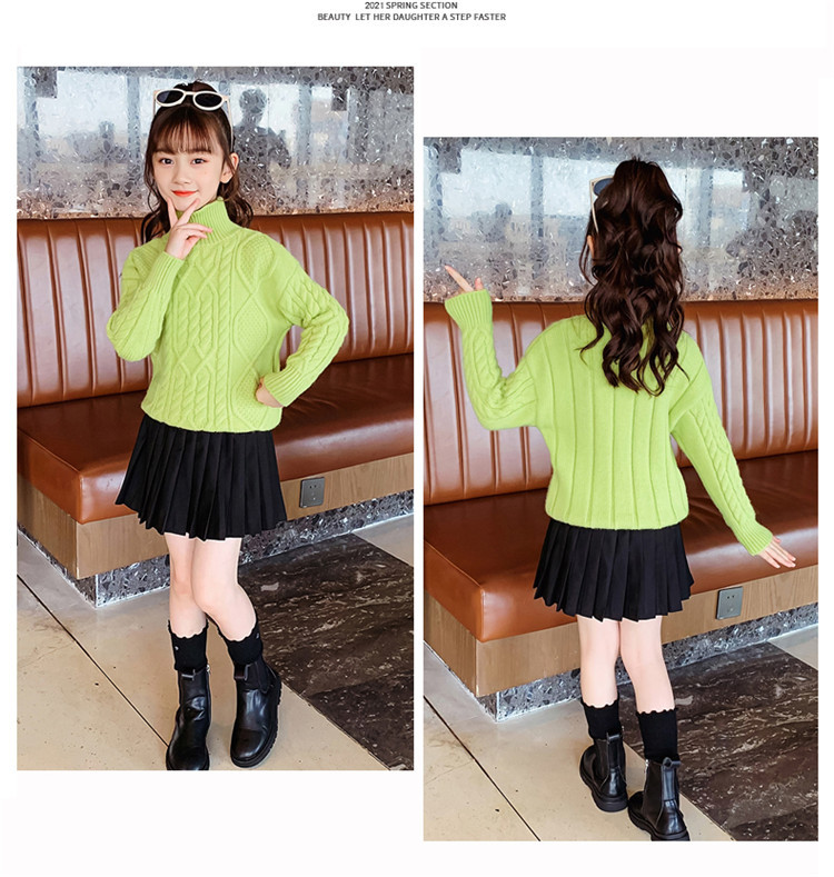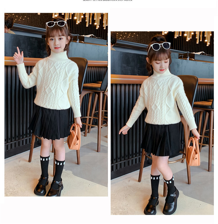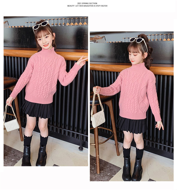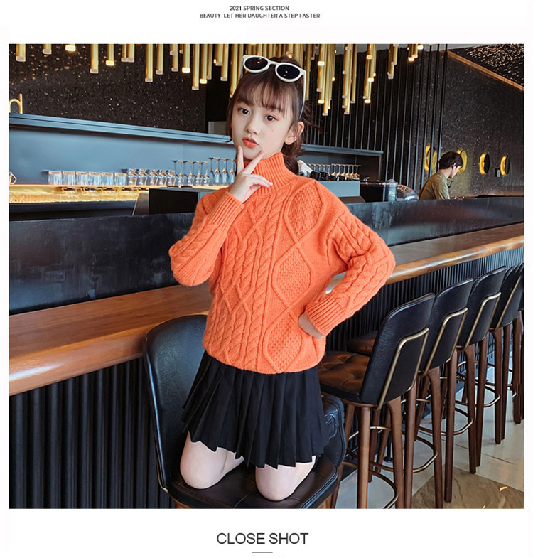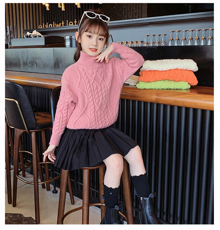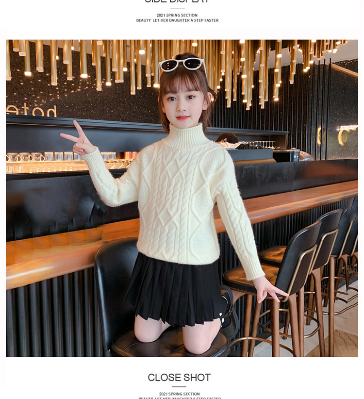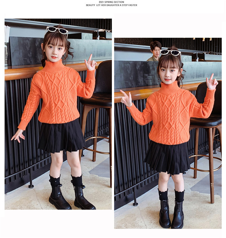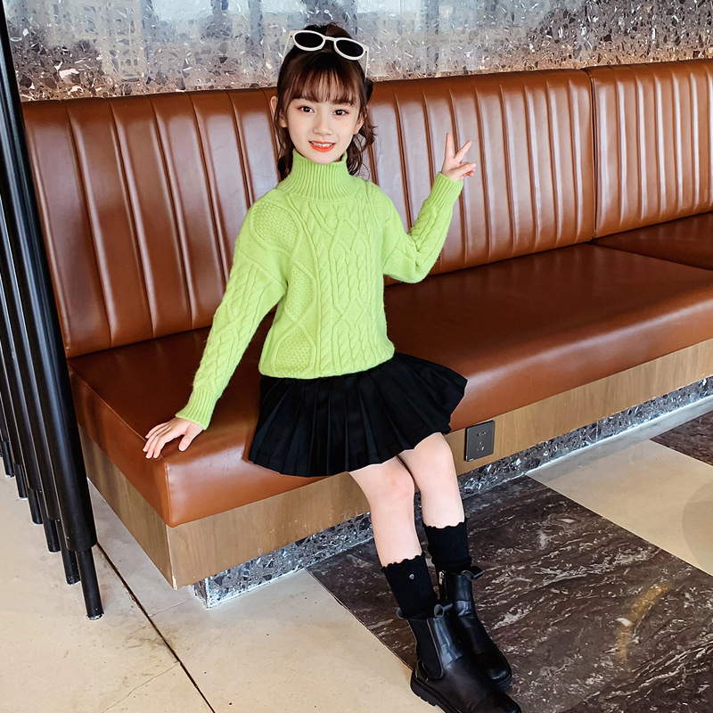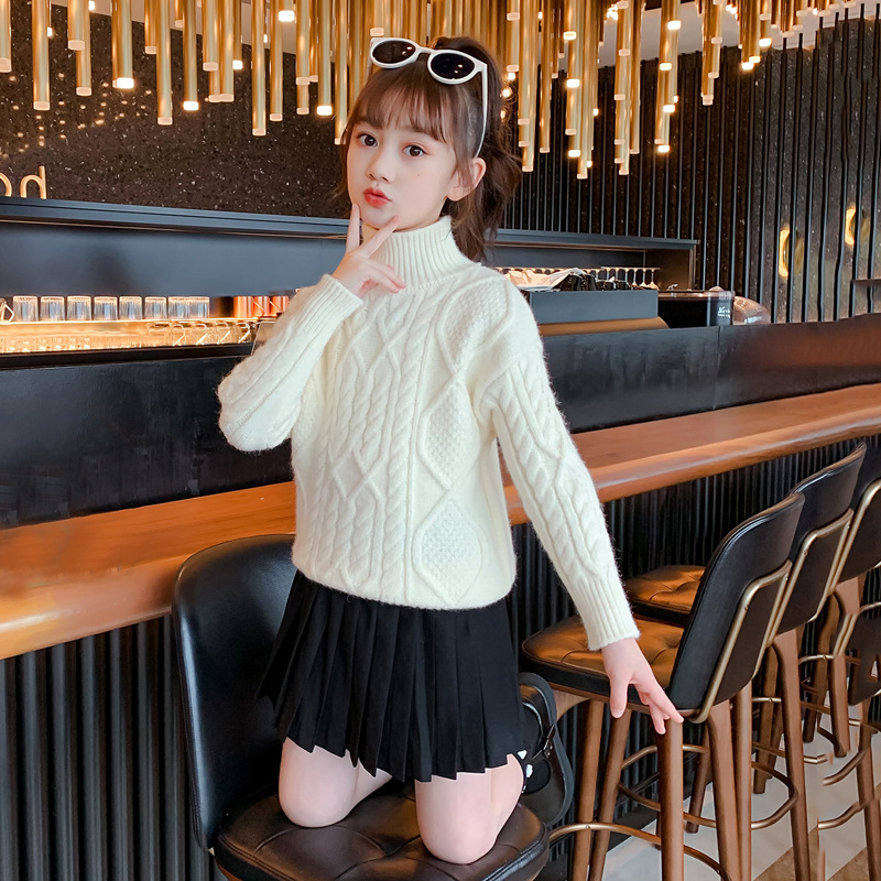 소녀의 가을과 겨울 스웨터 2024 새로운 높은 목베이스 셔츠 어린이를위한 단색 두꺼운 기모 니트 스웨터