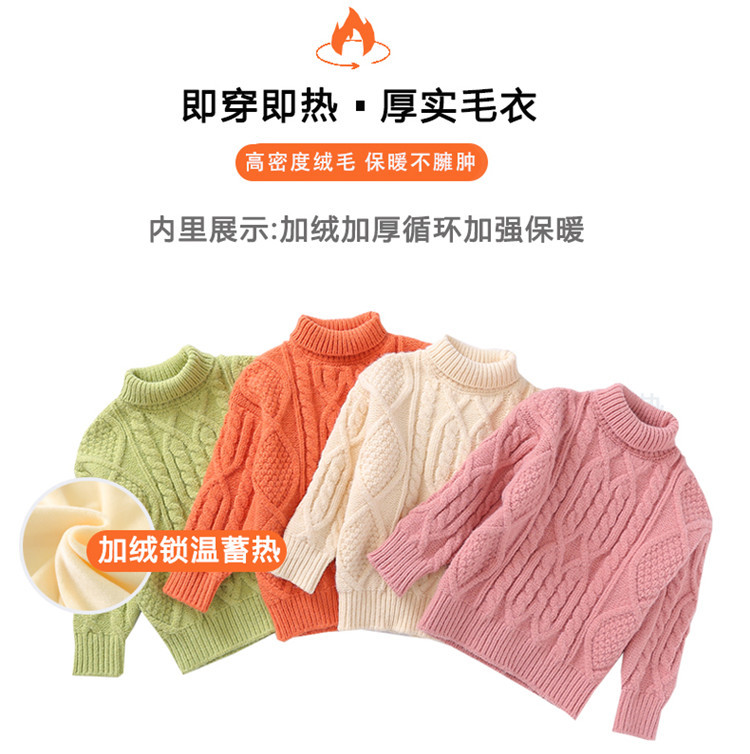 소녀의 가을과 겨울 스웨터 2024 새로운 높은 목베이스 셔츠 어린이를위한 단색 두꺼운 기모 니트 스웨터스토어 가기