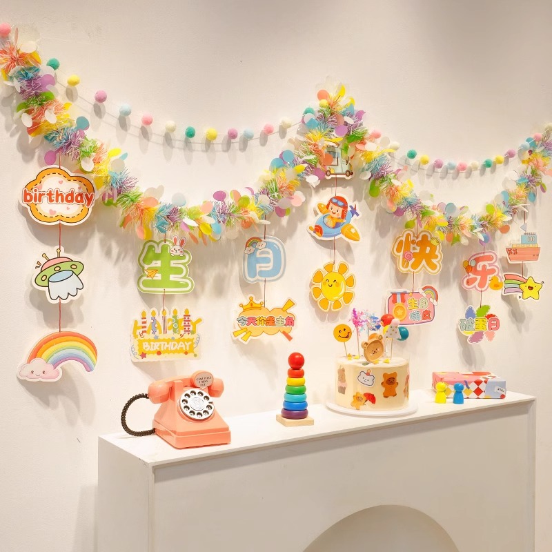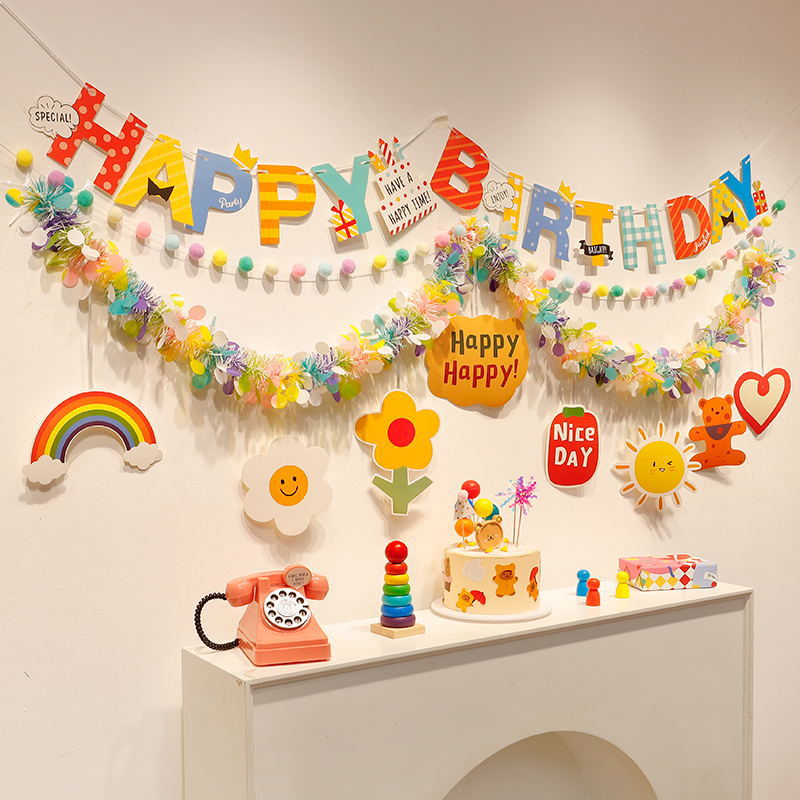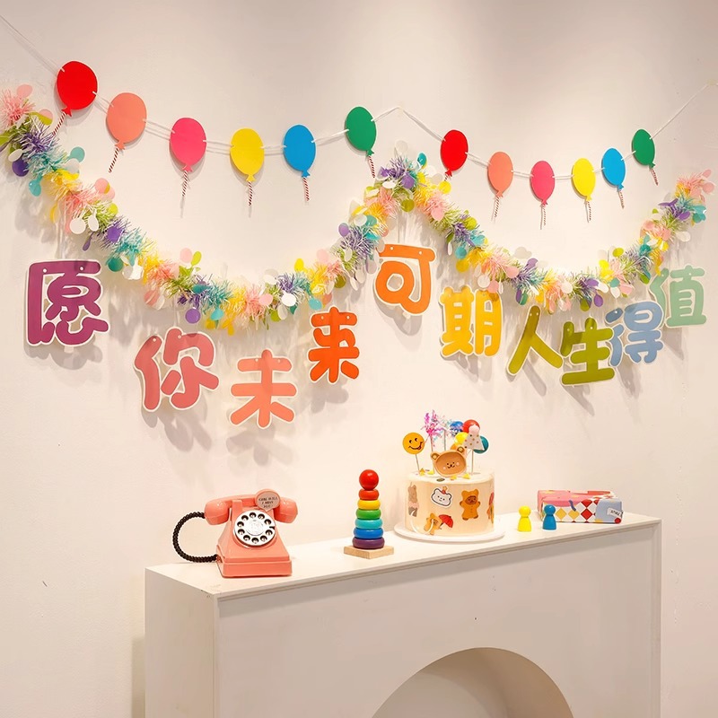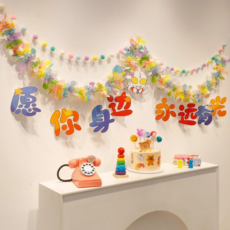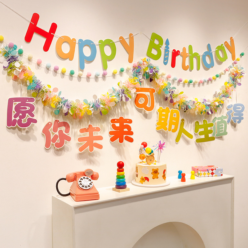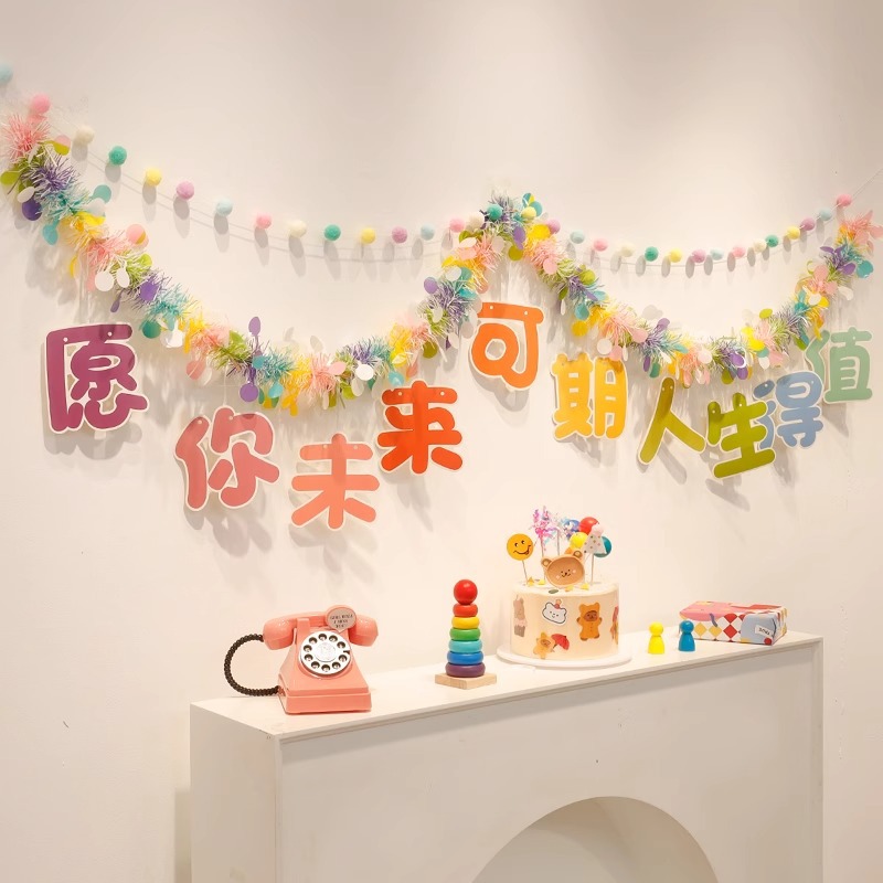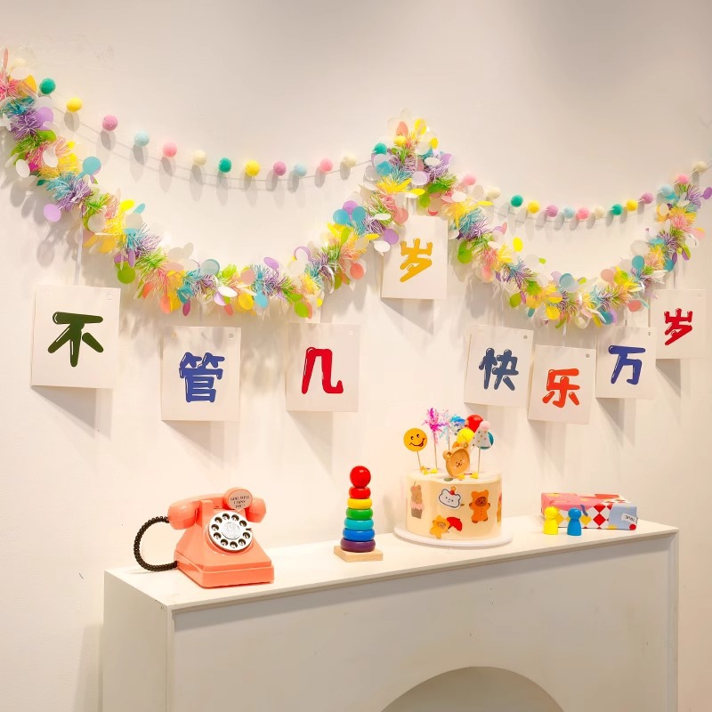 생일 장면 장식 마카롱 양모 풀 깃발 분위기 어린이 소년 소녀 아기 한 살짜리 사진 소품스토어 가기