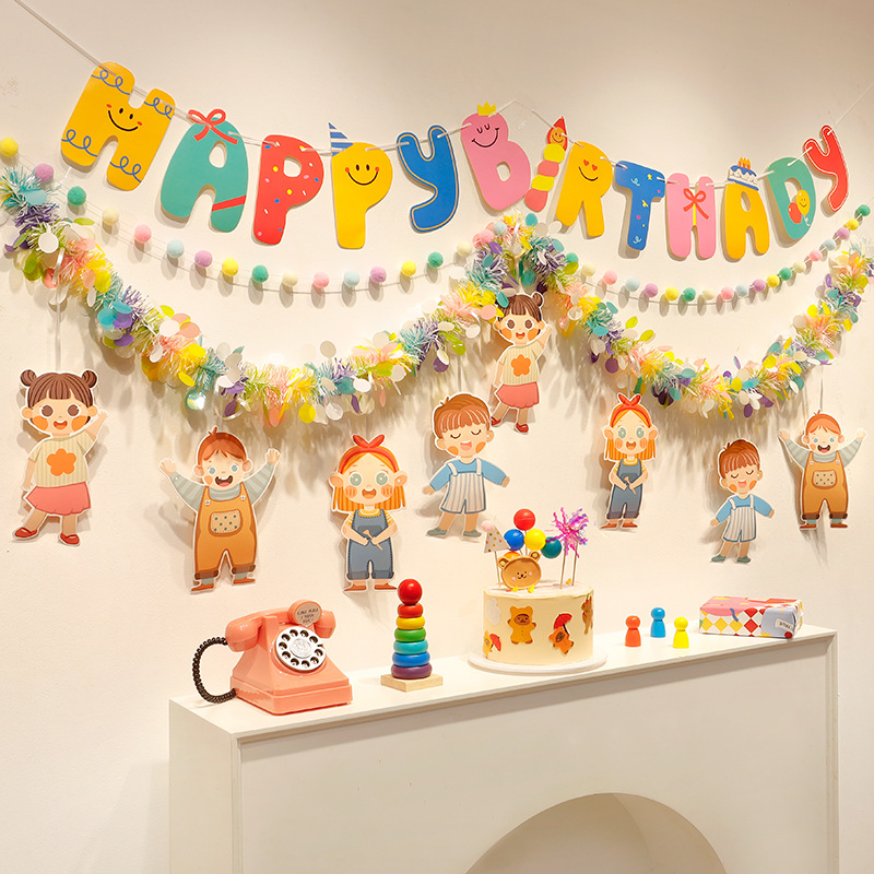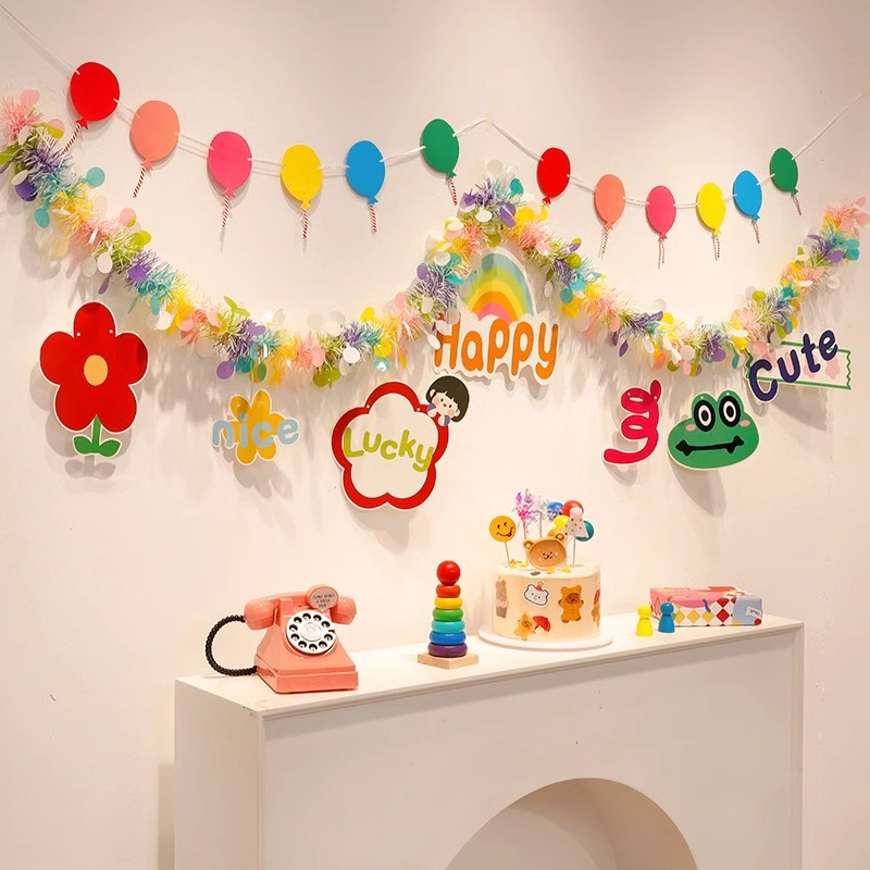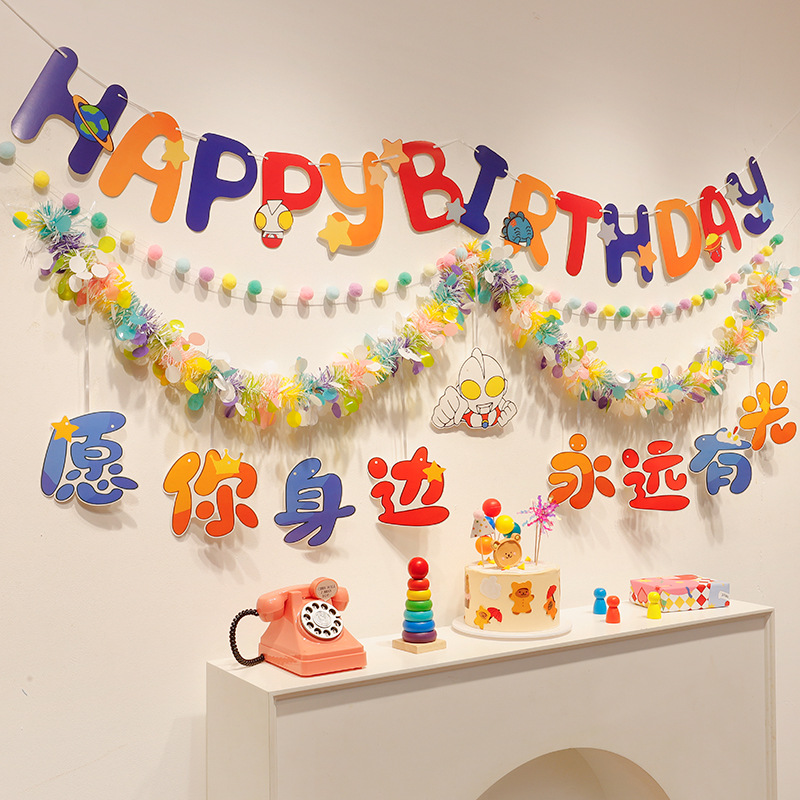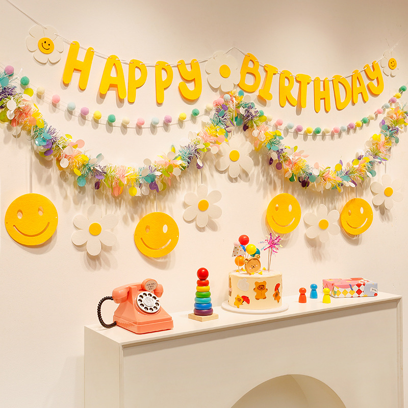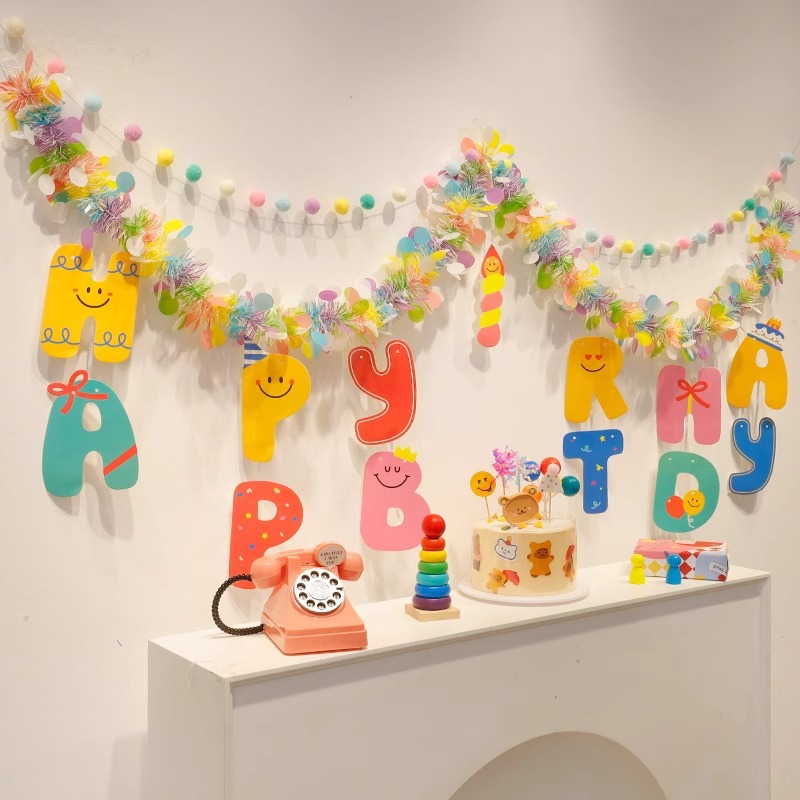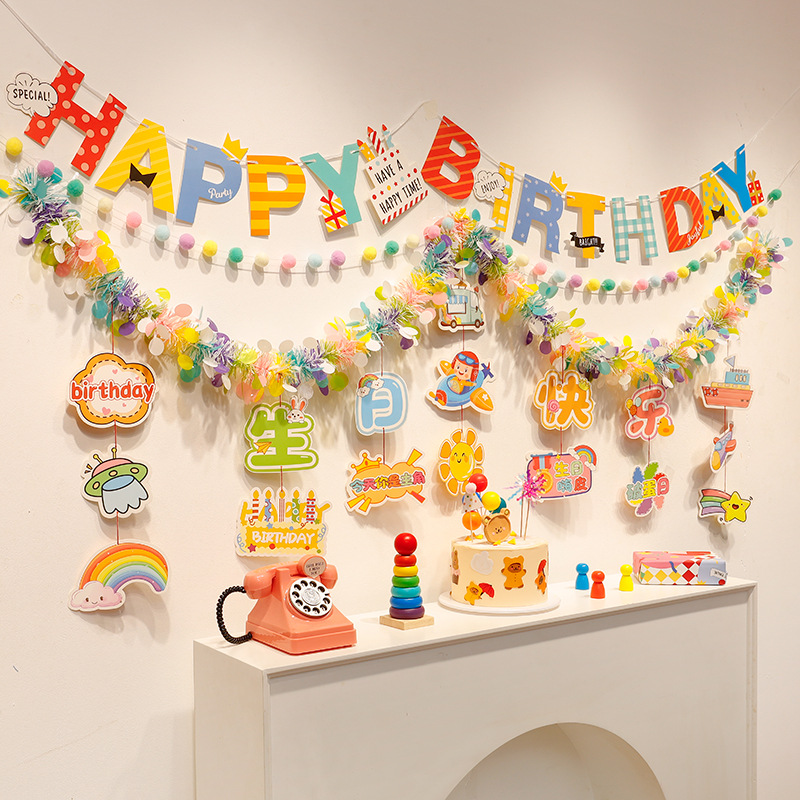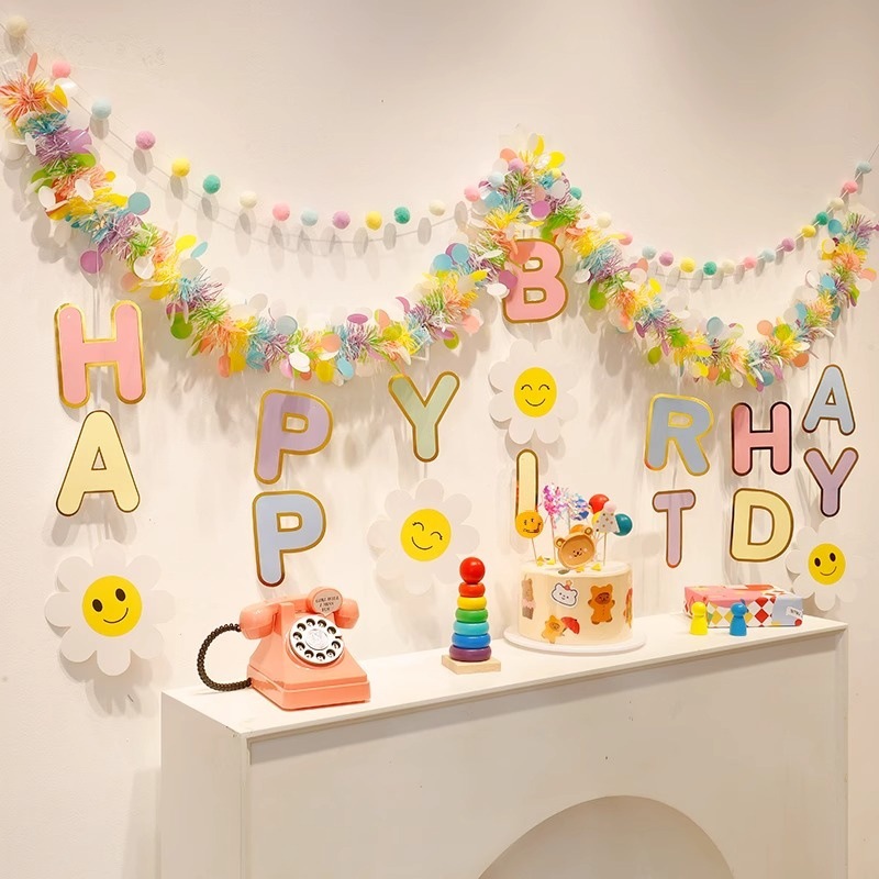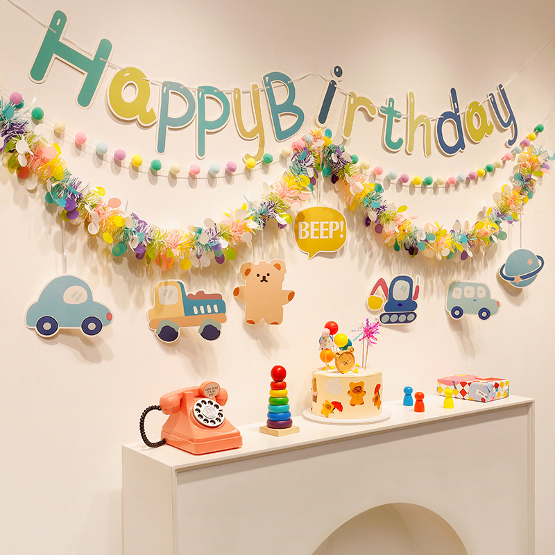 생일 장면 장식 마카롱 양모 풀 깃발 분위기 어린이 소년 소녀 아기 한 살짜리 사진 소품스토어 가기
