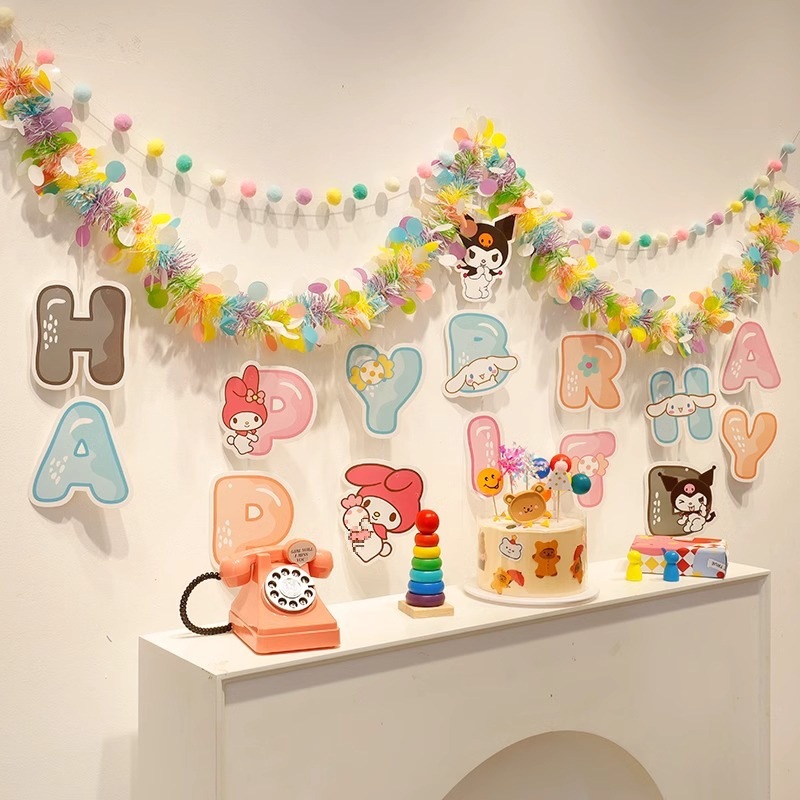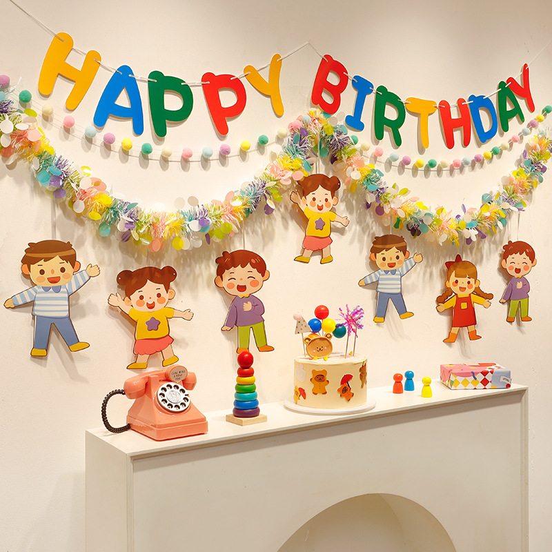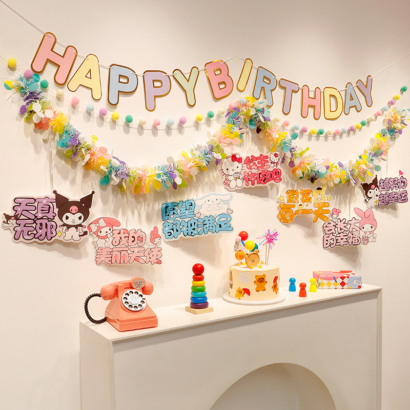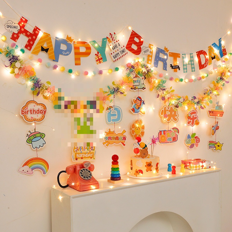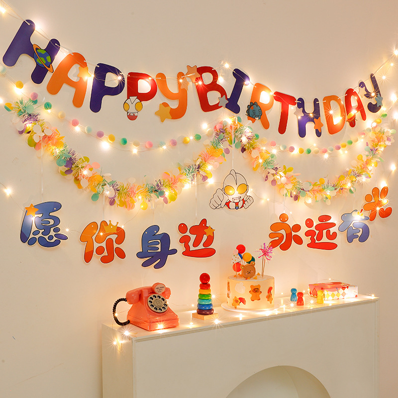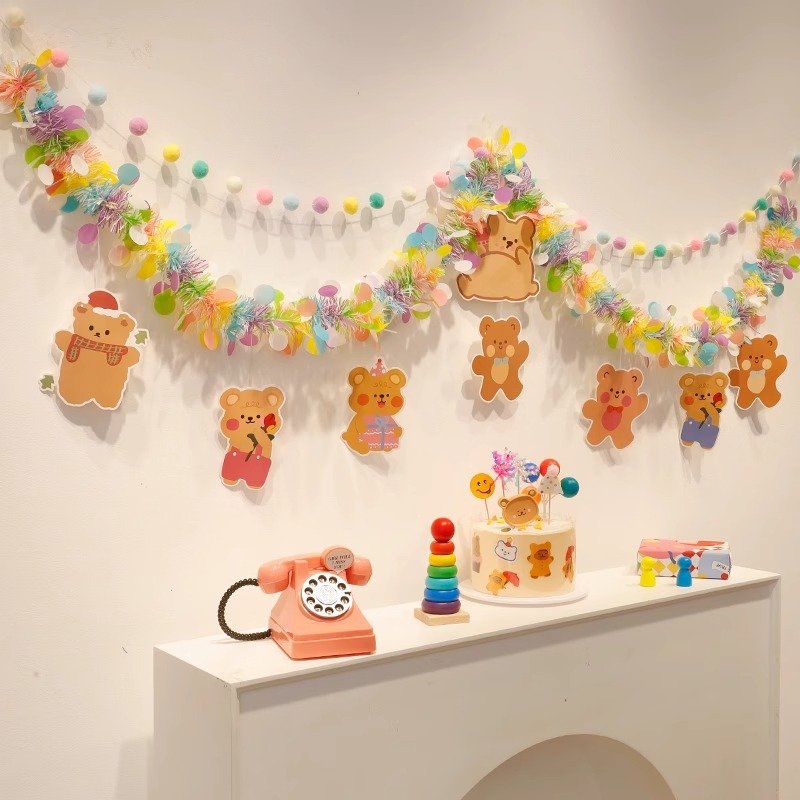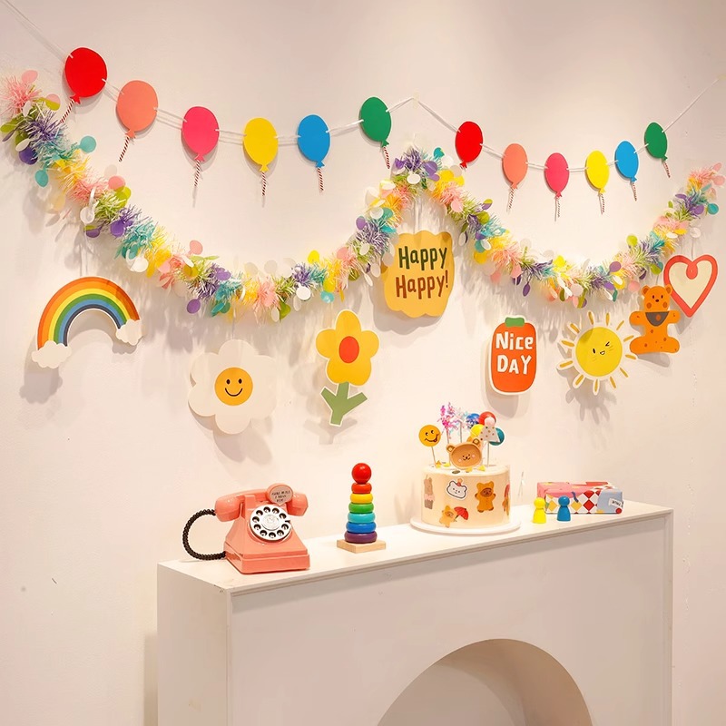생일 장면 장식 마카롱 양모 풀 깃발 분위기 어린이 소년 소녀 아기 한 살짜리 사진 소품스토어 가기