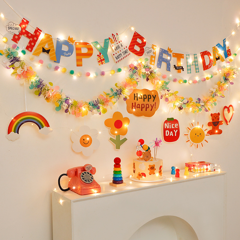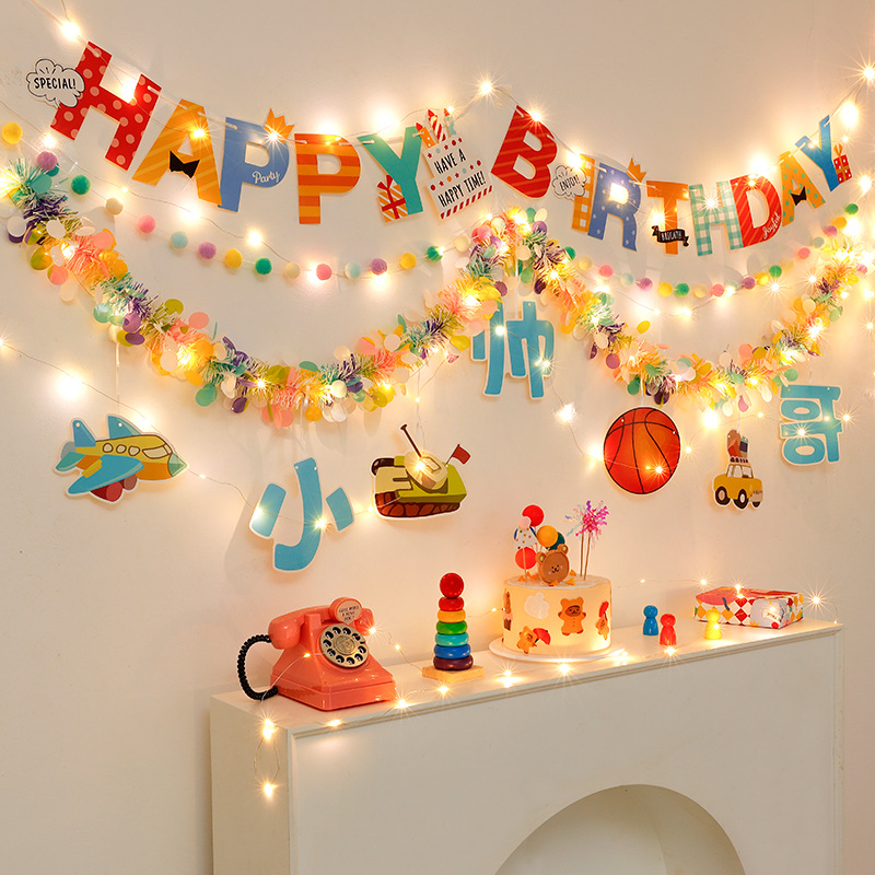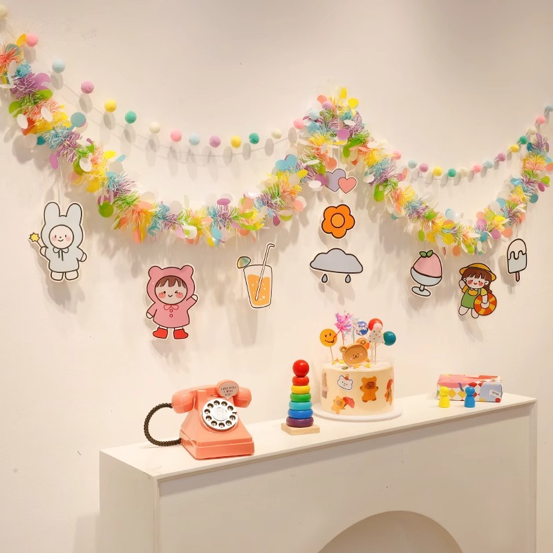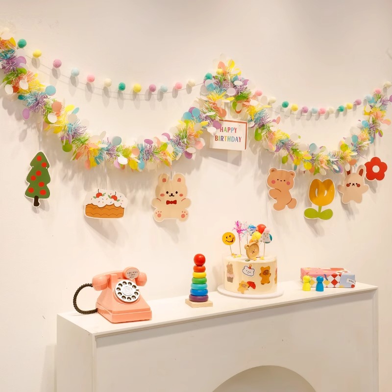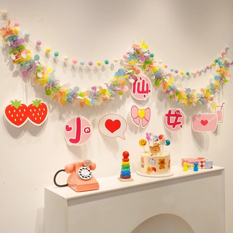 생일 장면 장식 마카롱 양모 풀 깃발 분위기 어린이 소년 소녀 아기 한 살짜리 사진 소품