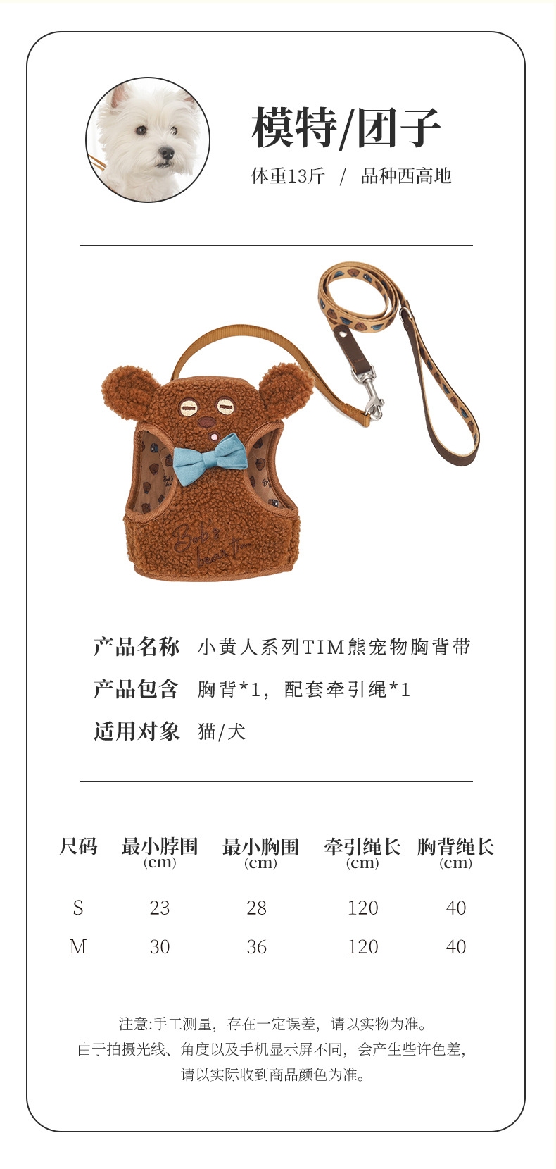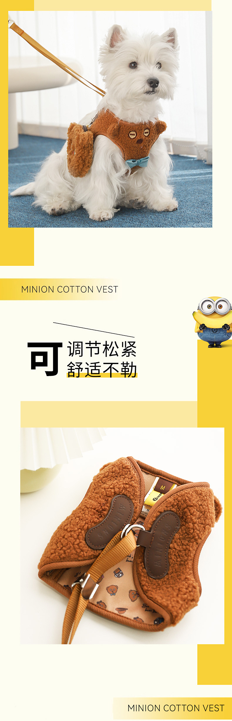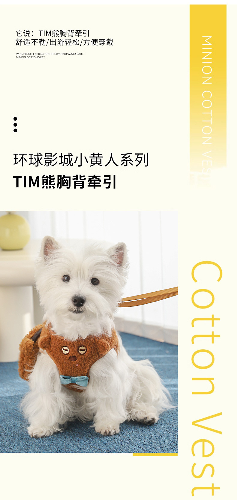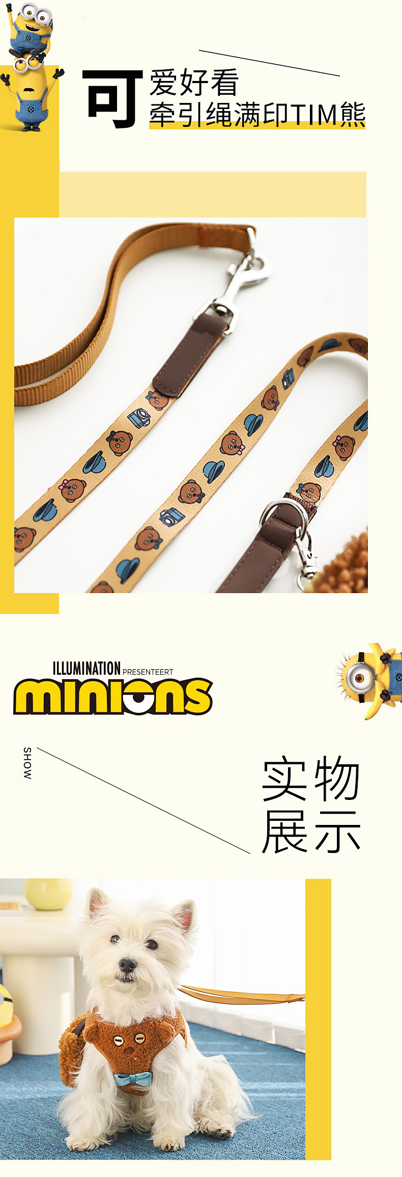 미니언즈 | 팀 베어 애완 동물 가슴 스트랩 작은 개 강아지 강아지 워킹 체인 개 가죽 끈 개스토어 가기