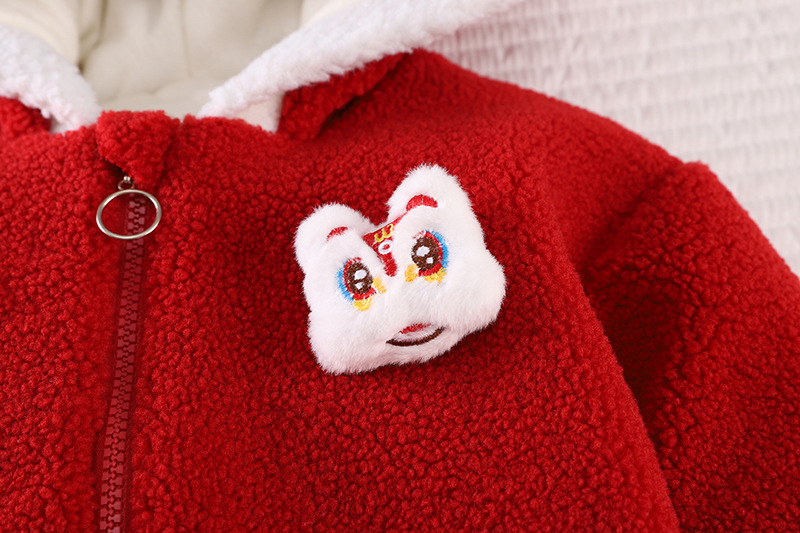 아기 코트 빨간 새해 옷 기모 두꺼운 아동복 소년 양털 탑 소녀의 겨울 옷
