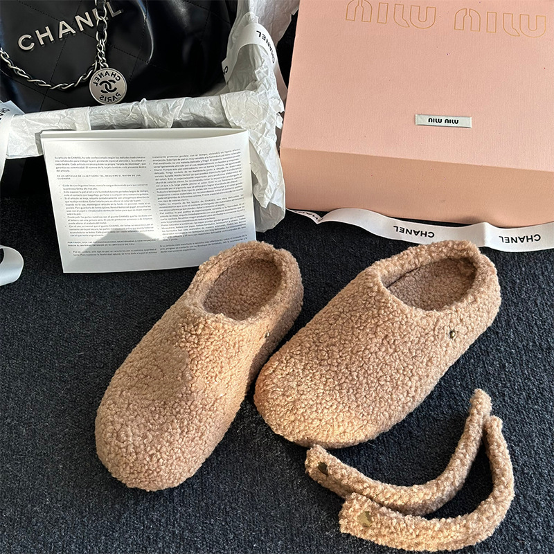 2024 년 겨울 새 한국 스타일 올매치 플랫 게으른 코튼 슬리퍼 여성용 두꺼운 하단 반 슬리퍼스토어 가기