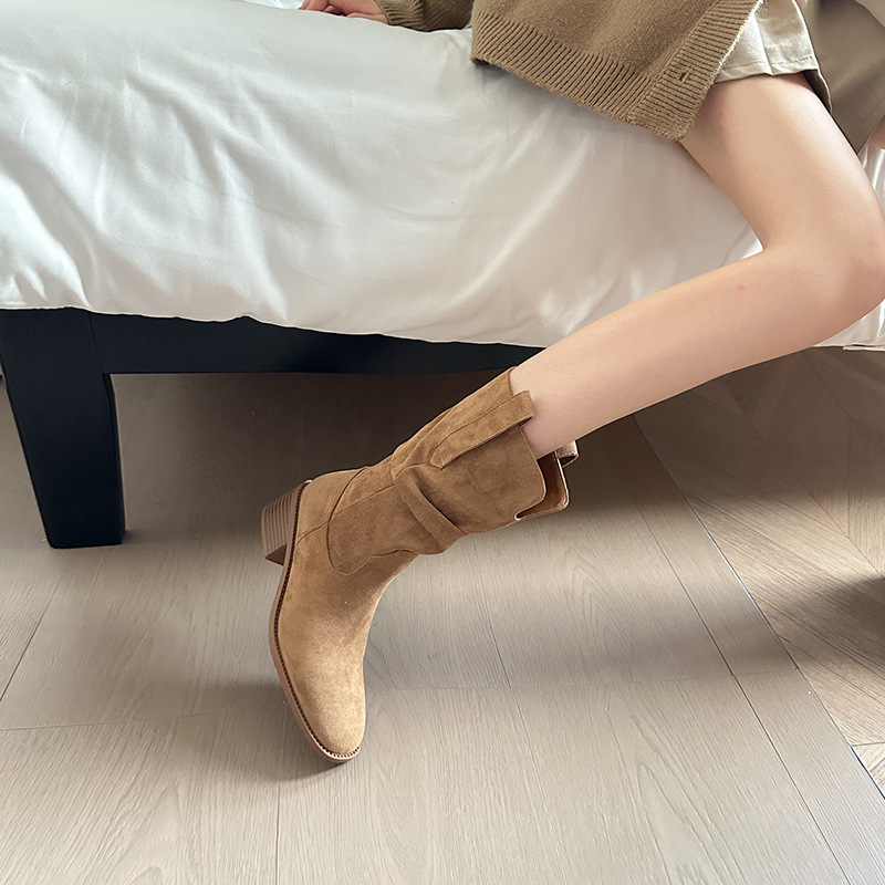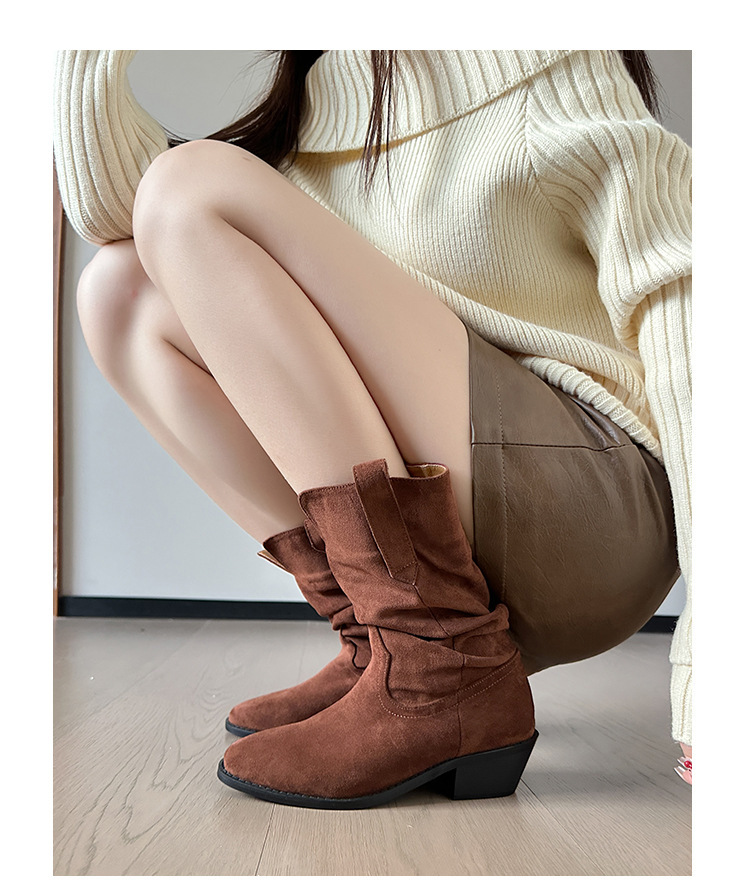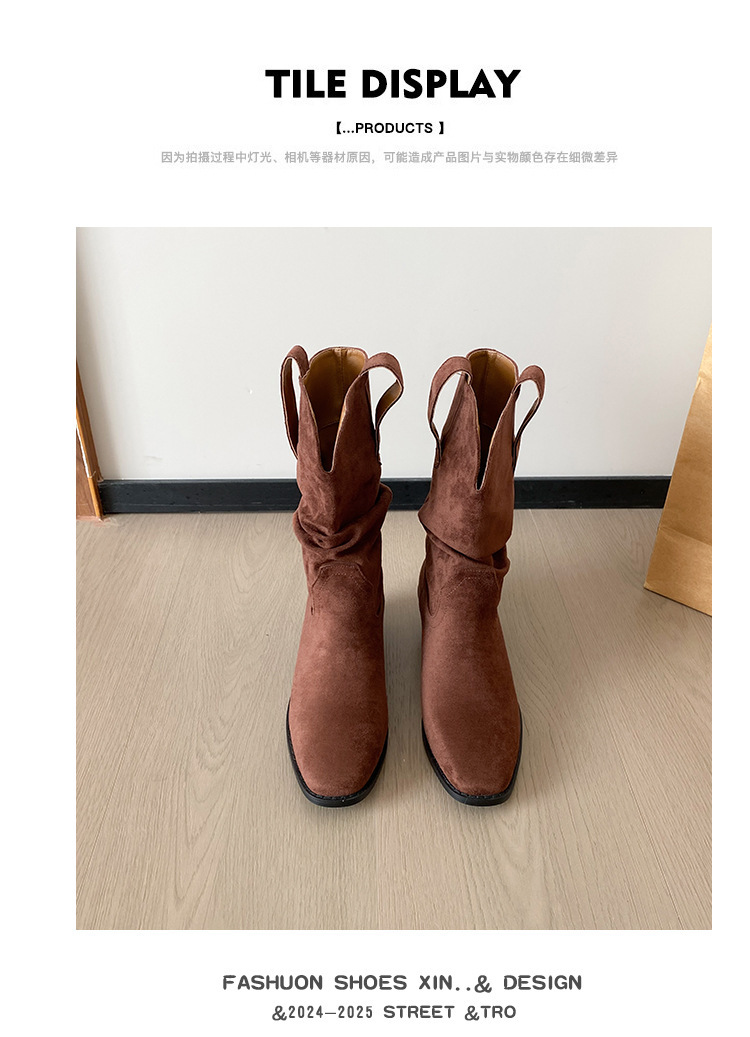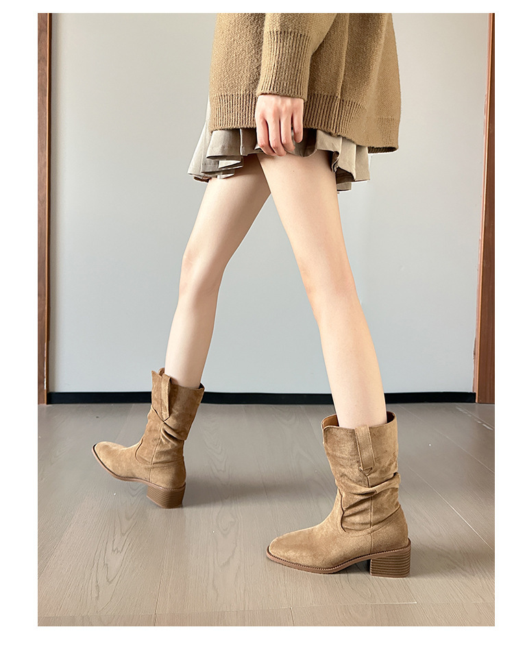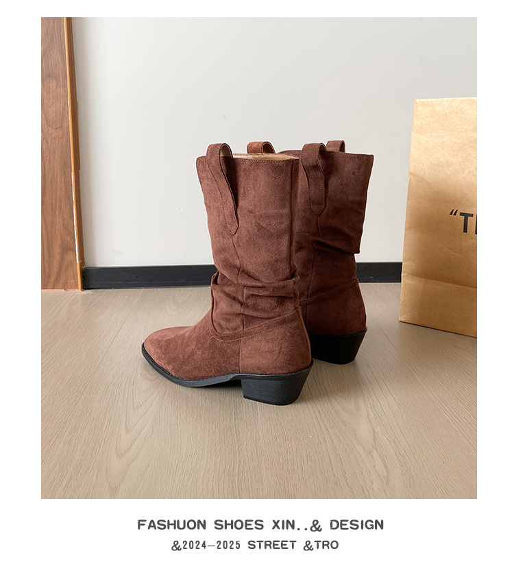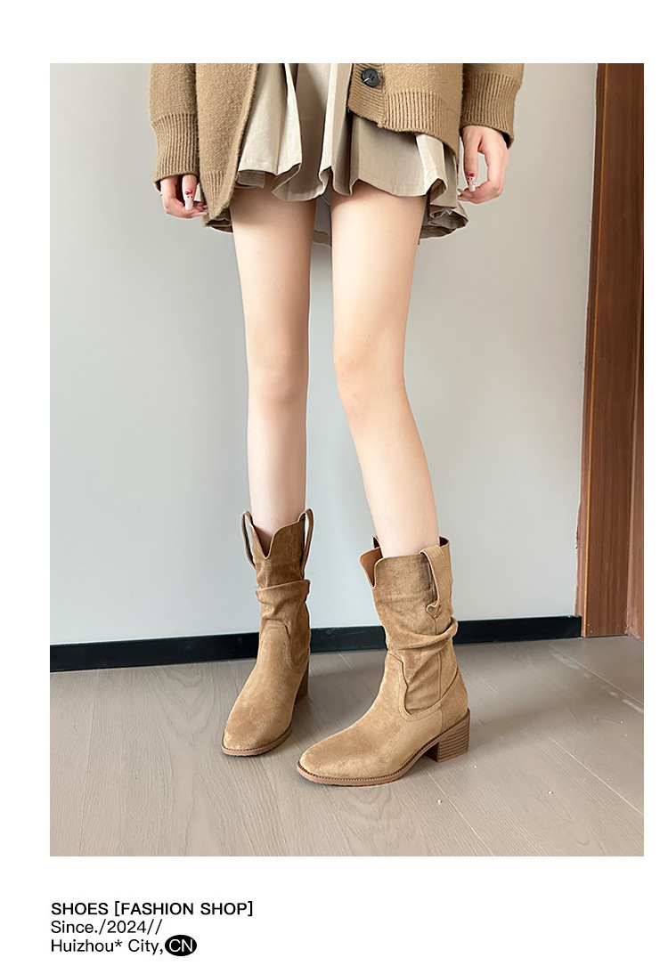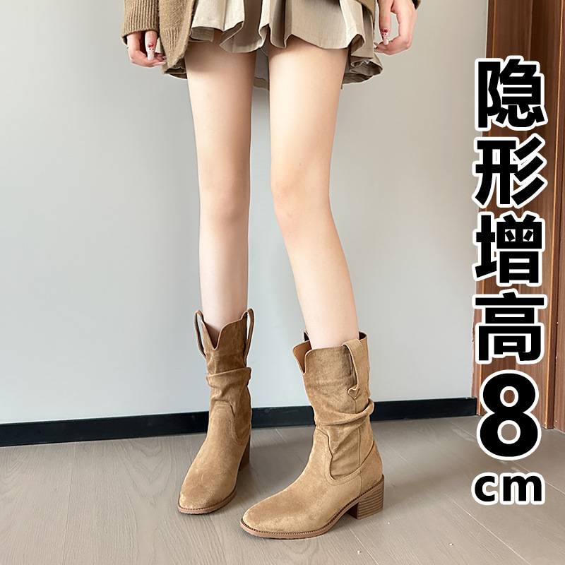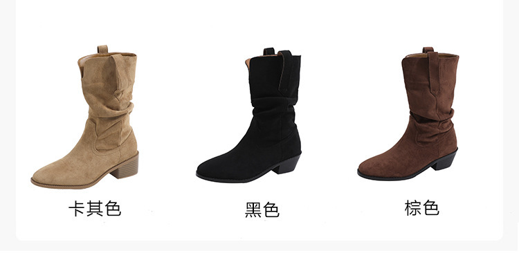 여성을위한 복고풍 패션 카우보이 부츠 2025 봄과 가을 새로운 스타일 뾰족한 발가락 두꺼운 굽 주름 짧은 마틴 부츠 나이트 부츠