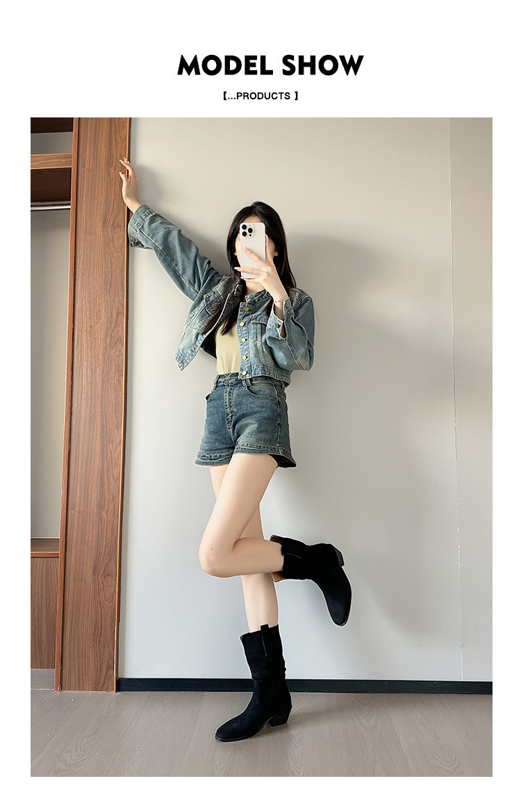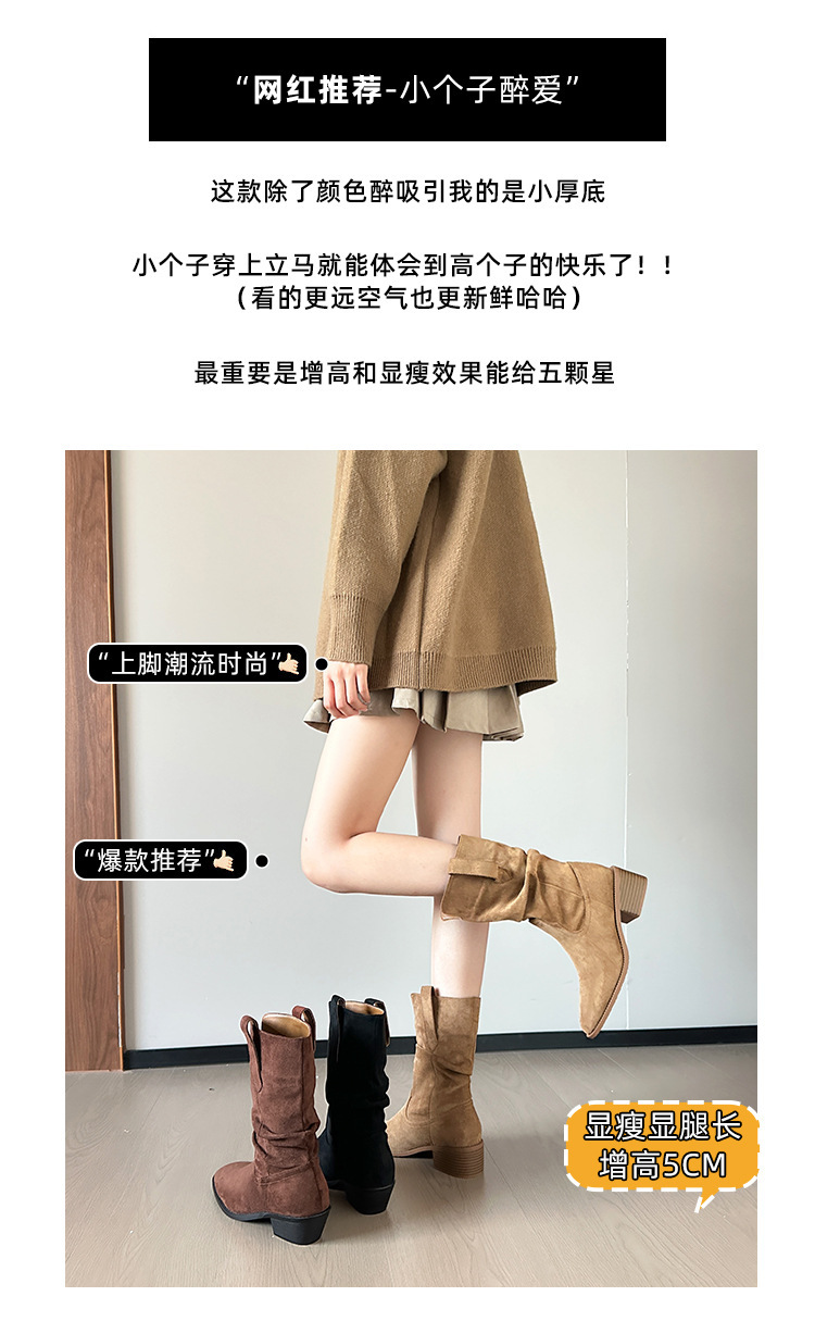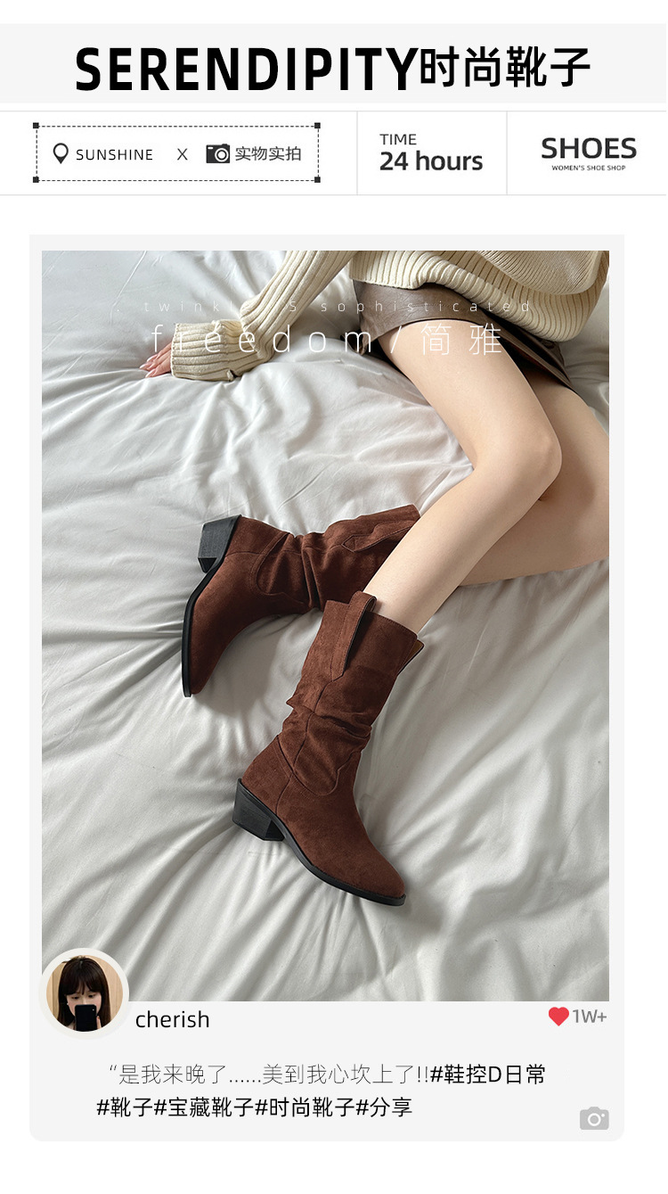 여성을위한 복고풍 패션 카우보이 부츠 2025 봄과 가을 새로운 스타일 뾰족한 발가락 두꺼운 굽 주름 짧은 마틴 부츠 나이트 부츠스토어 가기