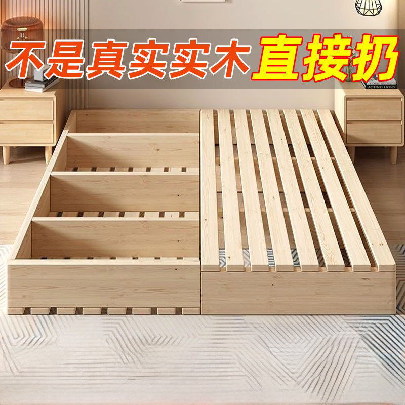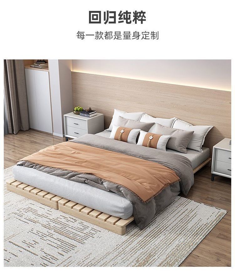 가정용 간단한 싱글 플로어 솔리드 우드 침대 일본식 렌탈 룸 낮은 침대 침대 프레임 줄 스켈레톤 다타미 바닥 침대스토어 가기