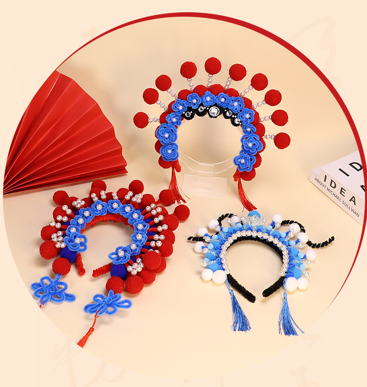 할로윈 북경 오페라 트위스트 바 헤어 후프 국가 유산 전통 중국 오페라 수제 DIY 소재 가방 수제 어린이