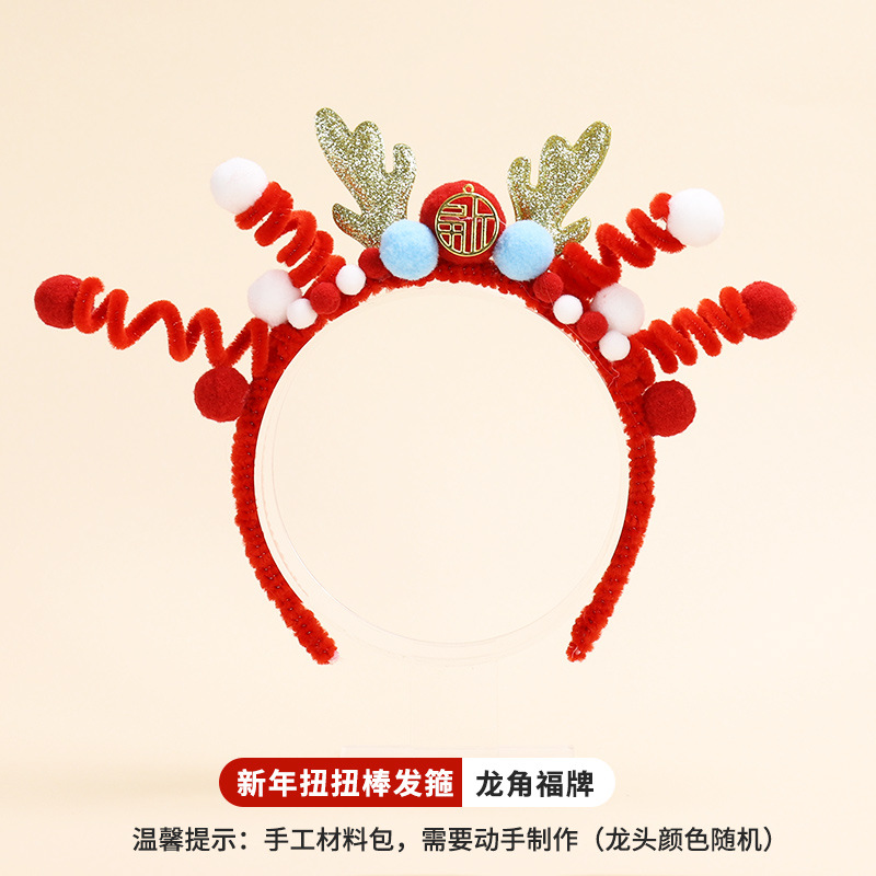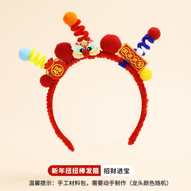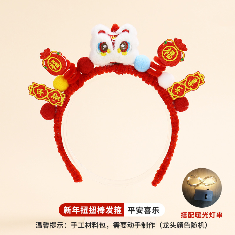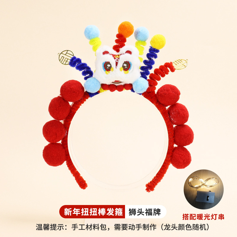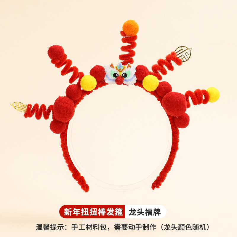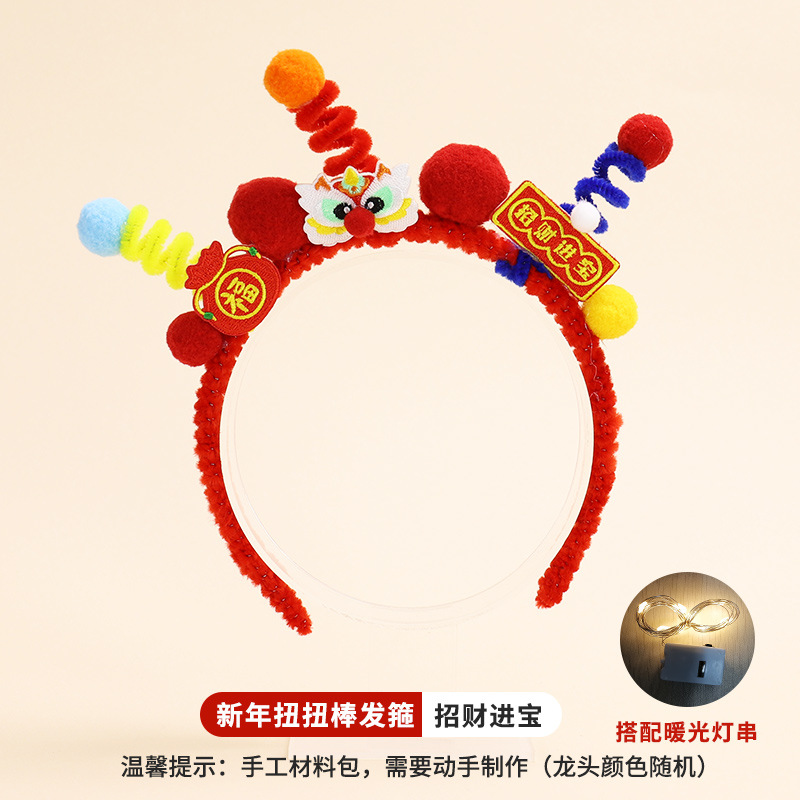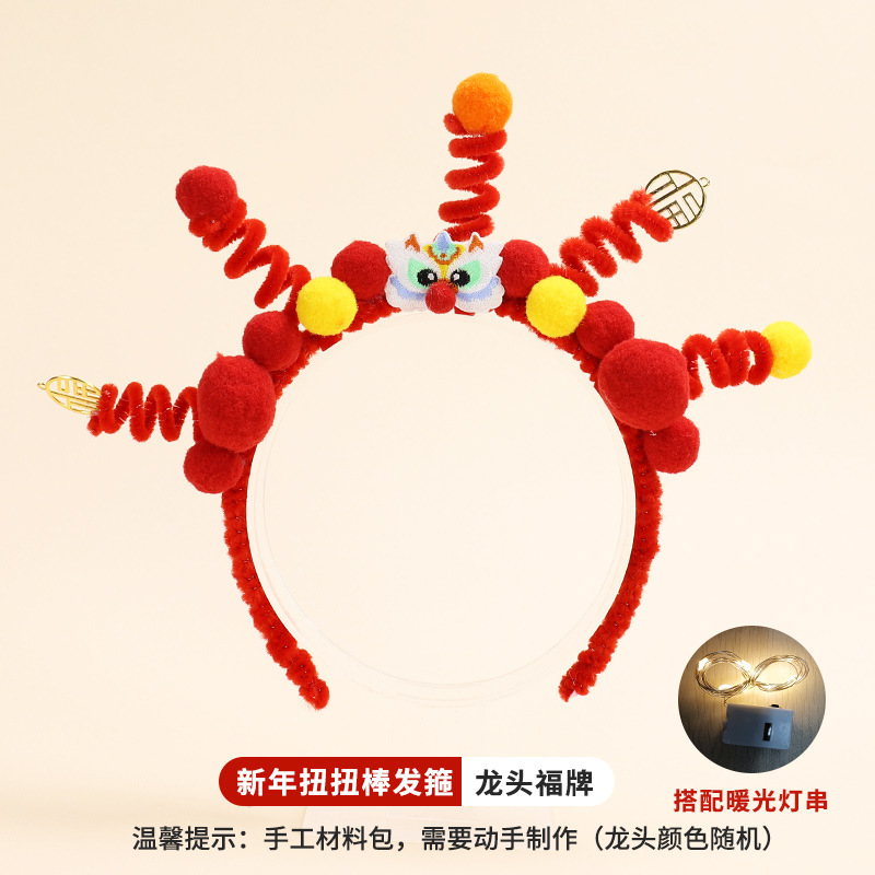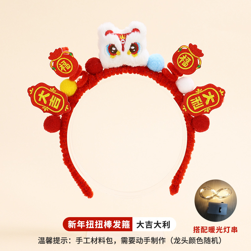 • 업그레이드 버전/용년 트위스트 스틱 머리띠 [사자 머리 축복 카드] + 무료 가벼운 끈