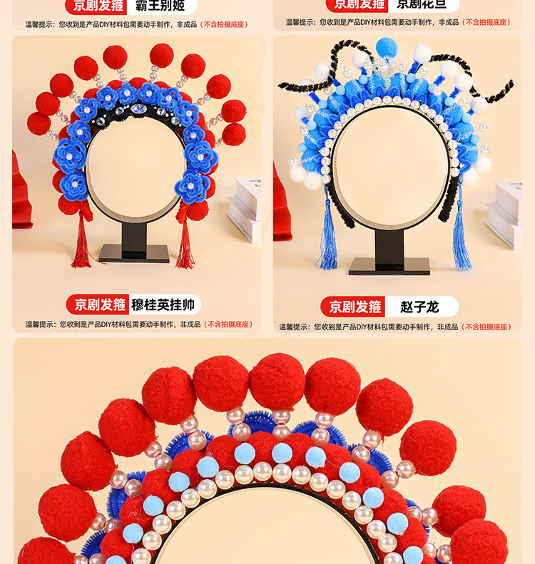 할로윈 북경 오페라 트위스트 바 헤어 후프 국가 유산 전통 중국 오페라 수제 DIY 소재 가방 수제 어린이스토어 가기
