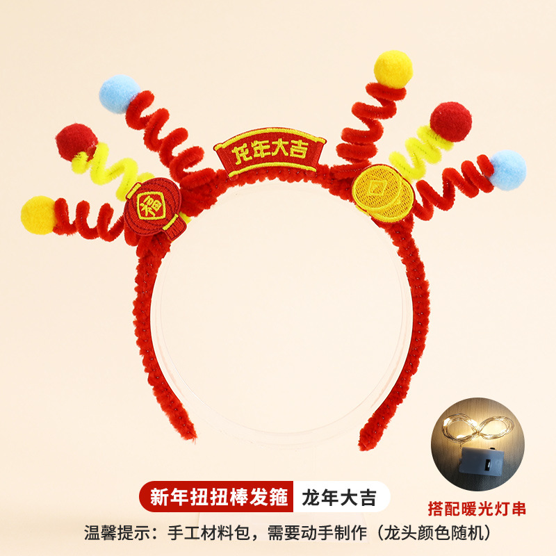 • 심플버전/용년 트위스트 스틱 머리띠 [용년 행운] + 무료 스트링 조명