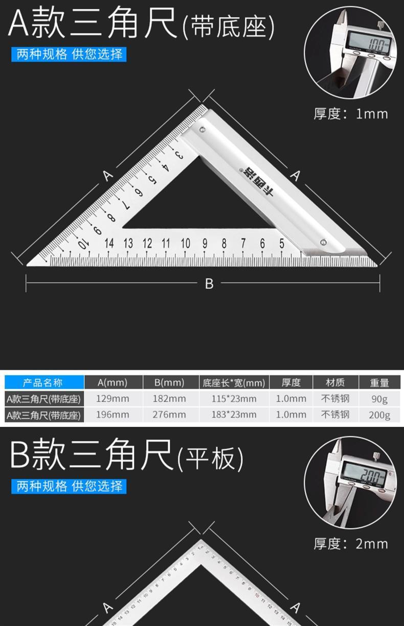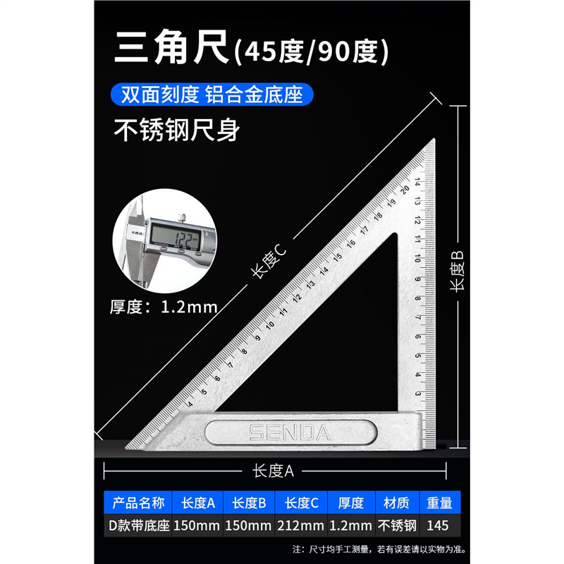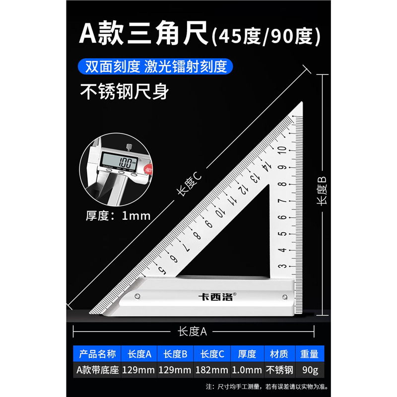 스테인레스 스틸 삼각형 통치자 높은 정밀도 두꺼운 90 도 목공 각도 통치자 45 대형 사각 통치자 선회 통치자 알루미늄 합금 삼각형 판스토어 가기