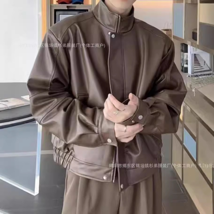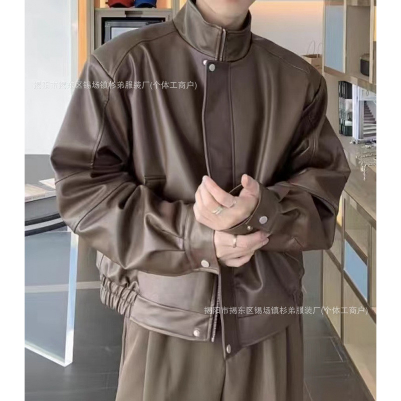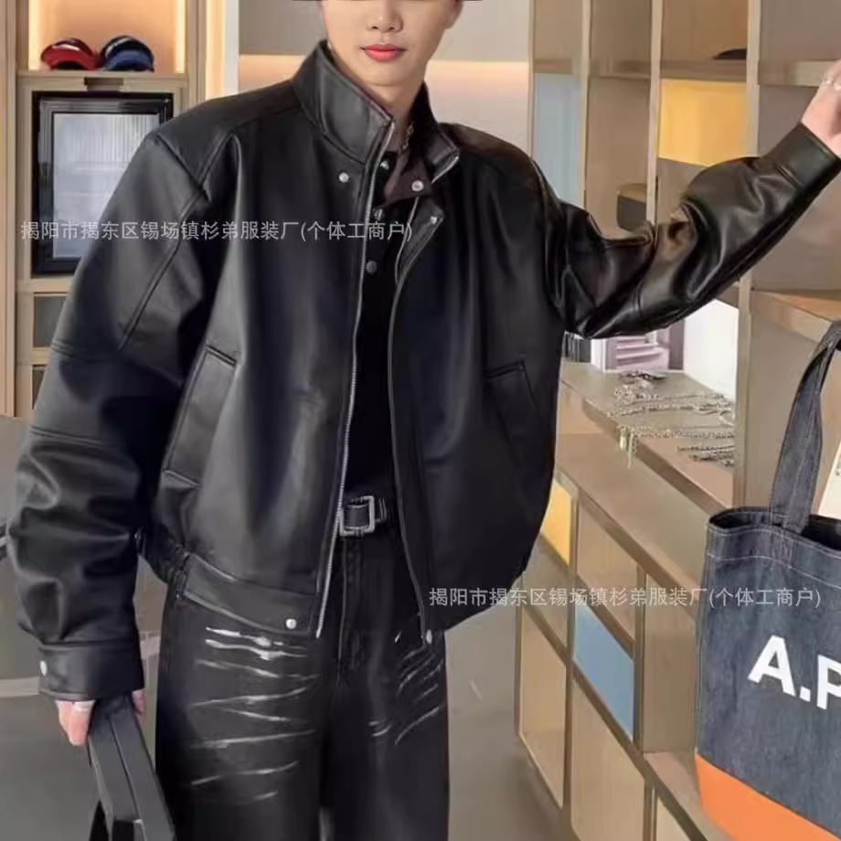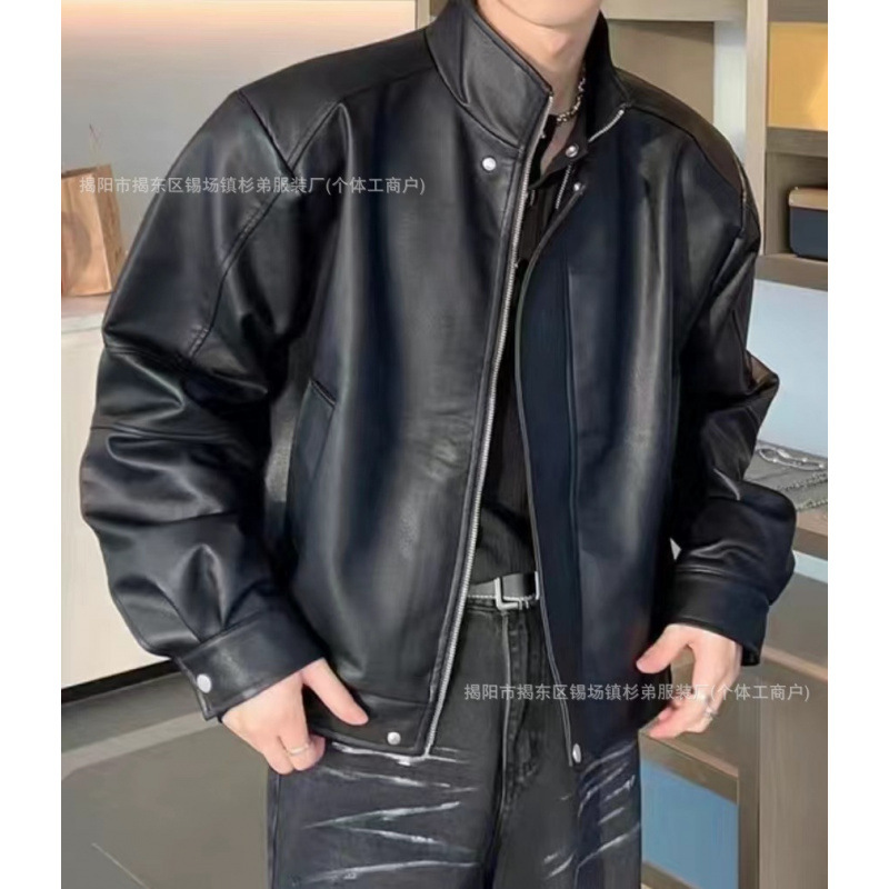 홍콩 스타일 레트로 블랙 PU 가죽 어깨 패드 짧은 가죽 자켓 남자 가을과 겨울 미국 루스 바이커 패션 재킷스토어 가기