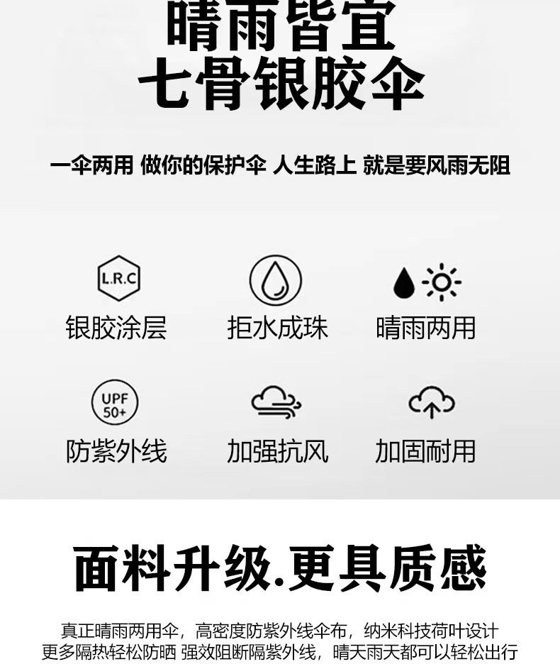 7骨银胶雨伞遮阳伞防晒伞晴雨两用广告礼品伞印LOGO雨伞工厂