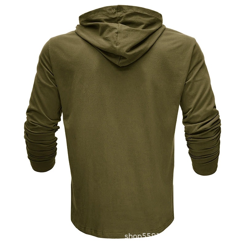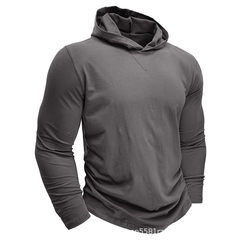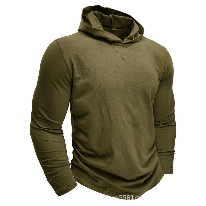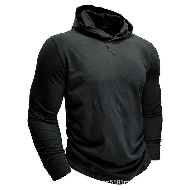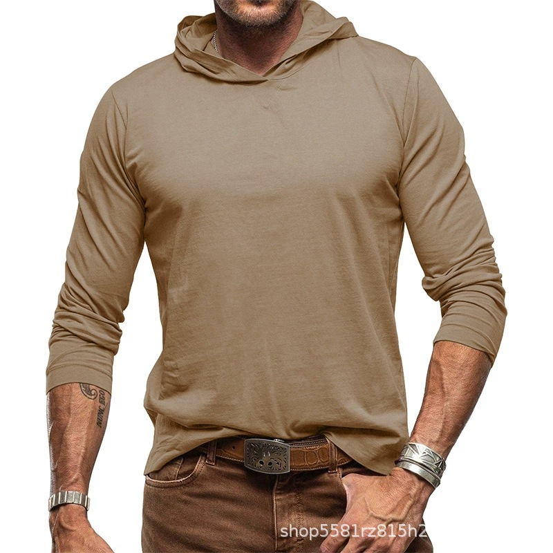 2024 유럽과 미국의 남성복 가을과 겨울 대외 무역 솔리드 컬러 남성용 긴 소매 티셔츠 순수한면 후드 베이스 셔츠 야외 탑