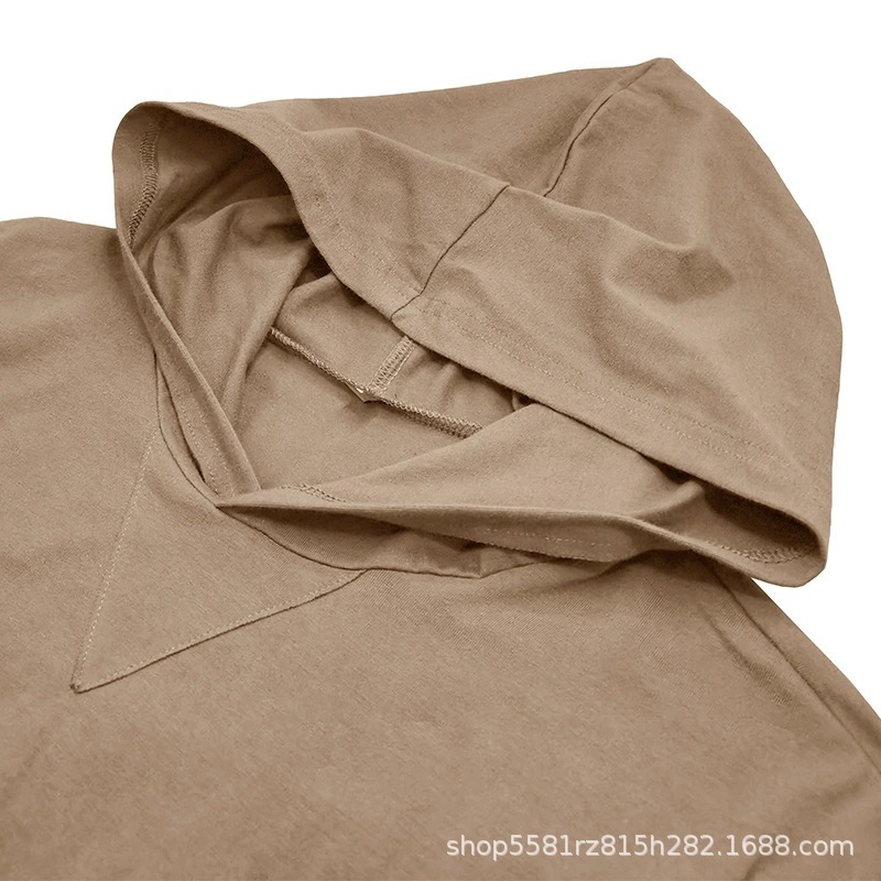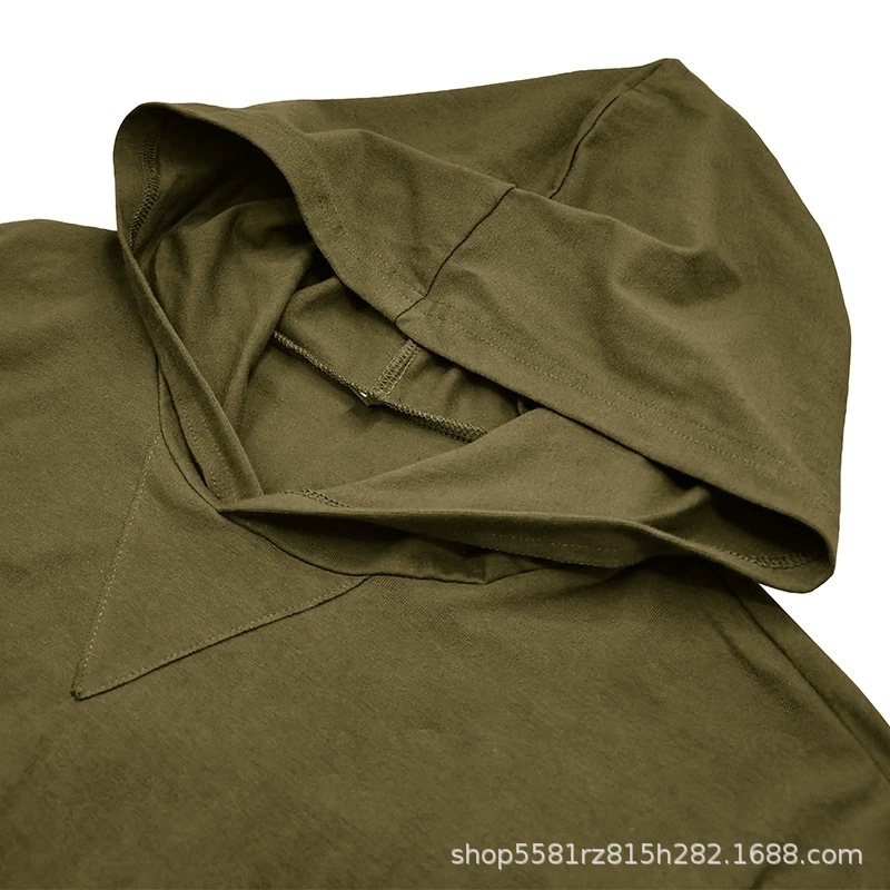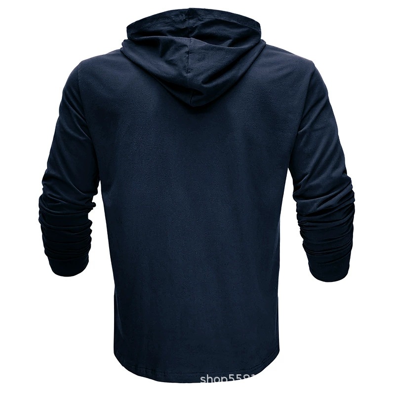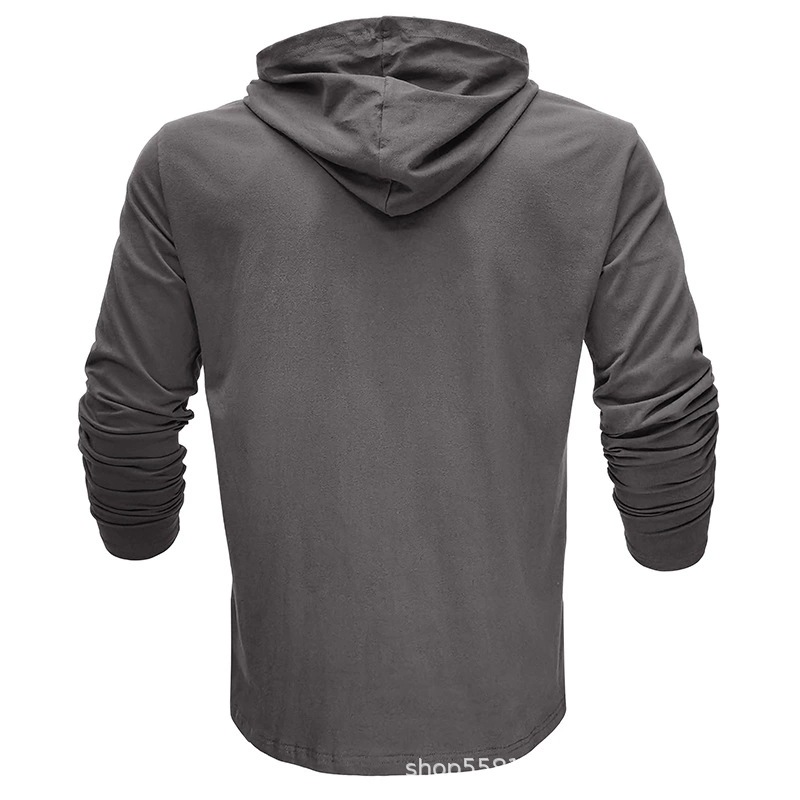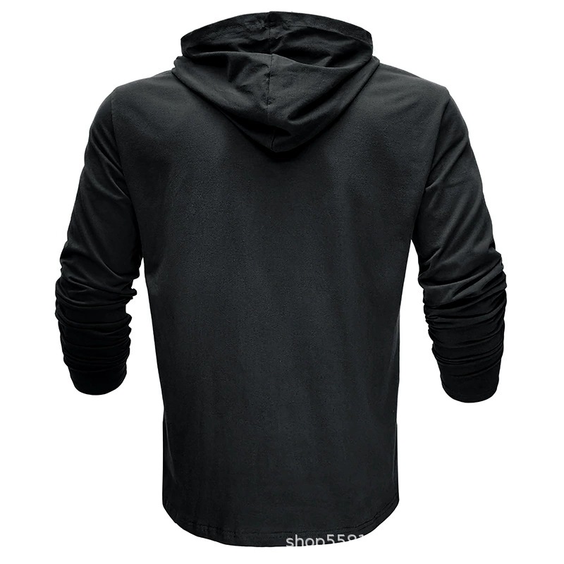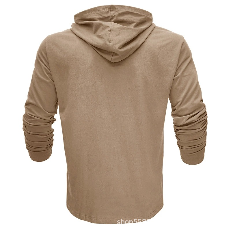 2024 유럽과 미국의 남성복 가을과 겨울 대외 무역 솔리드 컬러 남성용 긴 소매 티셔츠 순수한면 후드 베이스 셔츠 야외 탑