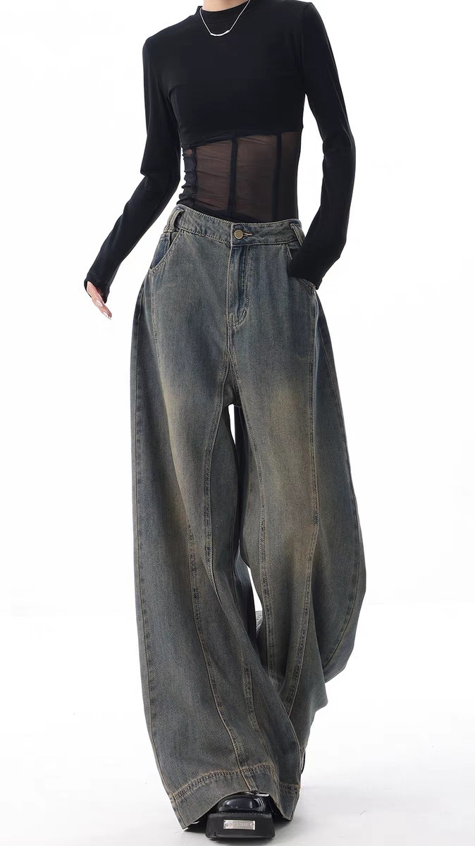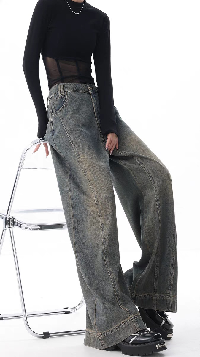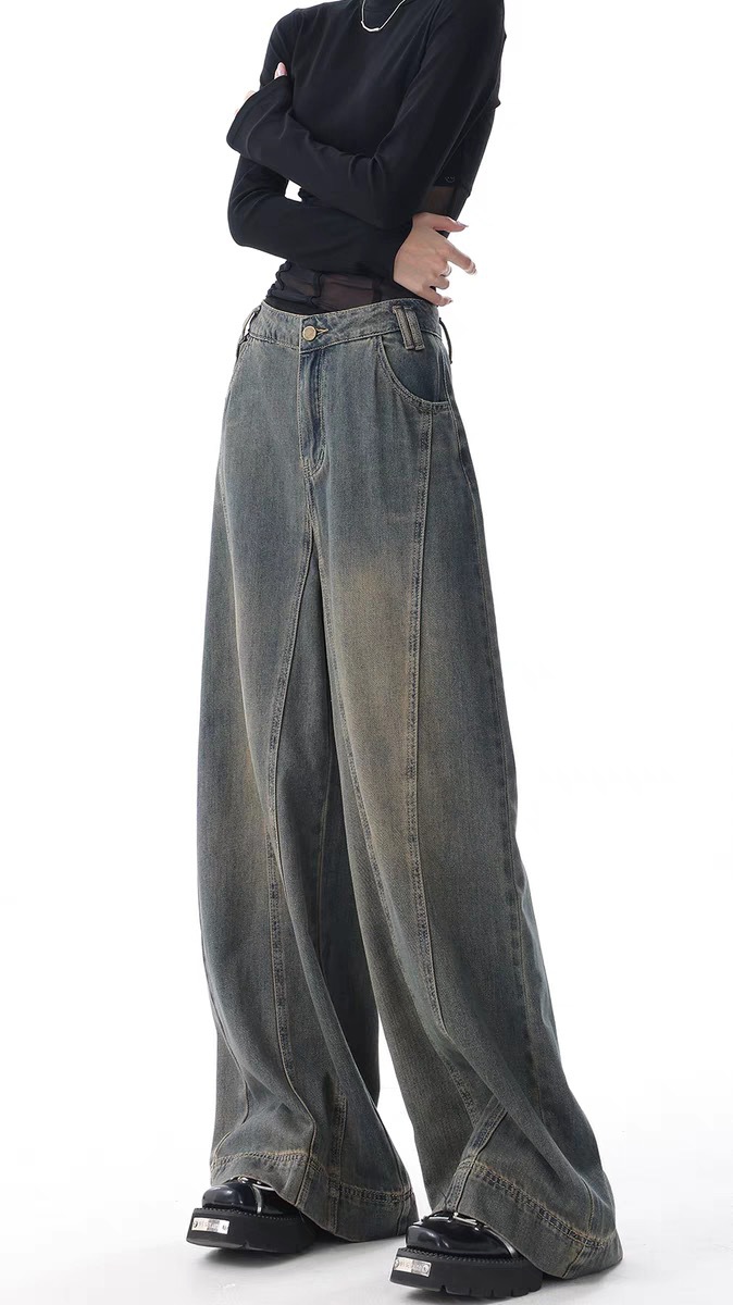아메리칸 스타일 폭발성 와이드 레그 청바지 여성용 루즈 하이 웨이스트 디핑 올 매치 모핑 팬츠 스트레이트 레그 팬츠 포시즌 착용 바지스토어 가기