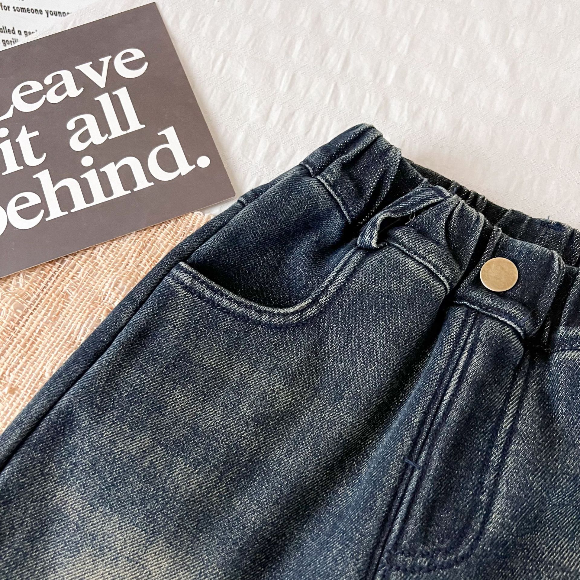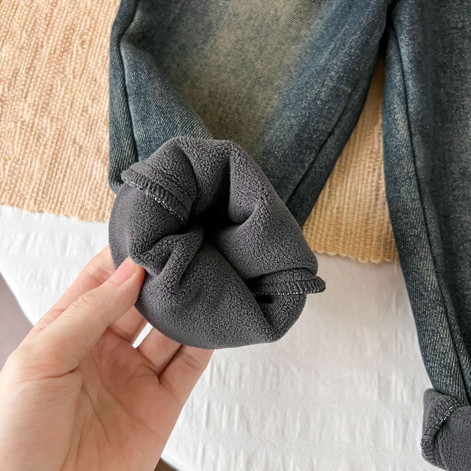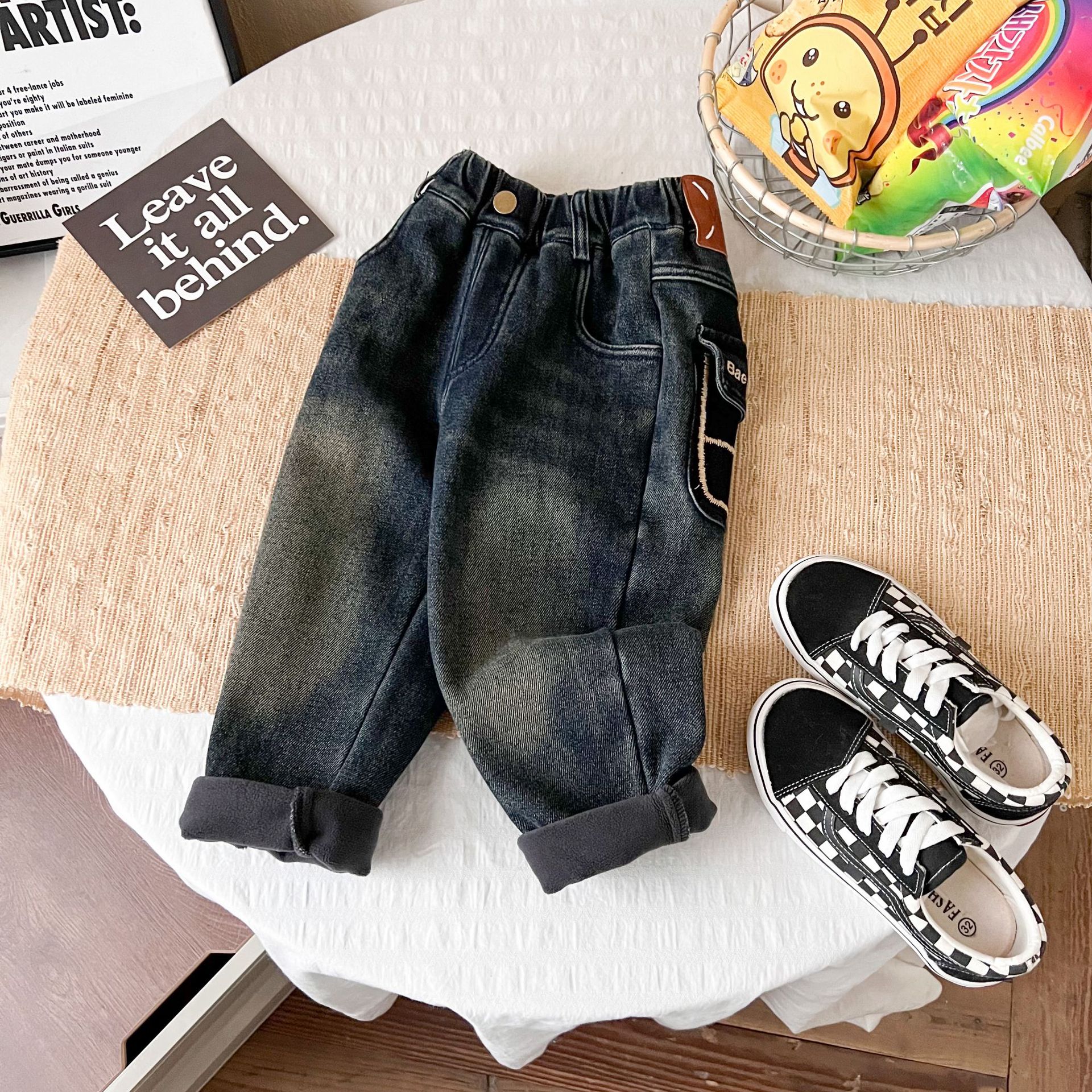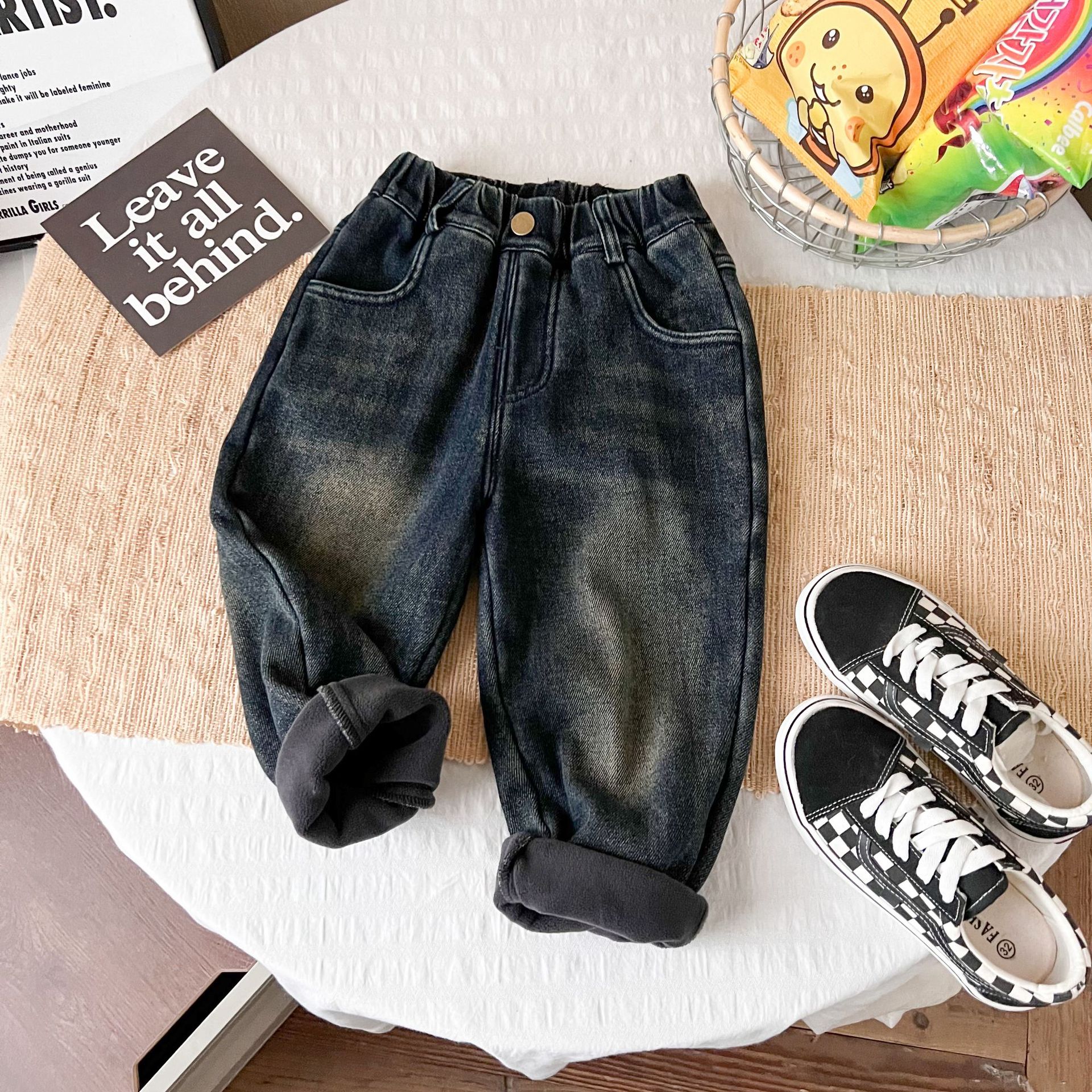 아동용 플리스 데님 팬츠 2025 겨울 신상 남아용 긴바지 하렘 팬츠 트렌디 아동 바지 오리온 플리스 두꺼운스토어 가기
