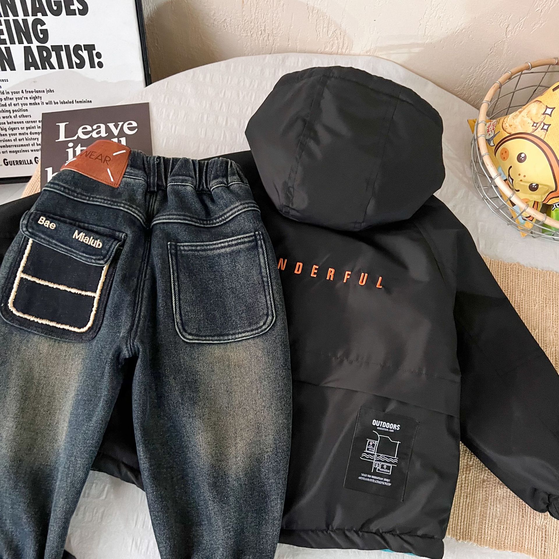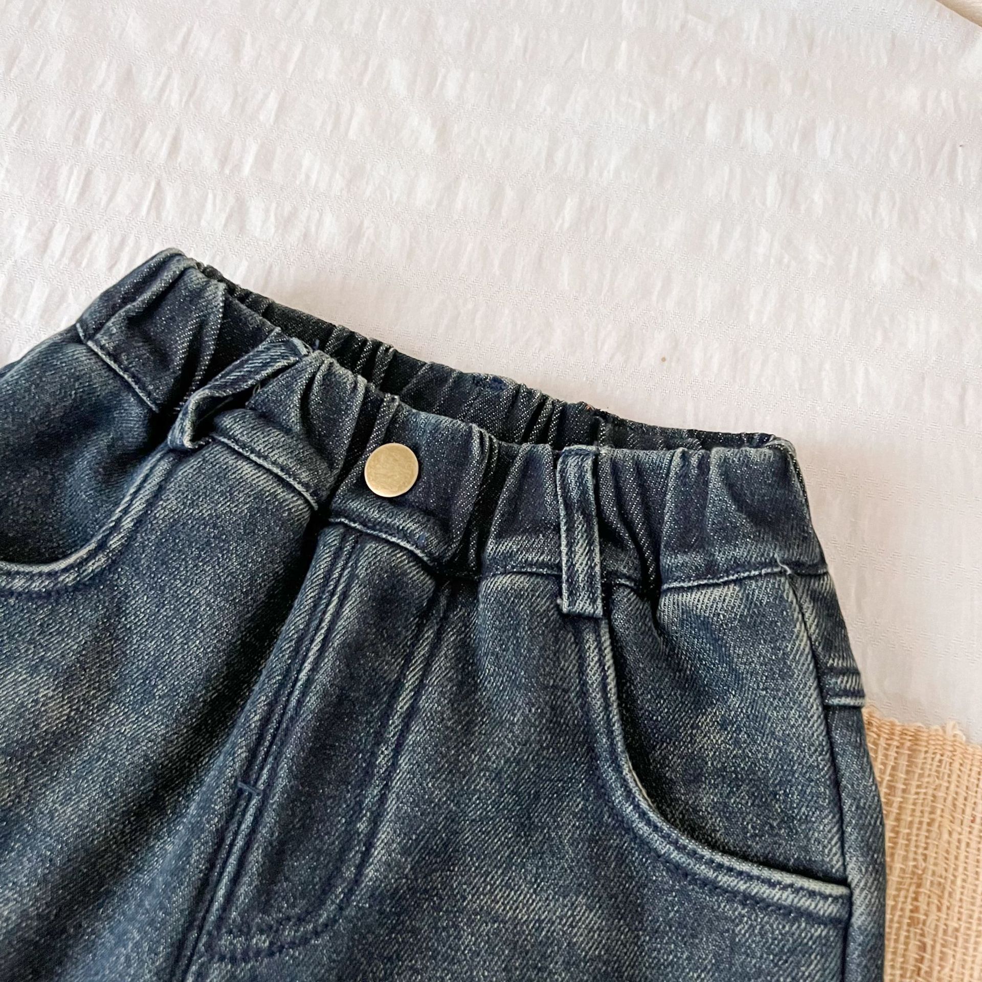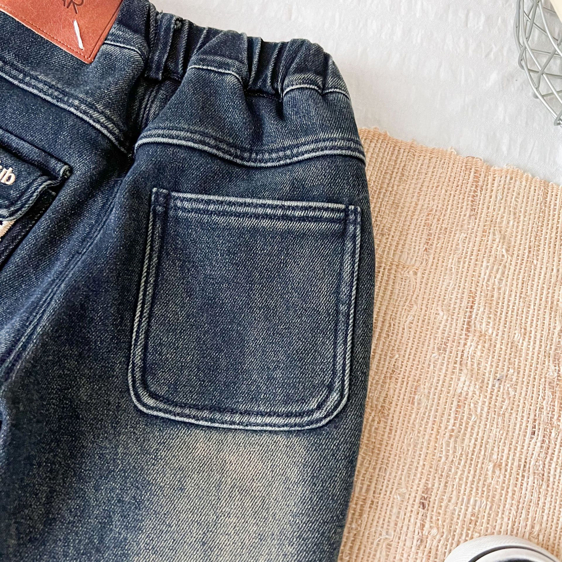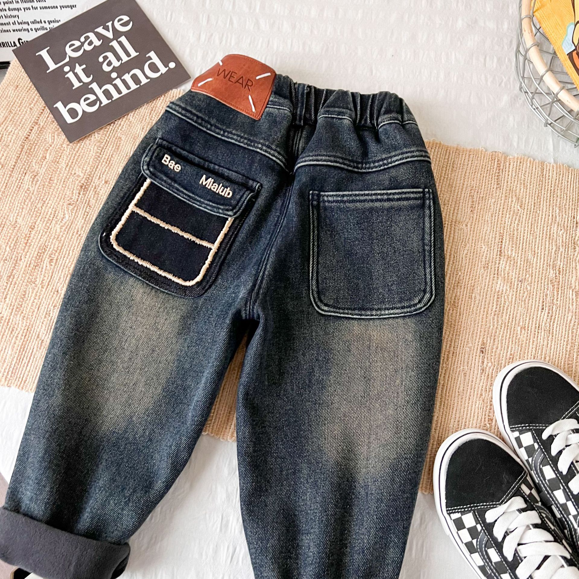 아동용 플리스 데님 팬츠 2025 겨울 신상 남아용 긴바지 하렘 팬츠 트렌디 아동 바지 오리온 플리스 두꺼운스토어 가기