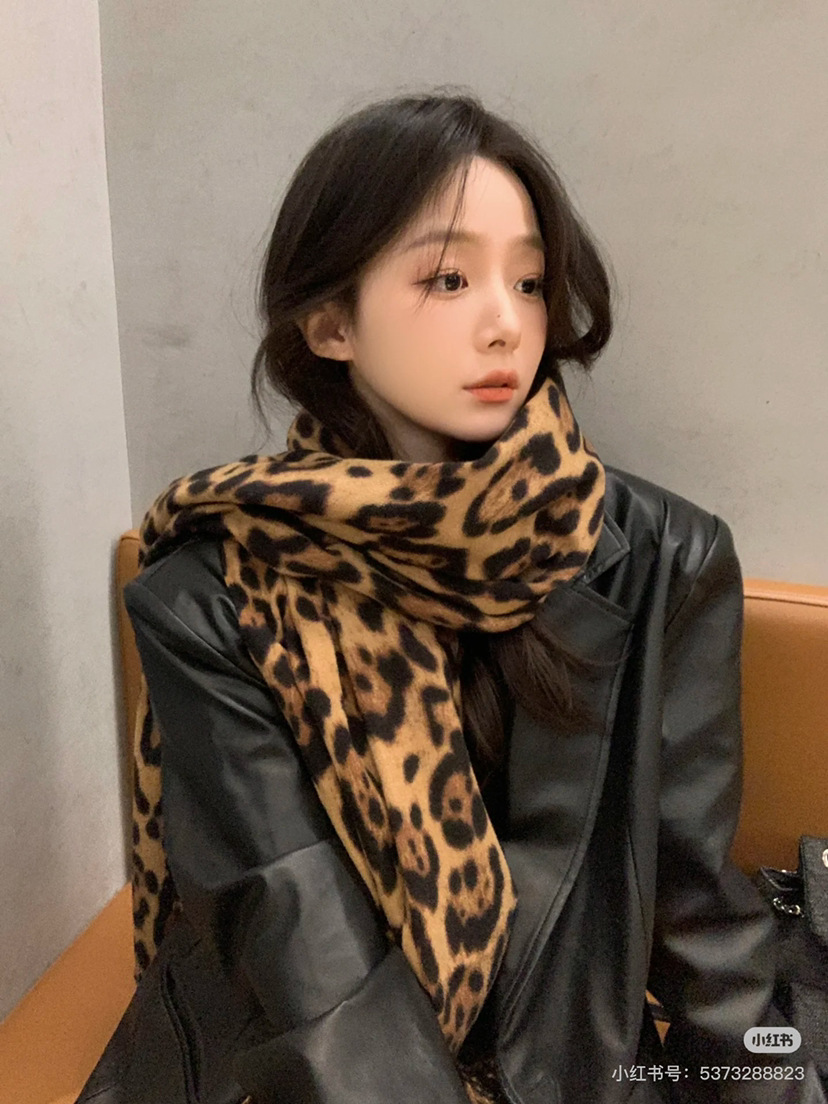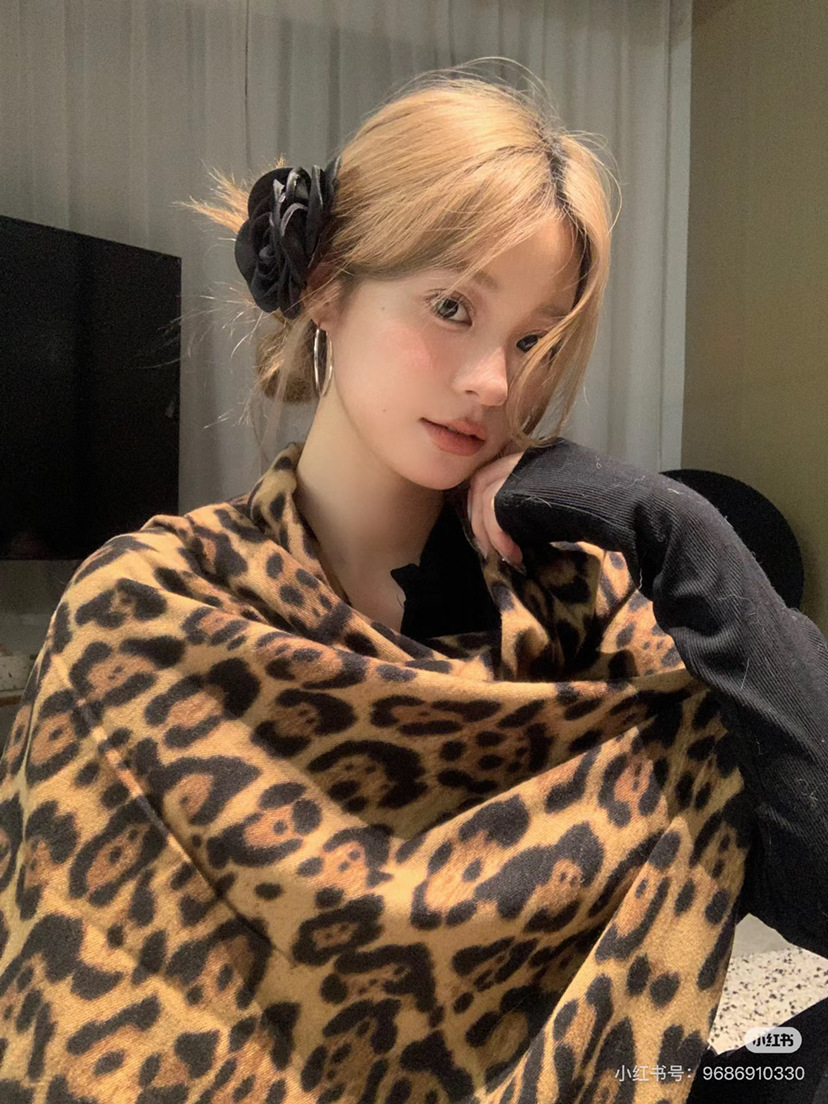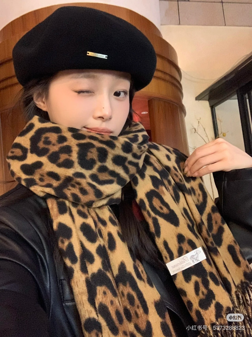틈새 디자인 달콤한 멋진 레트로 레오파드 술 스카프 여성의 2024 새로운 밀레니엄 스파이스 소녀 스타일 가을과 겨울 두꺼운 목도리스토어 가기