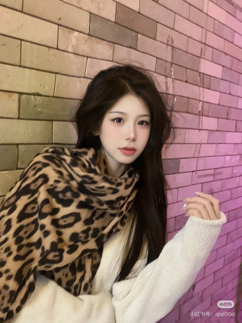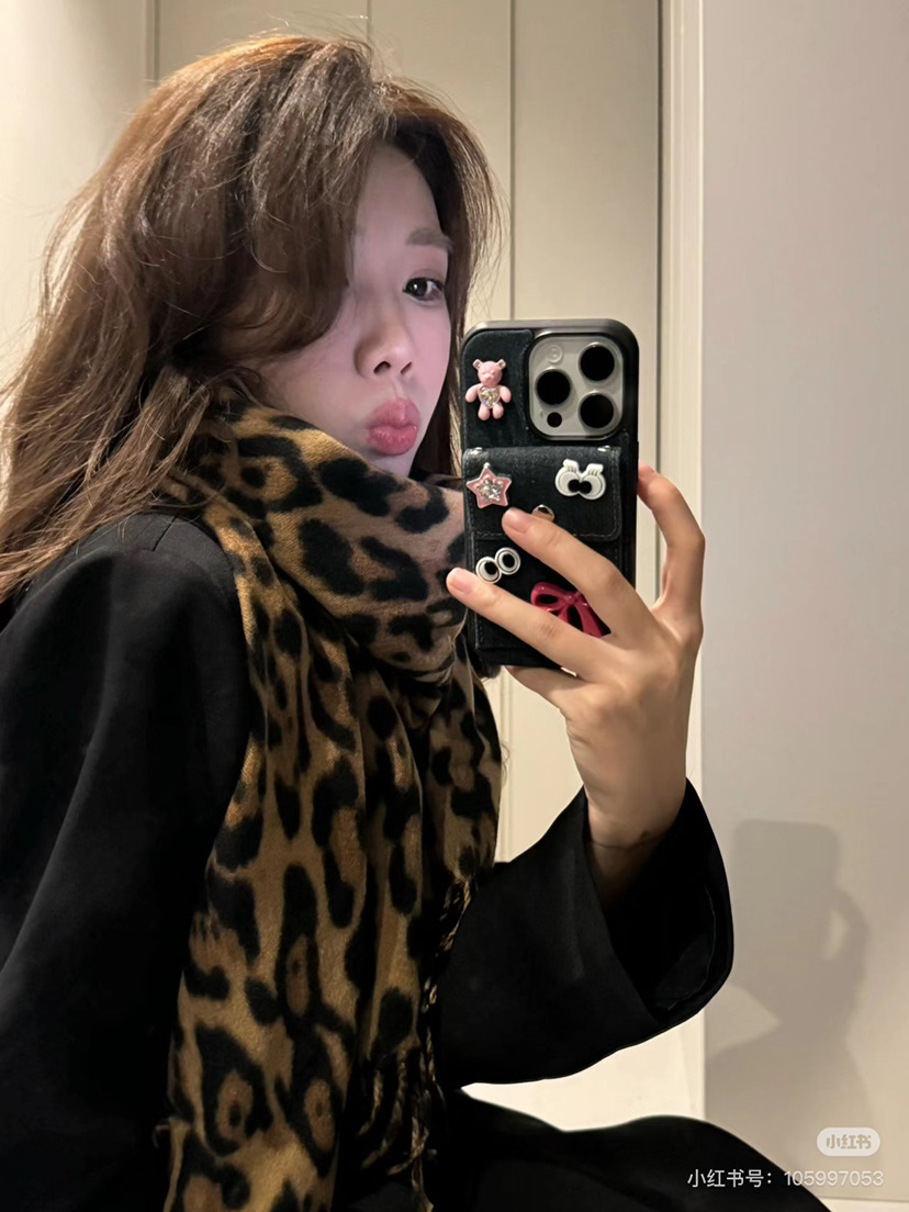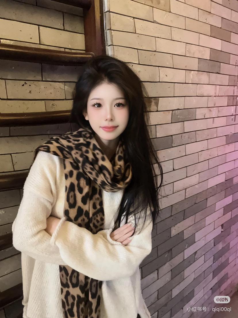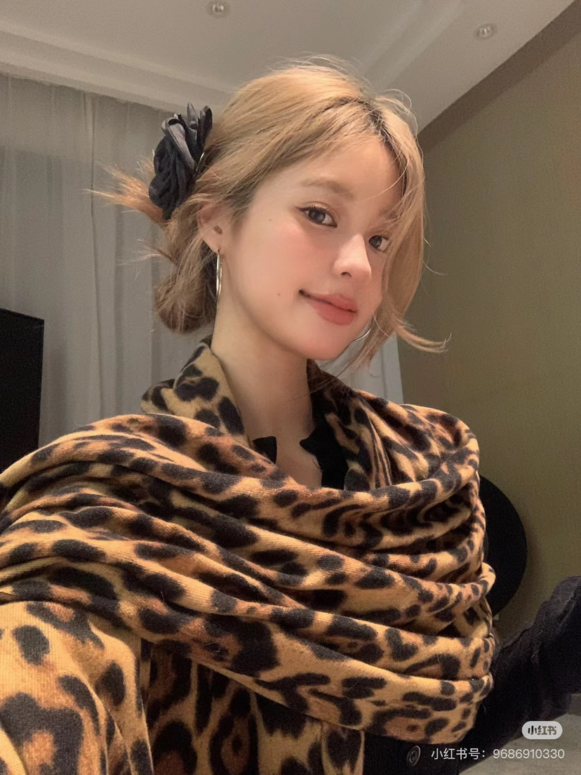 틈새 디자인 달콤한 멋진 레트로 레오파드 술 스카프 여성의 2024 새로운 밀레니엄 스파이스 소녀 스타일 가을과 겨울 두꺼운 목도리스토어 가기