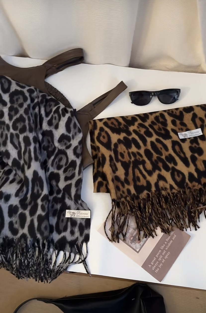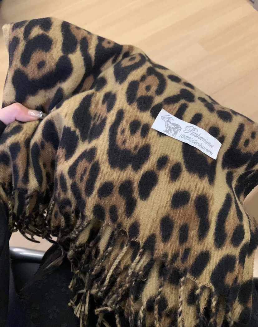 틈새 디자인 달콤한 멋진 레트로 레오파드 술 스카프 여성의 2024 새로운 밀레니엄 스파이스 소녀 스타일 가을과 겨울 두꺼운 목도리