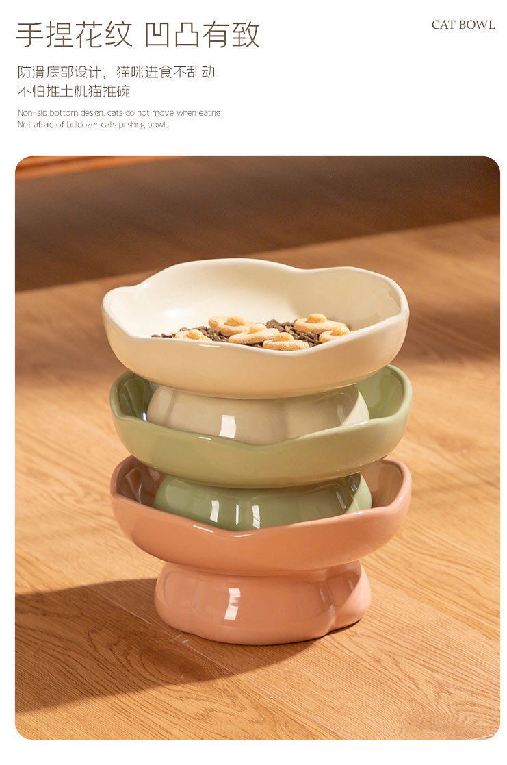대형 구경 고양이 그릇 개 음식 그릇 세라믹 애완 동물 특별 마시는 그릇 고양이 음식 그릇 안티 노크 목 높은 발