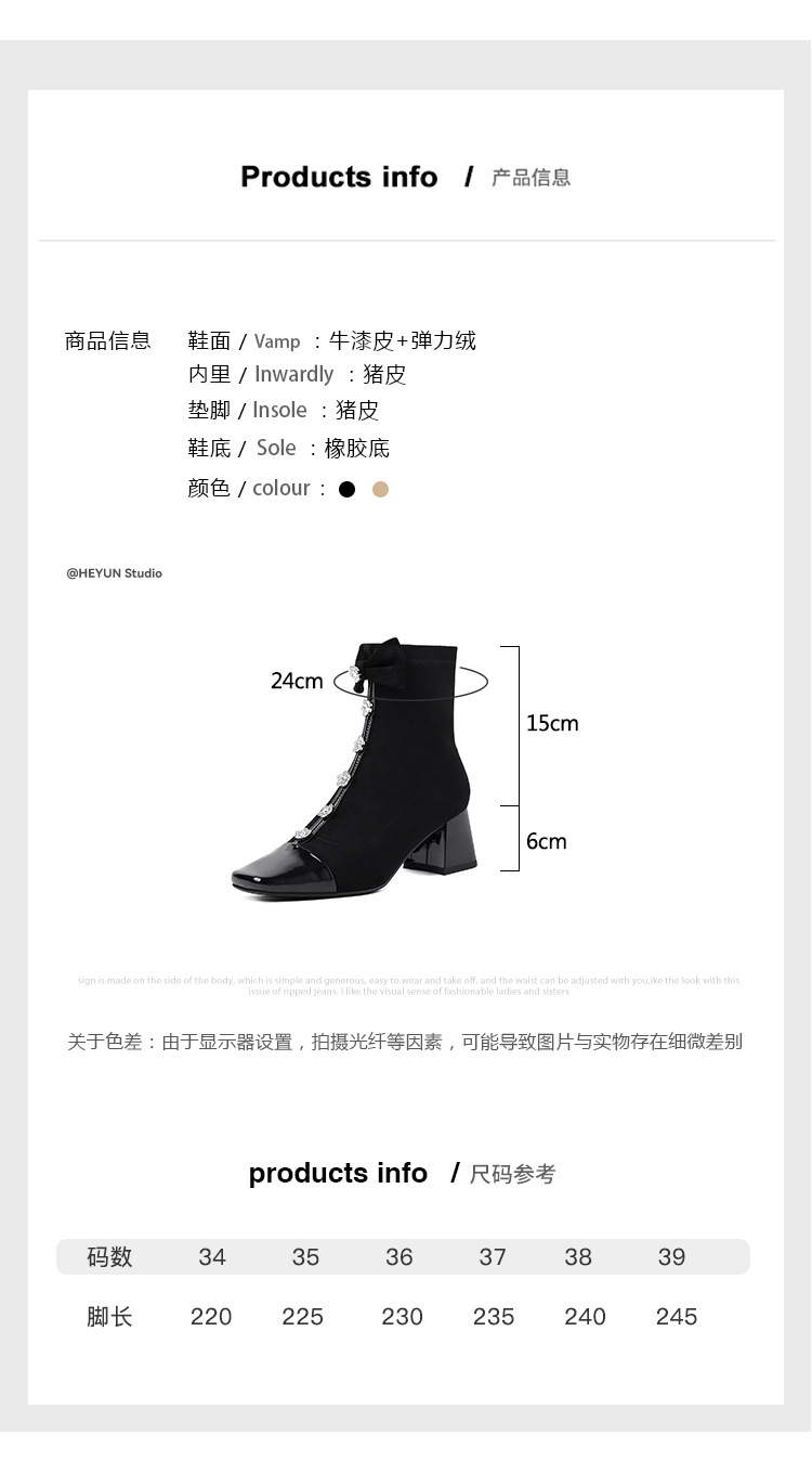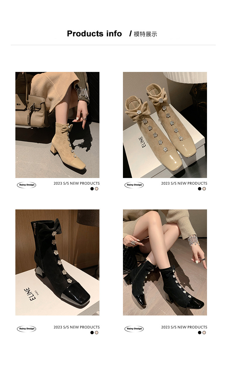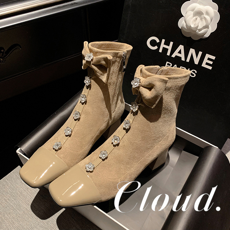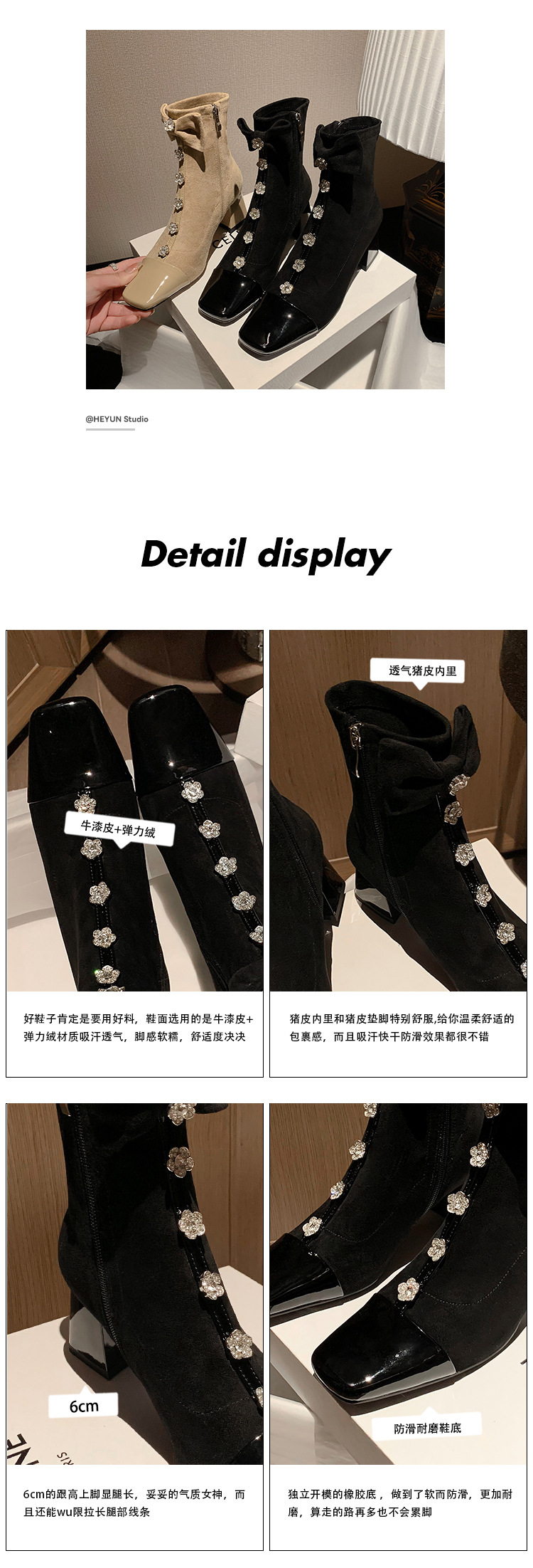 활 꽃 다이아몬드 버클 발목 부츠 여성 가을 및 겨울 빛 럭셔리 레이디 스타일 스위트 스퀘어 헤드 두꺼운 힐 사이드 지퍼 패션 부츠스토어 가기