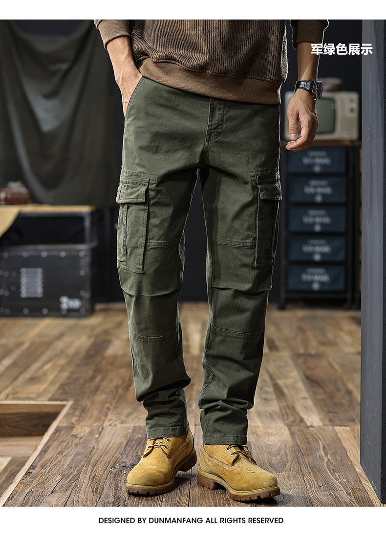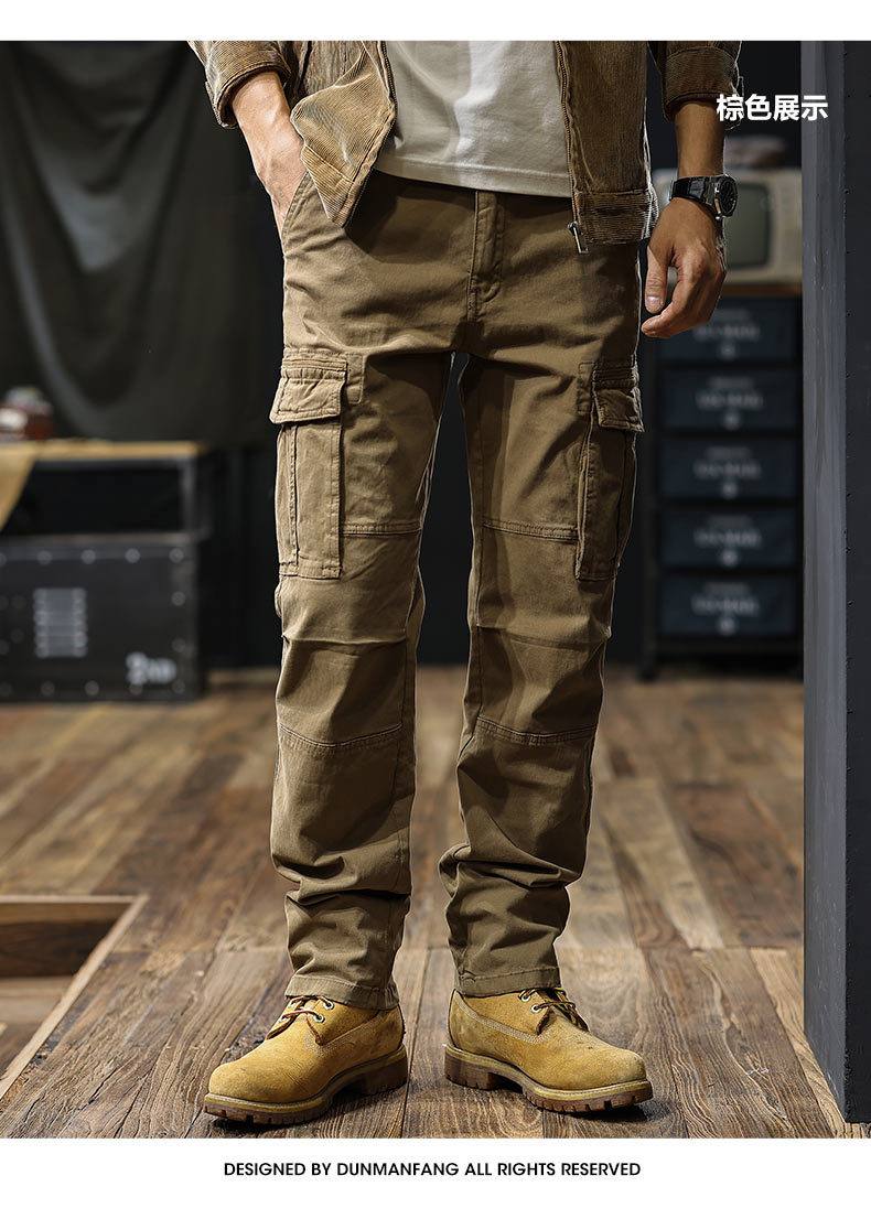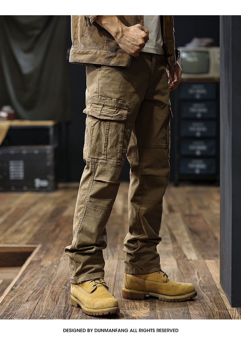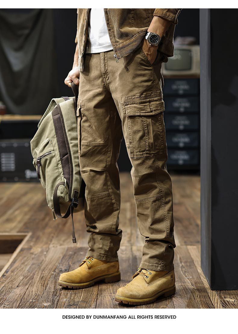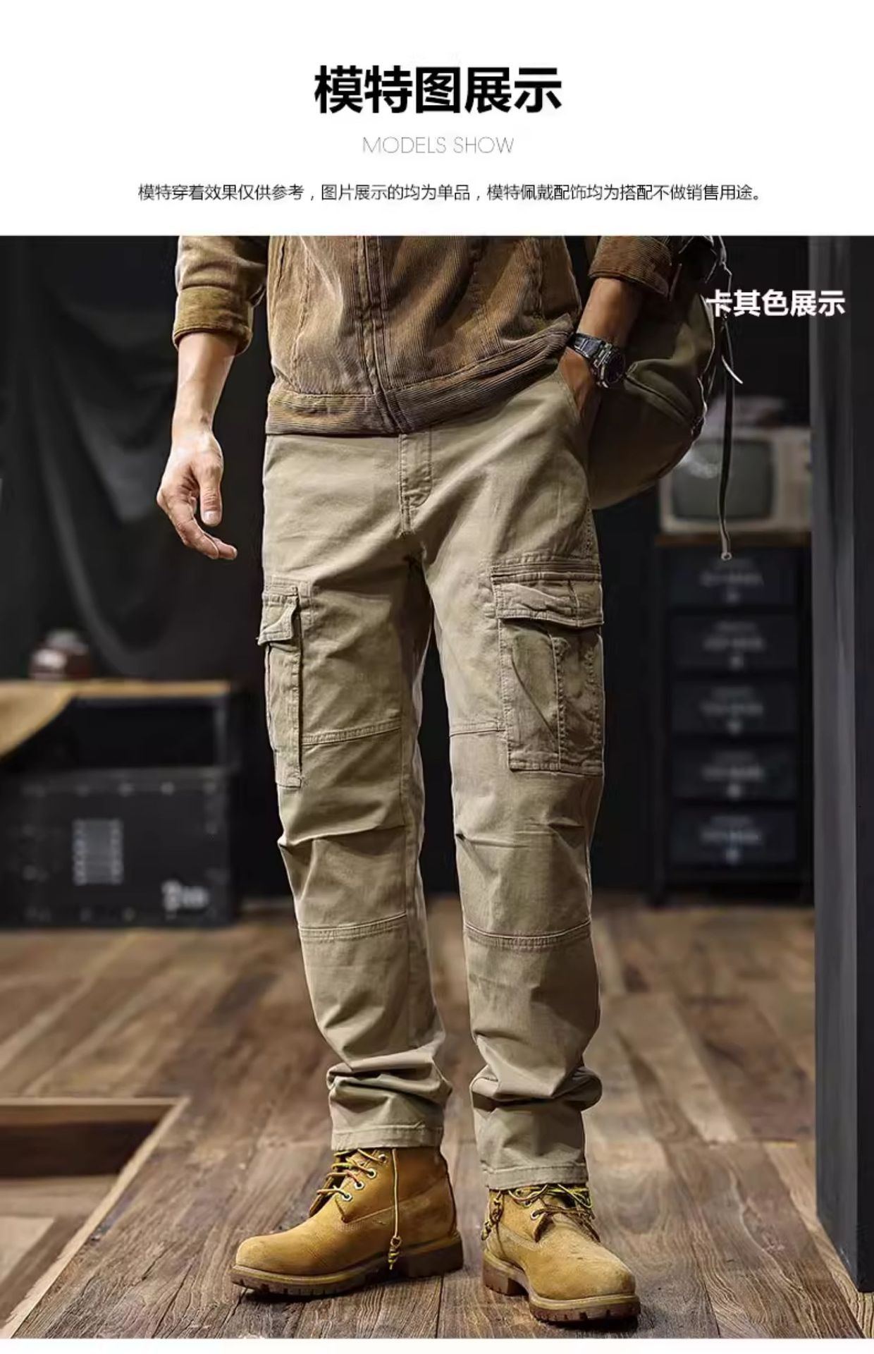 남성용 하이 엔드 헤비급 복고풍 낙하산 기병대 스트레이트 카고 바지 남성용 루즈한 멀티 포켓 하이 엔드 야외 스포츠 바지스토어 가기