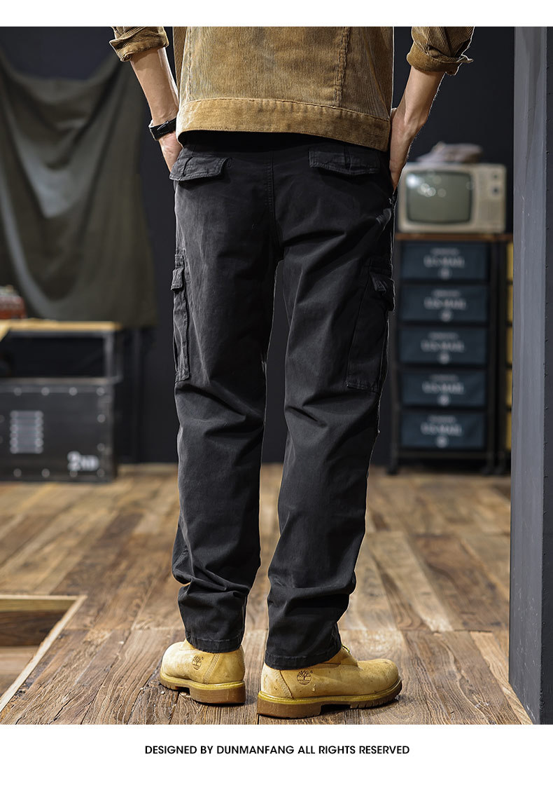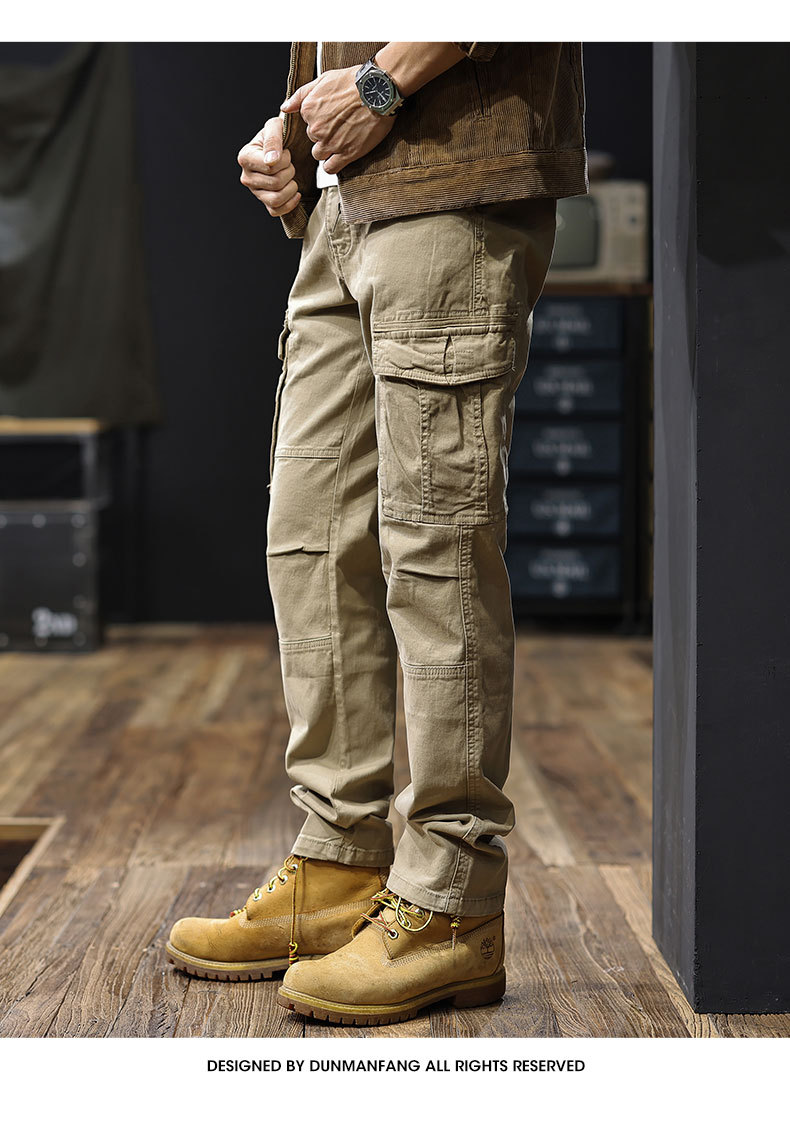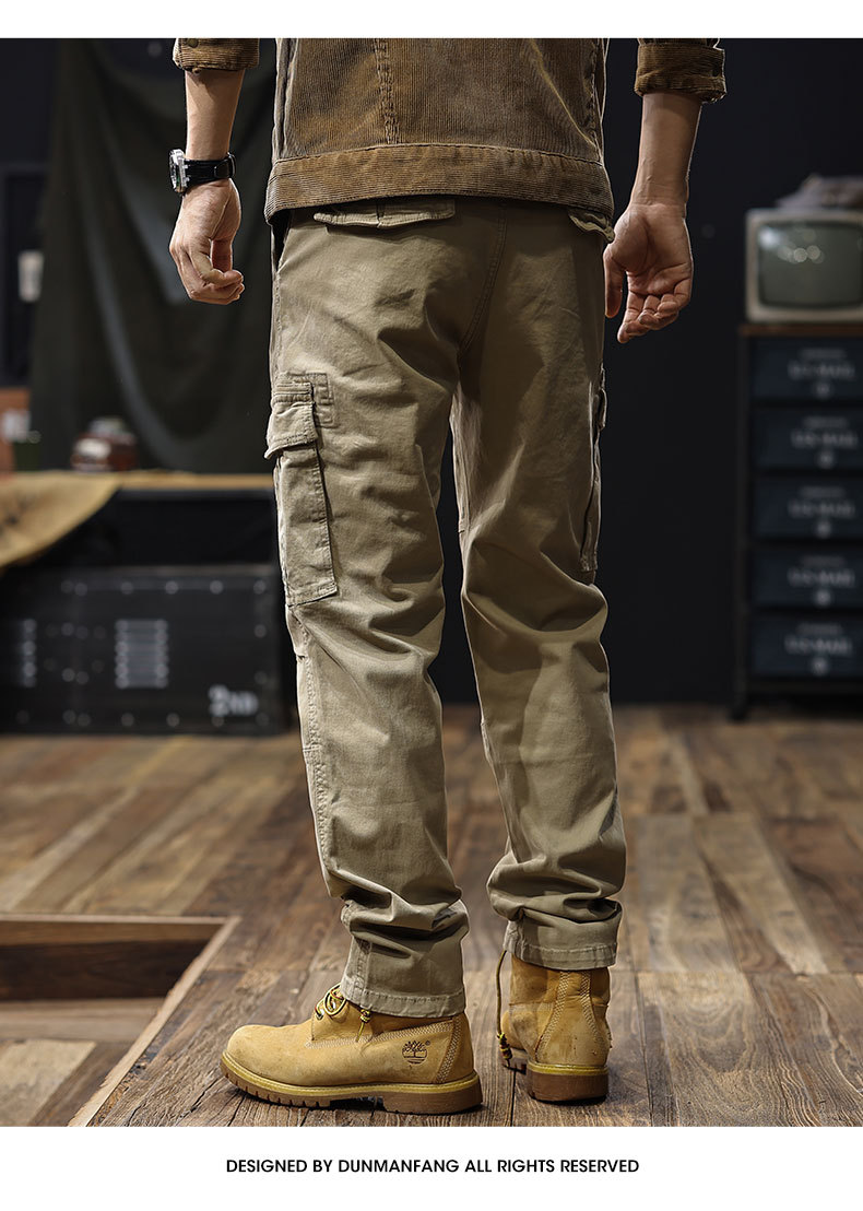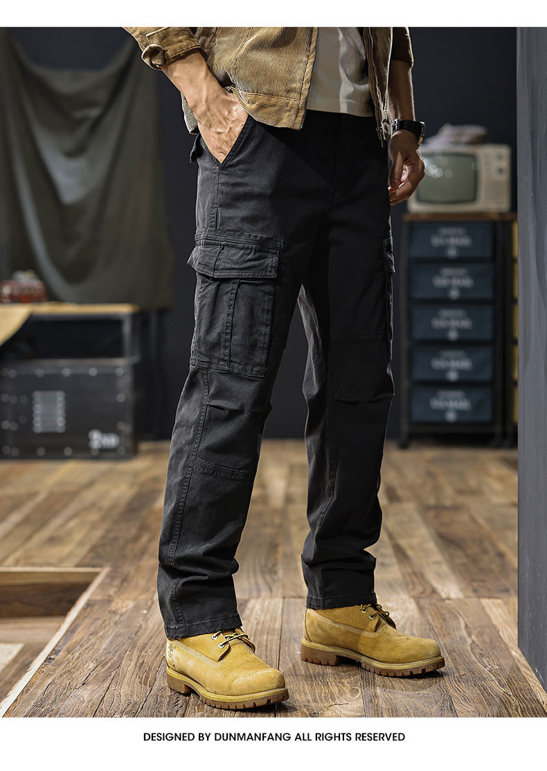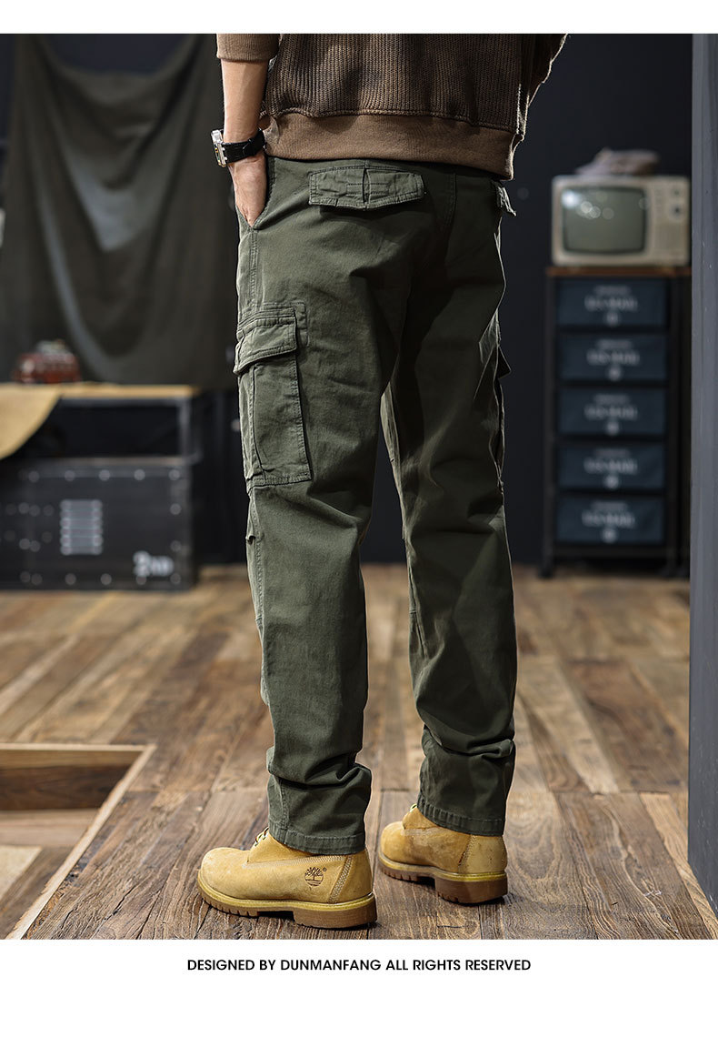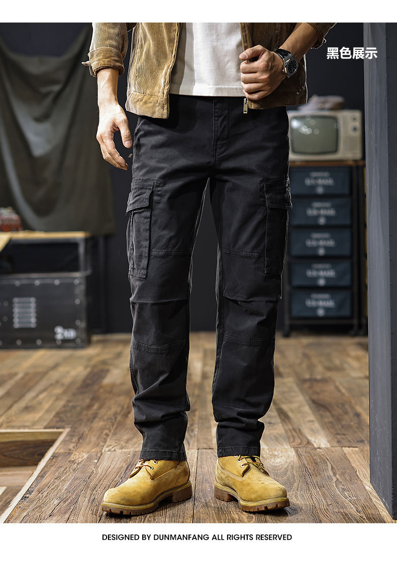 남성용 하이 엔드 헤비급 복고풍 낙하산 기병대 스트레이트 카고 바지 남성용 루즈한 멀티 포켓 하이 엔드 야외 스포츠 바지스토어 가기
