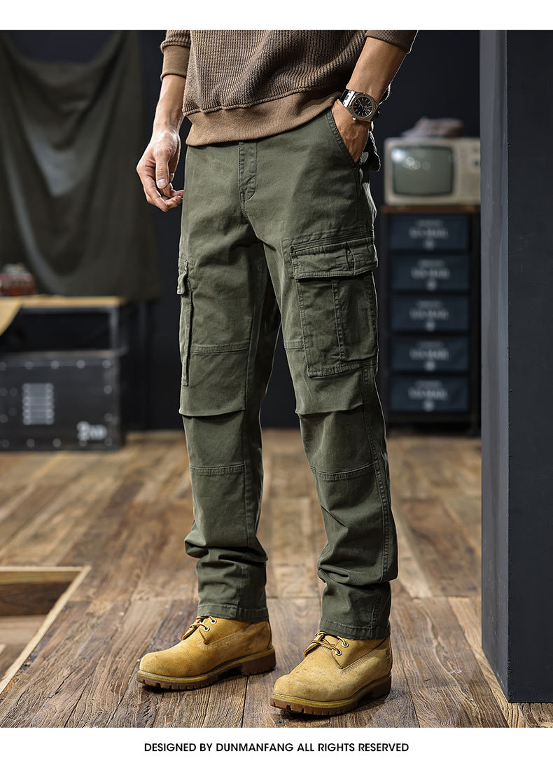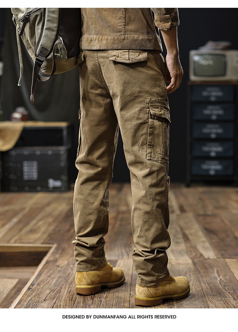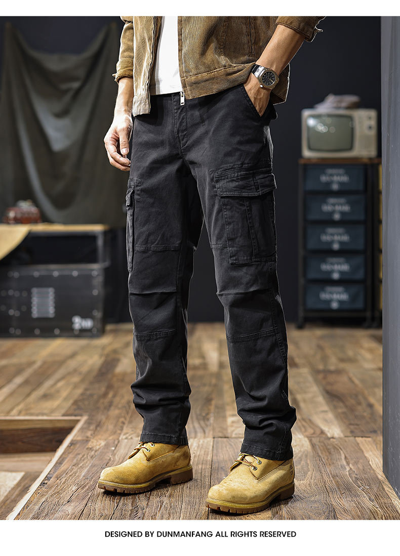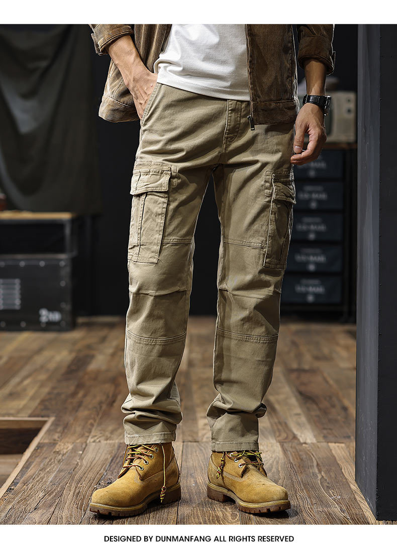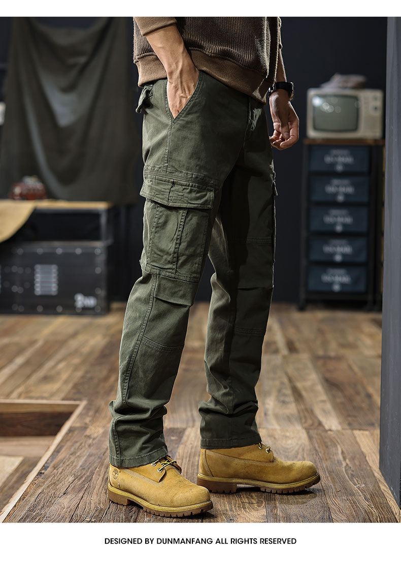 남성용 하이 엔드 헤비급 복고풍 낙하산 기병대 스트레이트 카고 바지 남성용 루즈한 멀티 포켓 하이 엔드 야외 스포츠 바지스토어 가기
