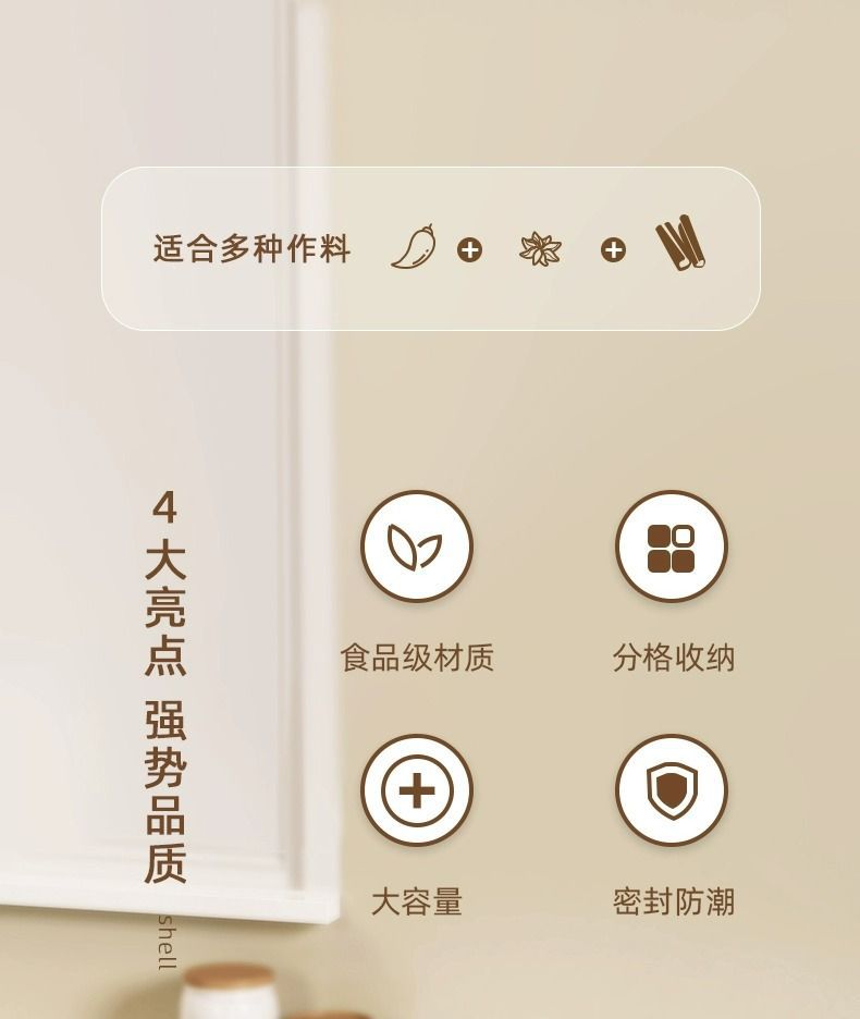 일본 향신료 저장 상자 가정용 큰 재료 계피 후추 조미료 항아리 분할 조미료 항아리 주방 양념 상자