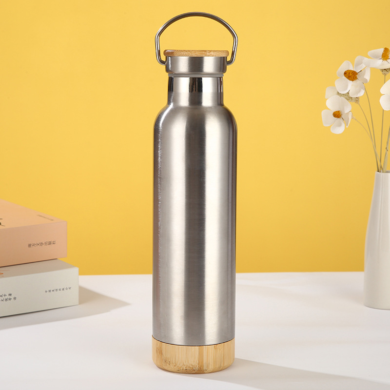 국경 304 스테인레스 스틸 스포츠 주전자 진공 보온병 컵 큰 입 공간 컵 나무 바닥 등산 냄비 간단한 자동차스토어 가기