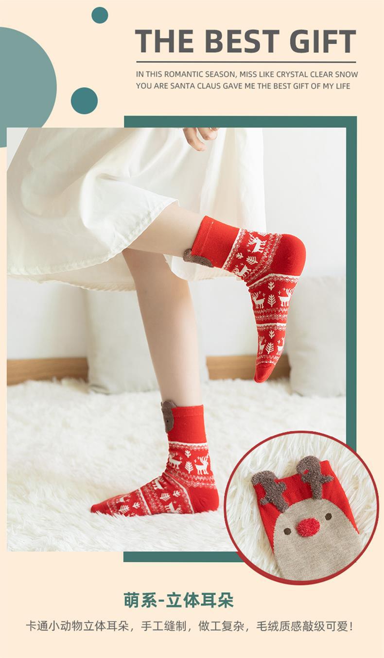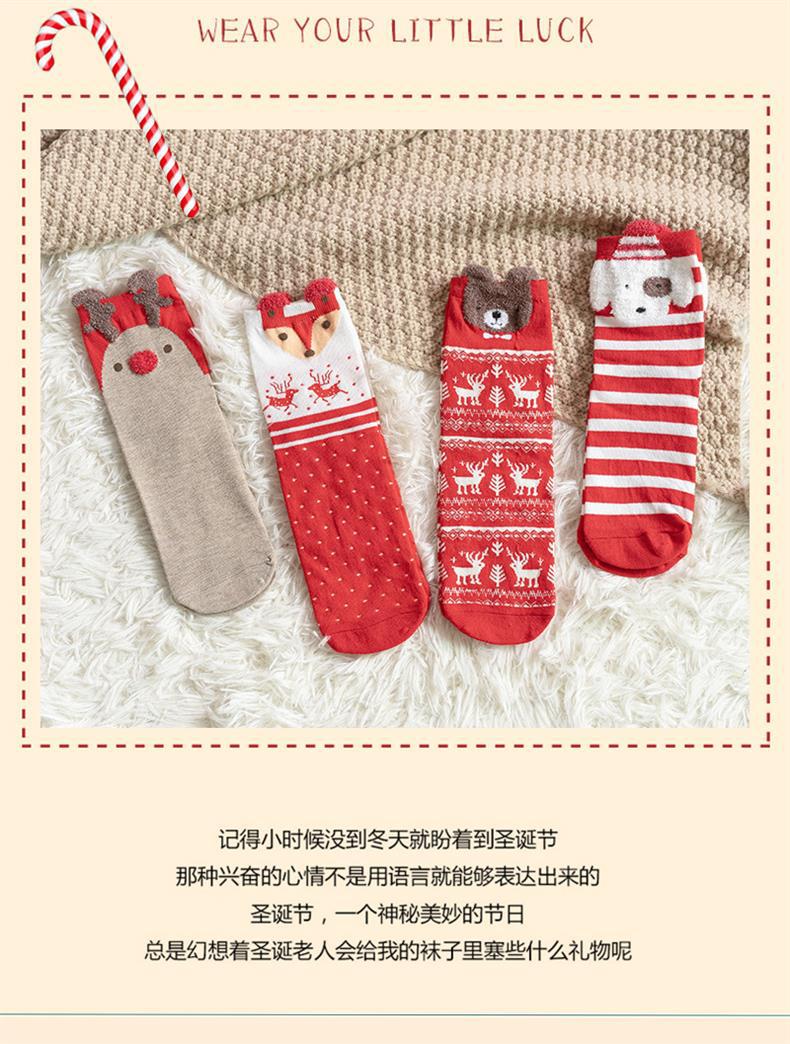 어린이를위한 크리스마스 양말 가을과 겨울 새해 축제 여성 양말 일본 양말 3 차원 만화 엘크 국경 여성 미드 튜브 양말스토어 가기