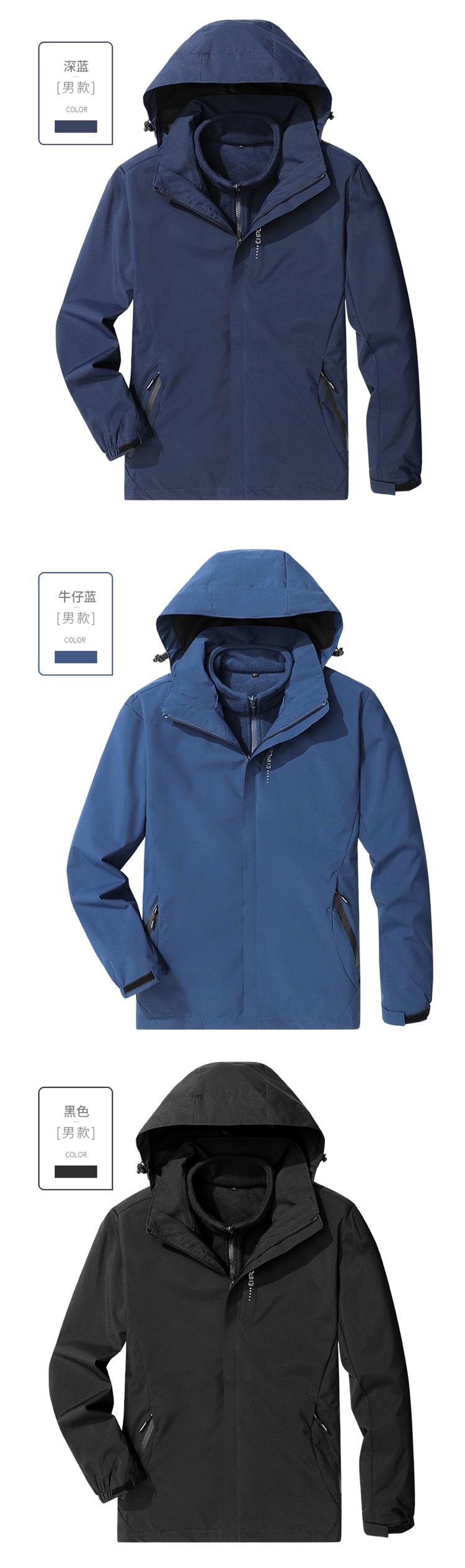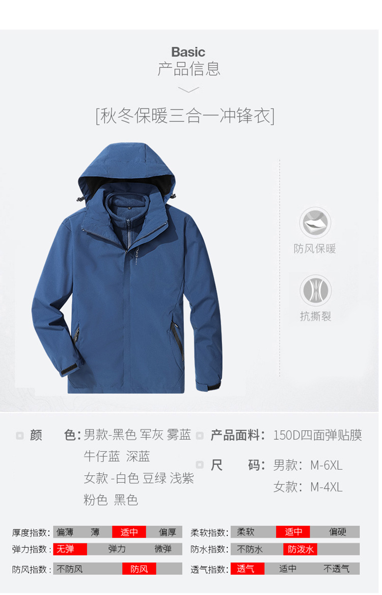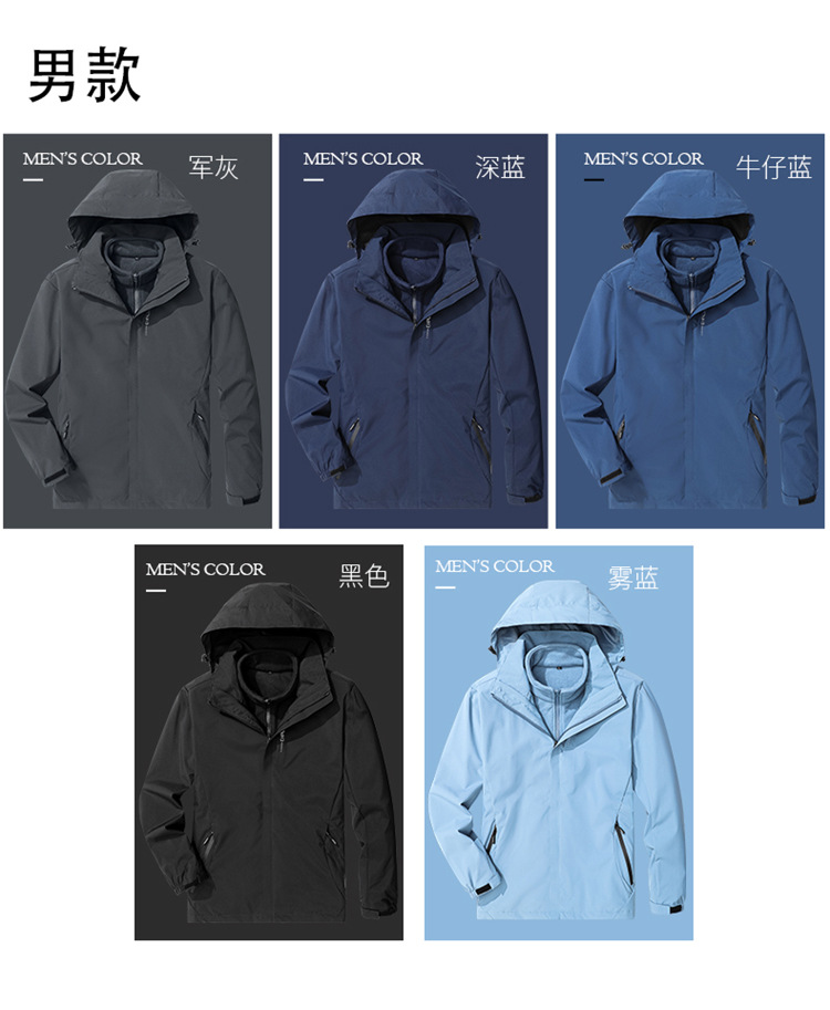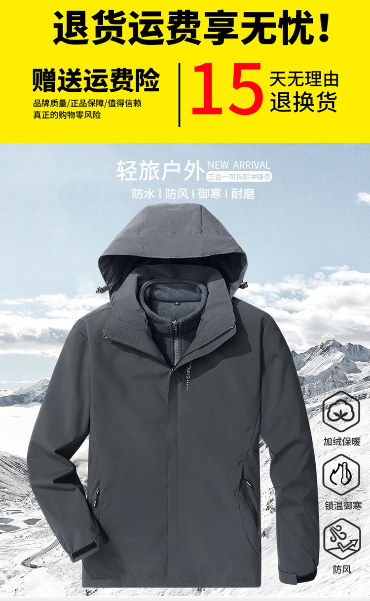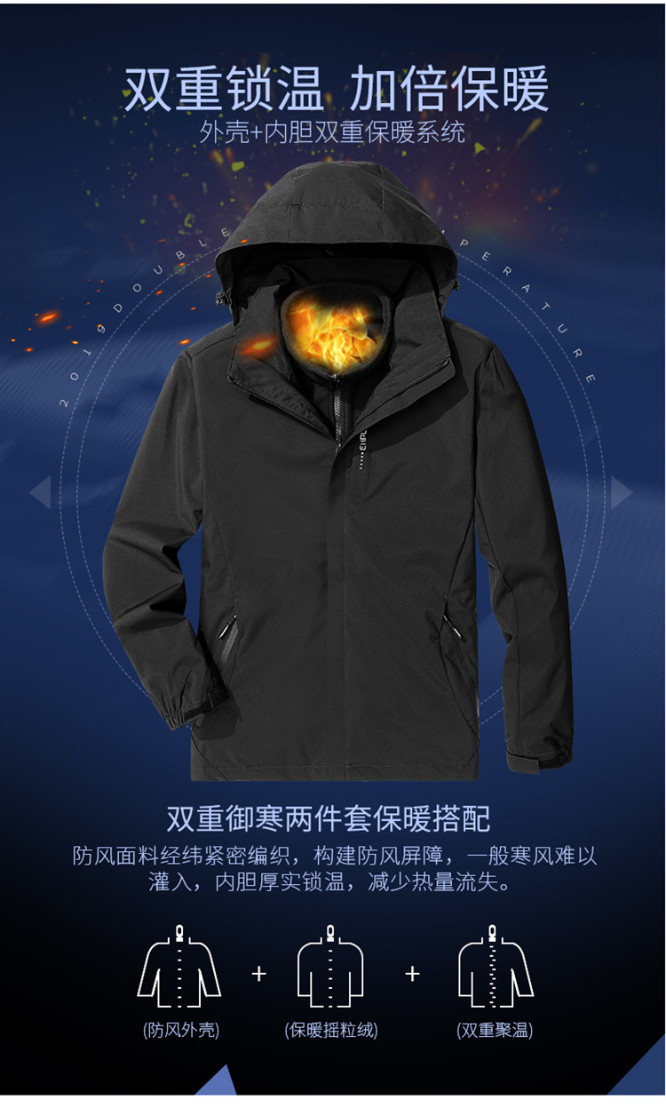 야외 충전 재킷 남자의 3 대 1 분리 가능한 가을과 겨울 방수 방풍 등산 세트 세트 남성용 옷과 바지스토어 가기