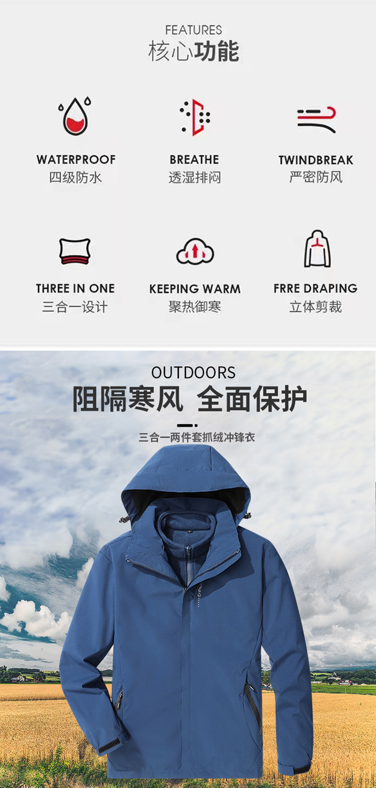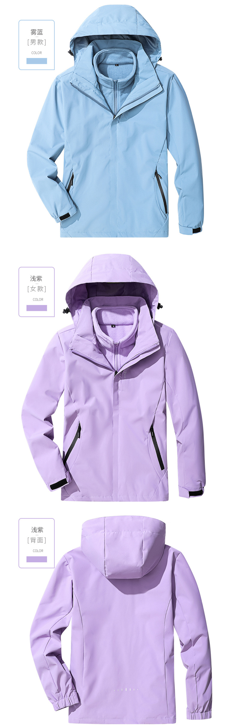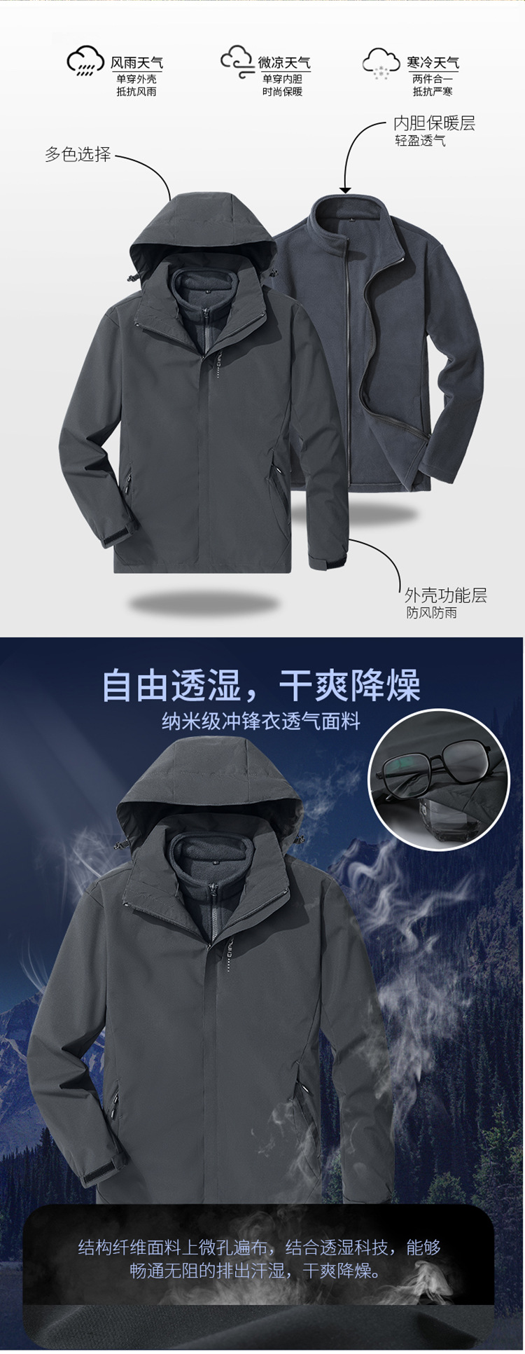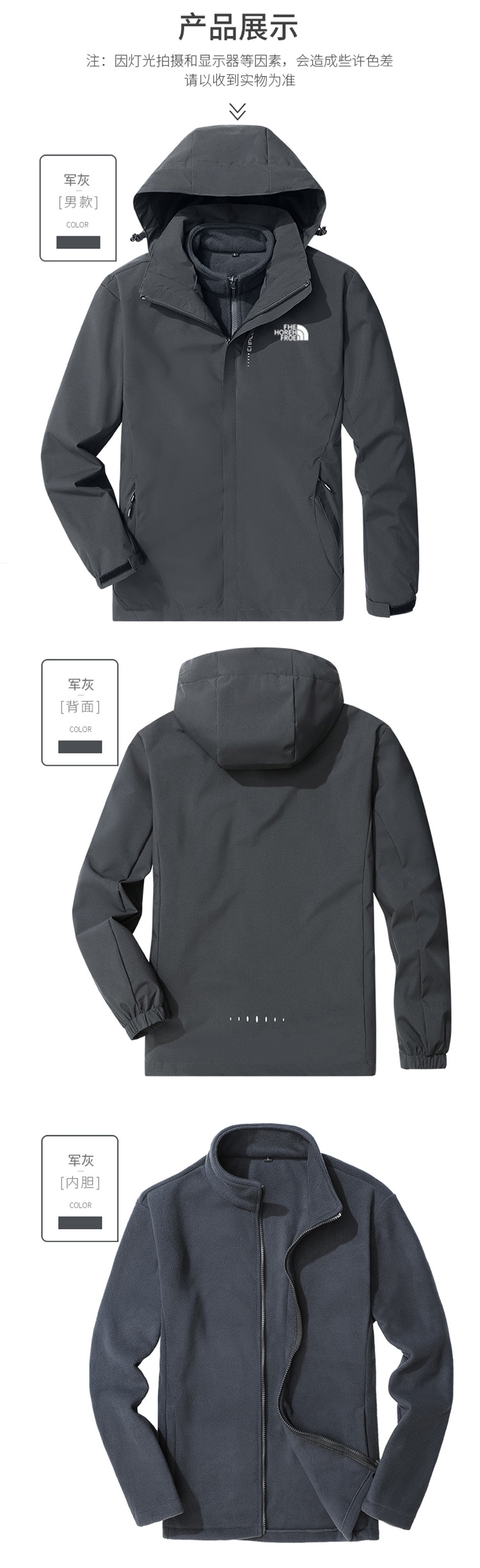 야외 충전 재킷 남자의 3 대 1 분리 가능한 가을과 겨울 방수 방풍 등산 세트 세트 남성용 옷과 바지스토어 가기