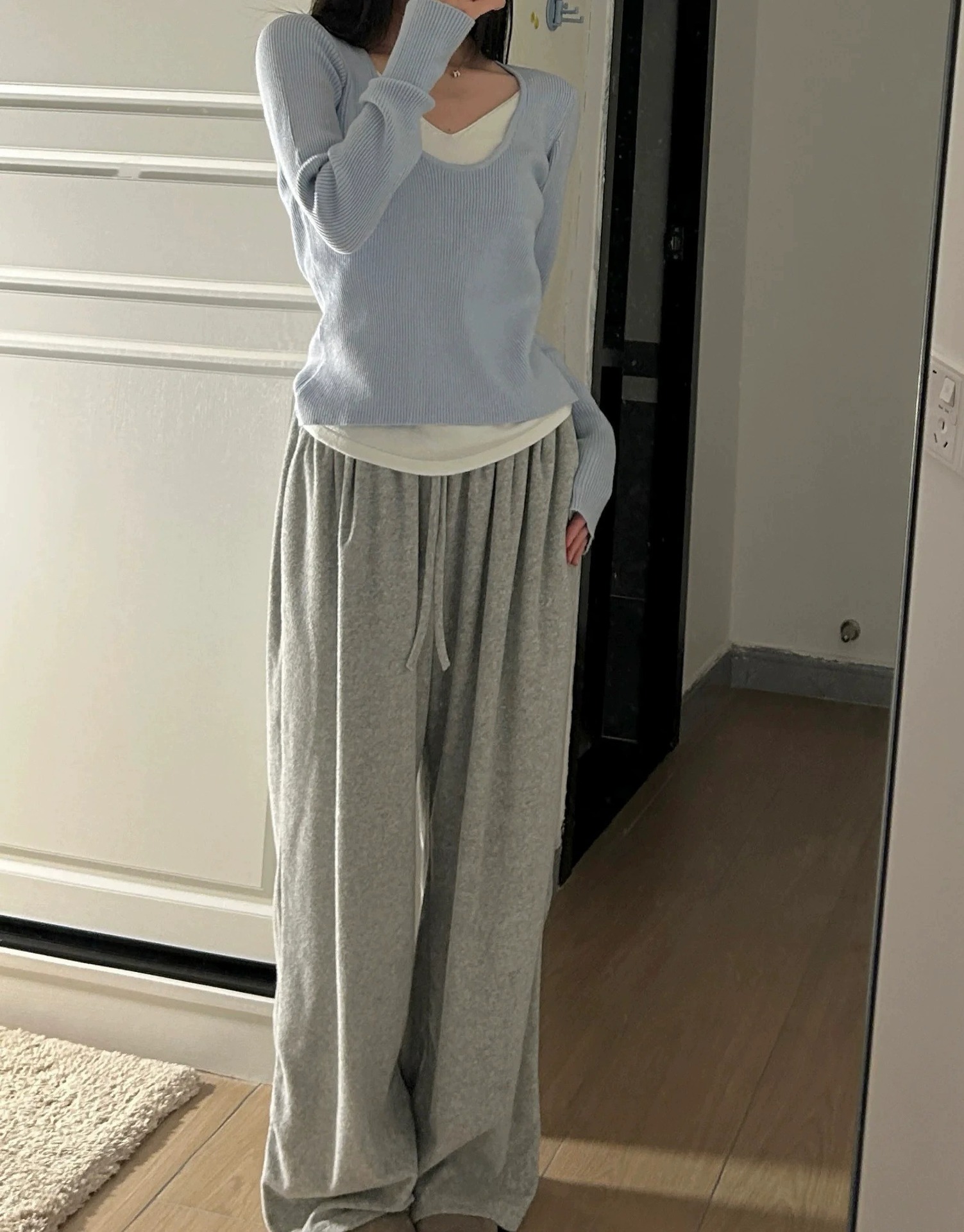 가을과 겨울 기질의 세대 크로스 국경 가짜 두 V 넥 긴 소매 스웨터 여성의 얇은 내면베이스 코트스토어 가기