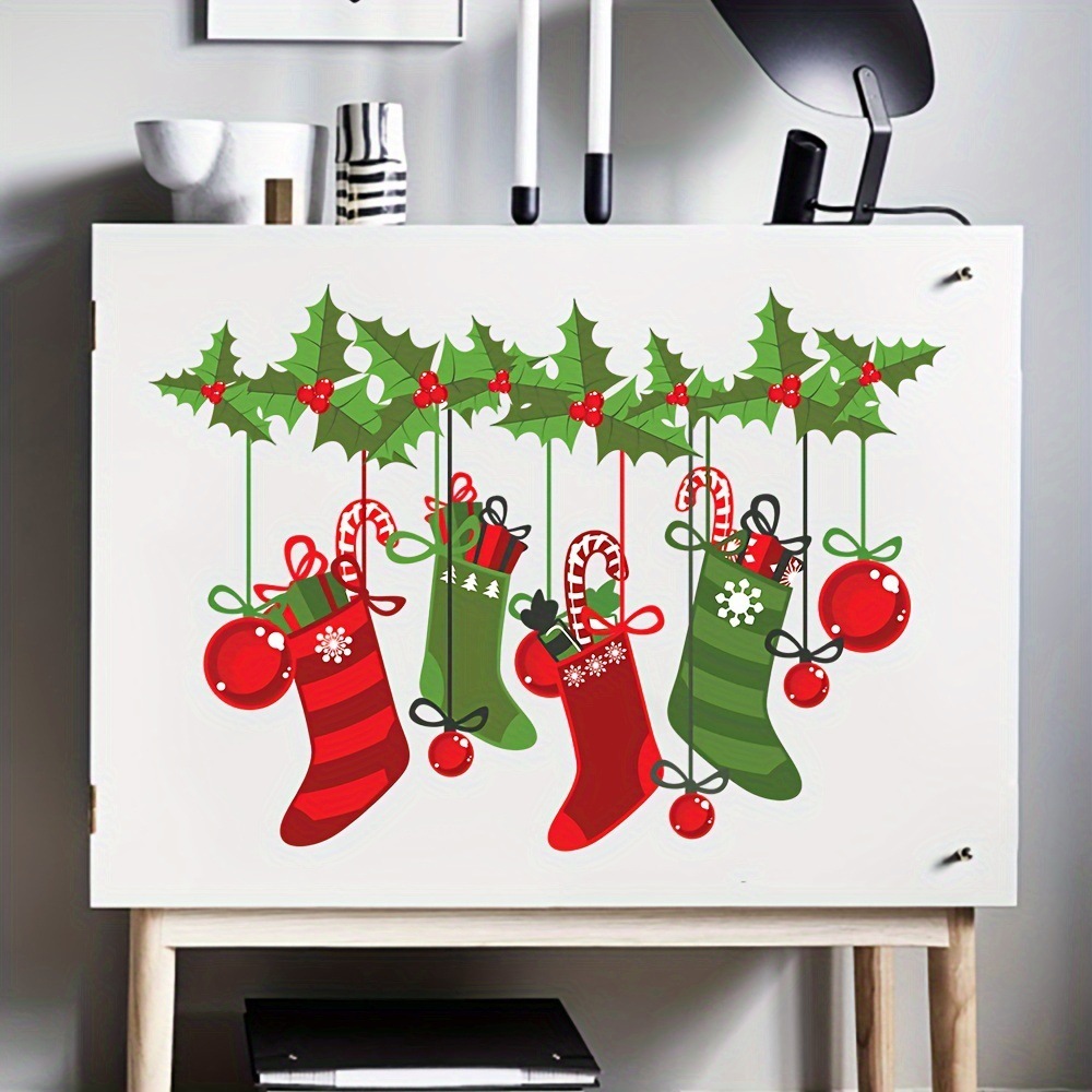 크로스 보더 아트 데코 위장 크리스마스 스타킹 PVC 셀프 접착 장식 거실 침실 복도 욕실 화장실
