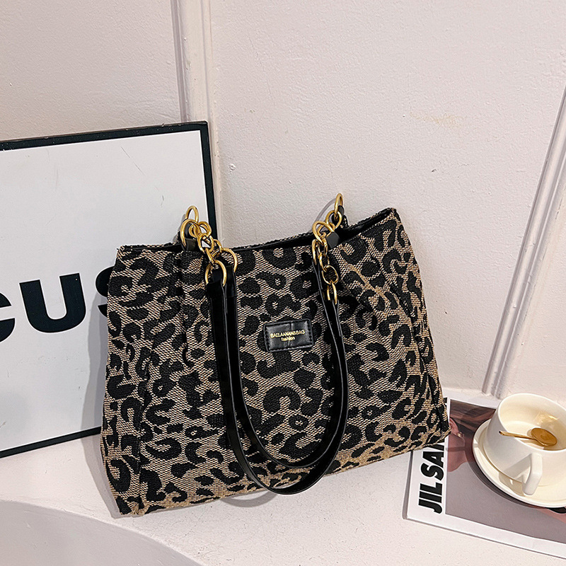 유럽과 미국의 레트로 패션 통근 대용량 레오파드 무늬 어깨 가방 새로운 가을과 겨울 인기있는 캐주얼 올 매치 토트 백