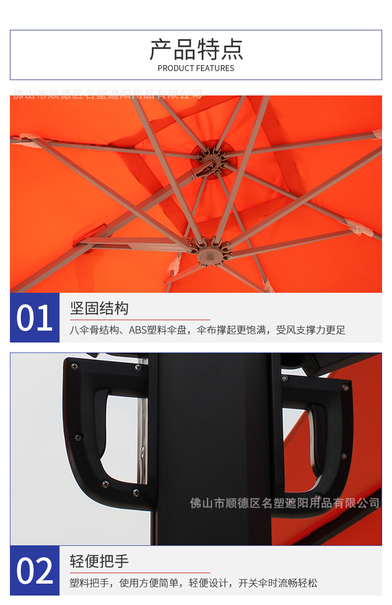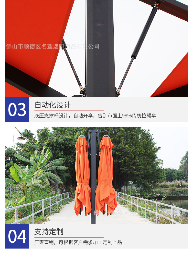 야외용 파라솔, 안뜰용 로마식 파라솔, 경비실용 파라솔, 양면형 보안용 파라솔, 상업용 야외용 파라솔, 정원용 대형 파라솔