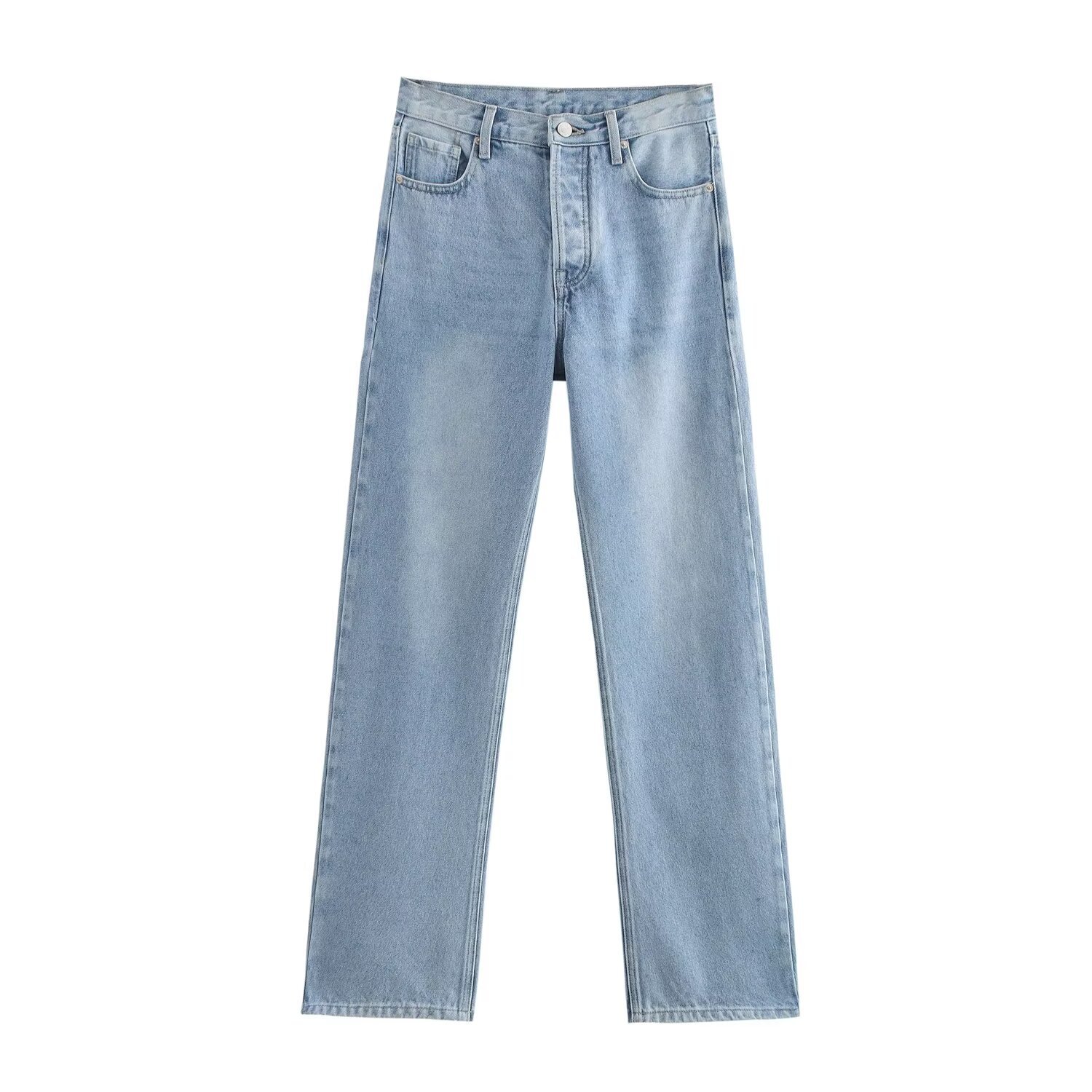UC & ZA 국경 AliExpress 유럽과 미국 여성의 높은 허리 레트로 간단한 조커 느슨한 직선 청바지 050395