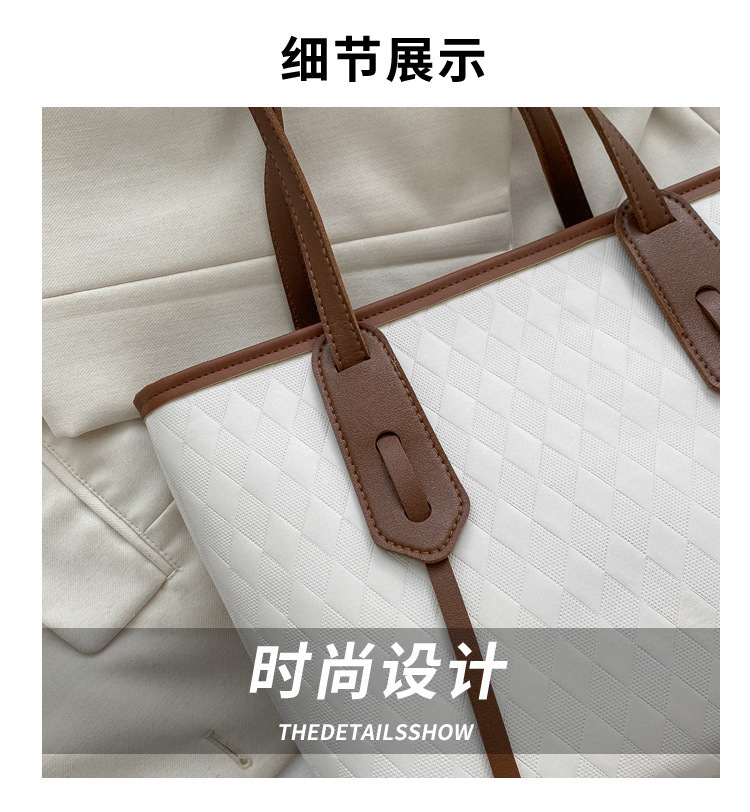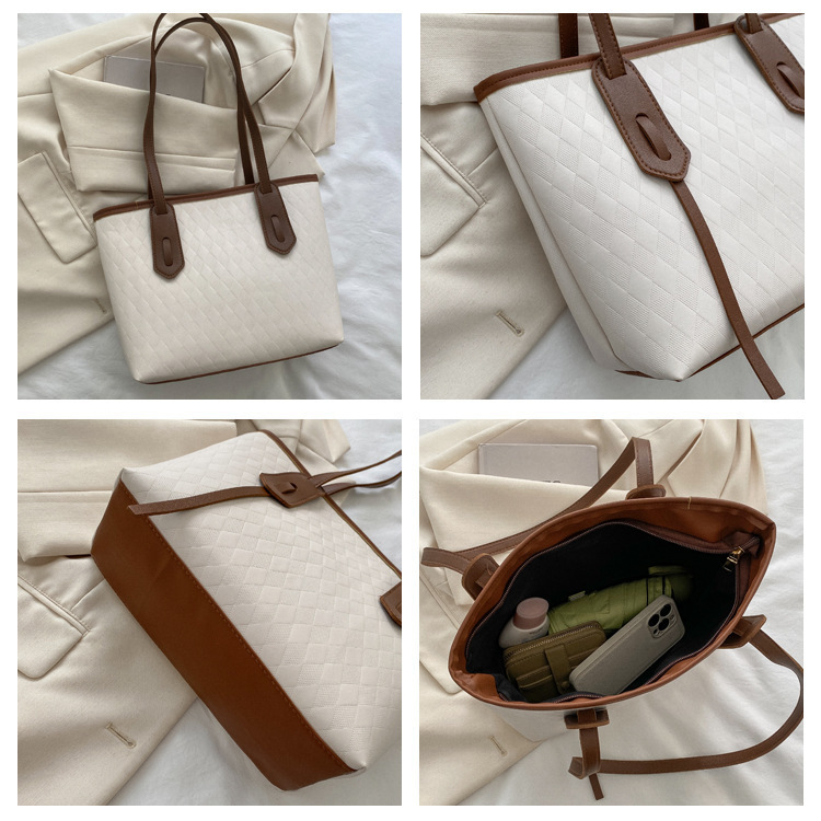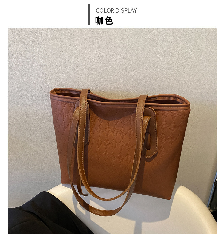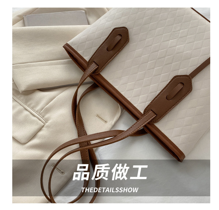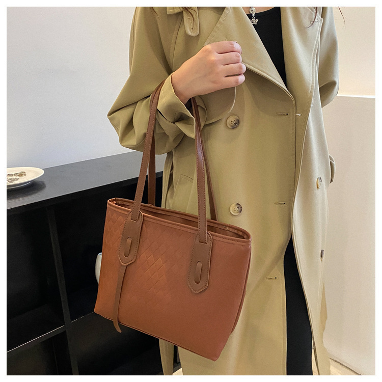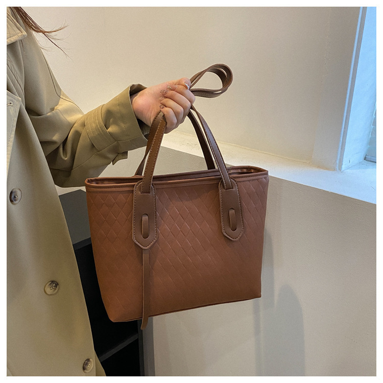 이른 가을 통근 대용량 가방 여성의 2024 새로운 패션 복고풍 어깨 가방 섬유 마름모꼴 휴대용 토트 백