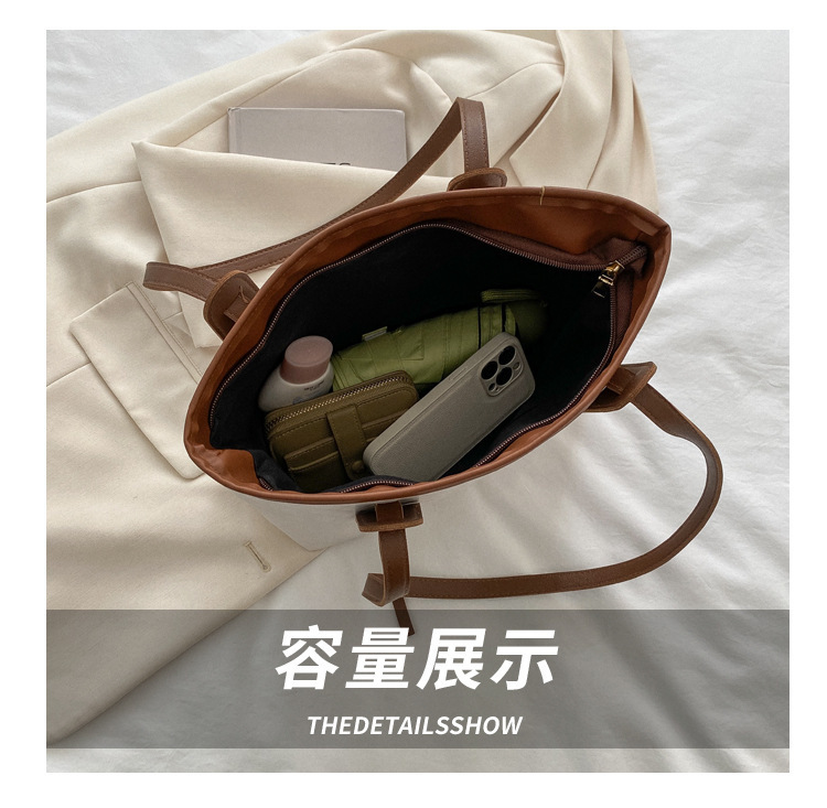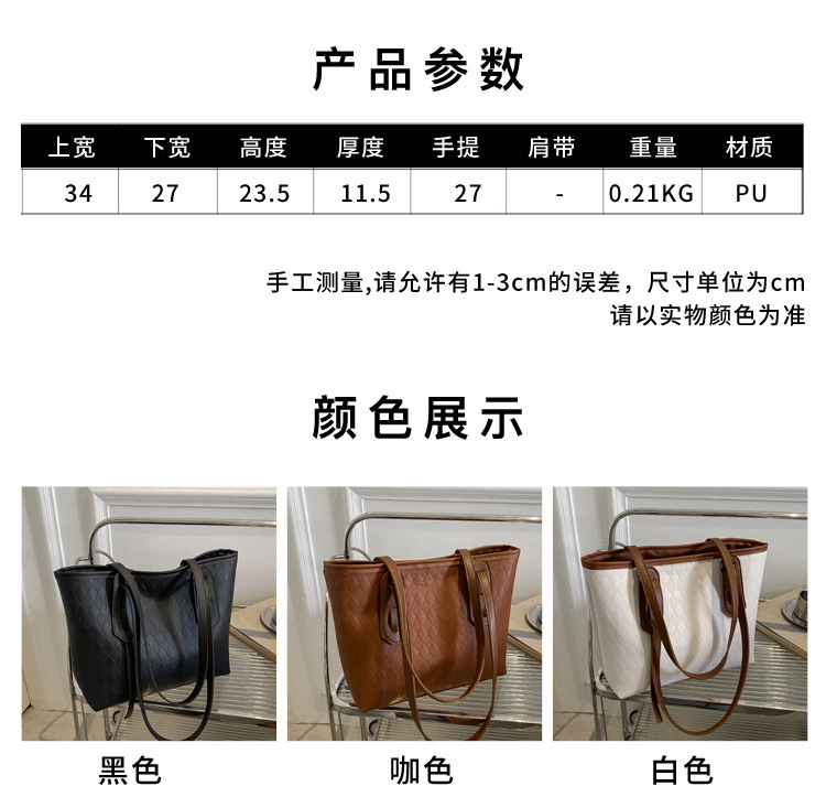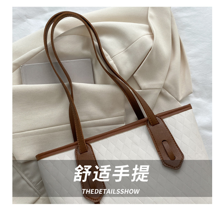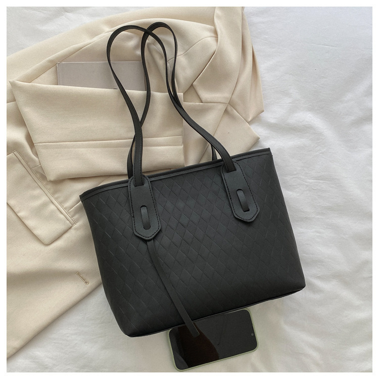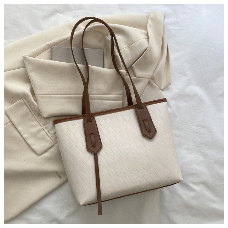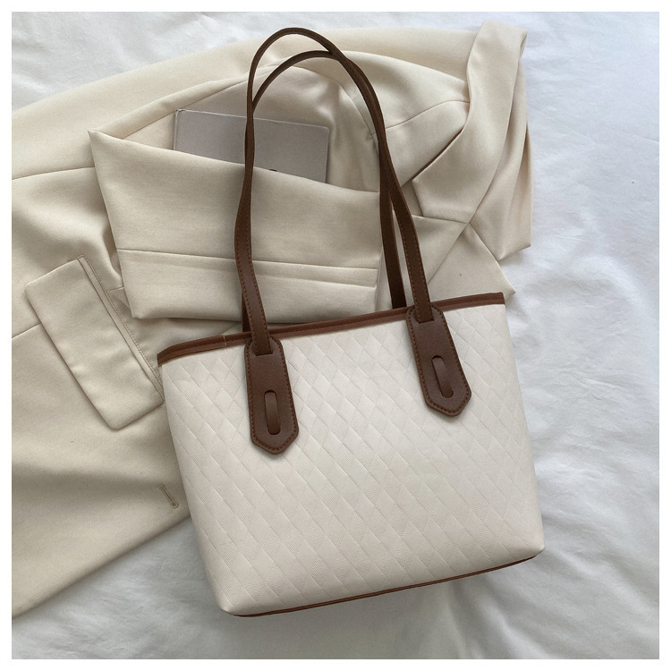 이른 가을 통근 대용량 가방 여성의 2024 새로운 패션 복고풍 어깨 가방 섬유 마름모꼴 휴대용 토트 백