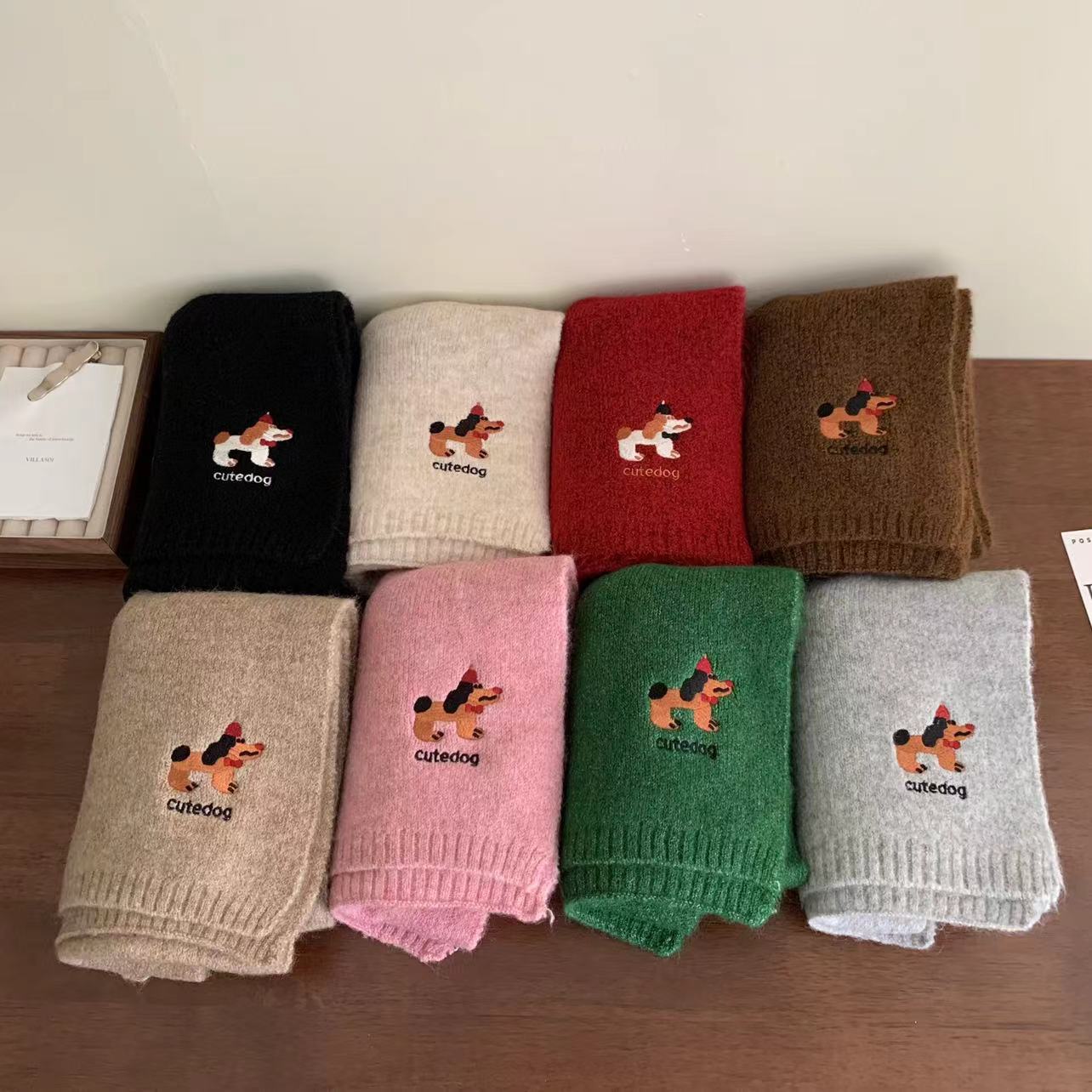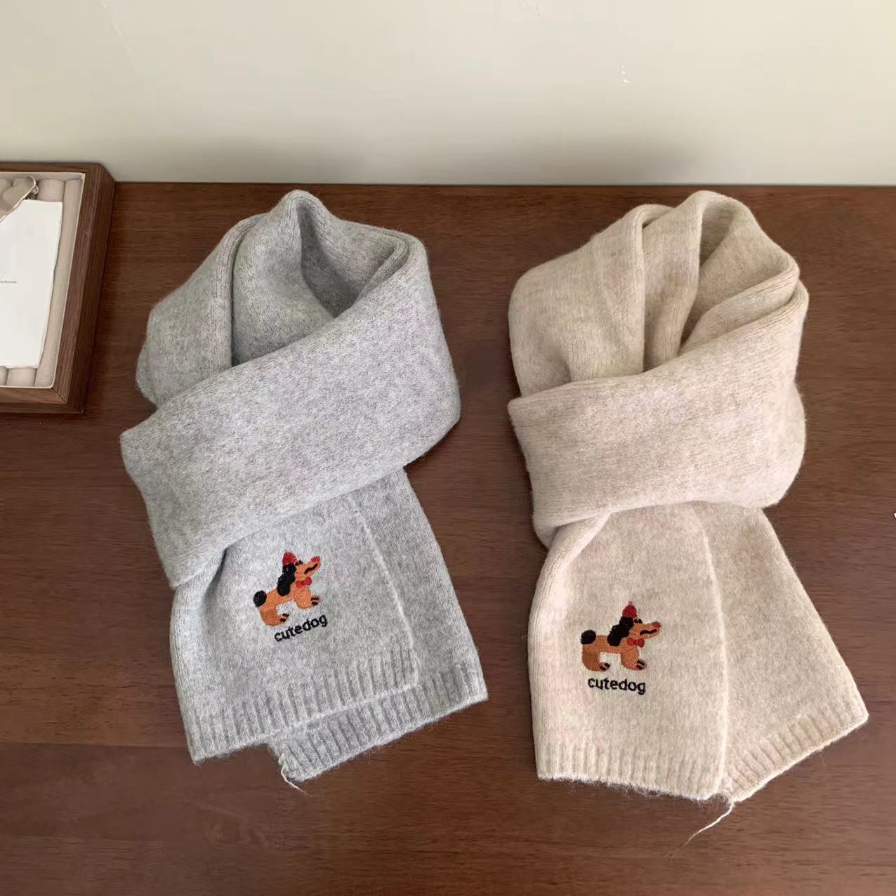일본 귀여운 강아지 자수 니트 스카프 가을과 겨울 따뜻한 감기 방지 패션 올 매치 하이 엔드 스카프 학생 여성스토어 가기