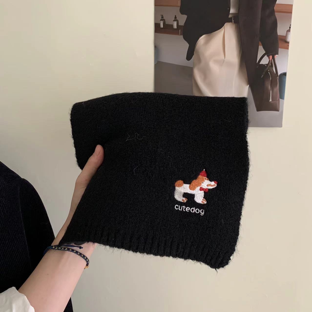 일본 귀여운 강아지 자수 니트 스카프 가을과 겨울 따뜻한 감기 방지 패션 올 매치 하이 엔드 스카프 학생 여성