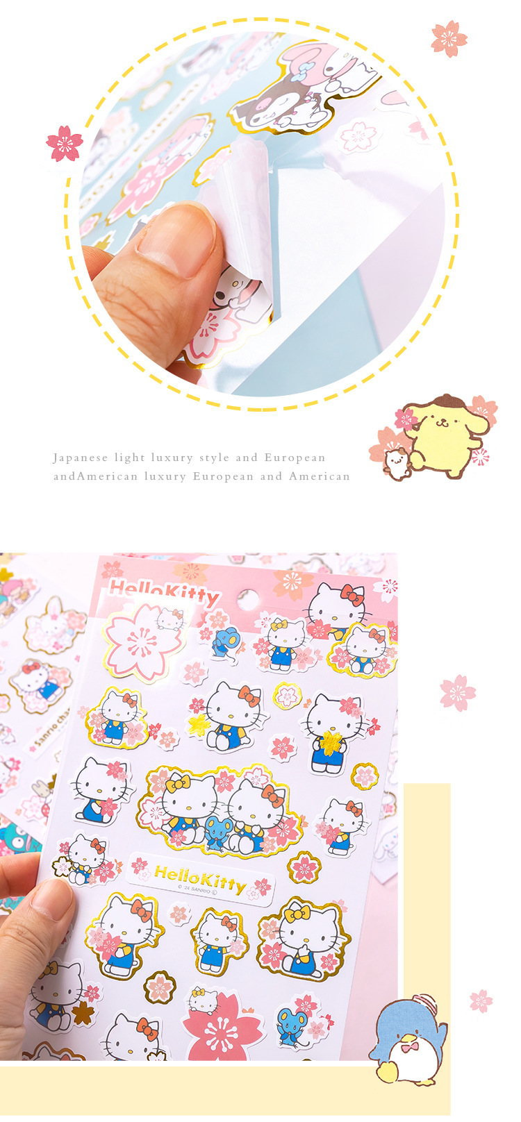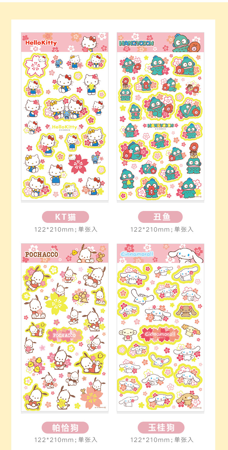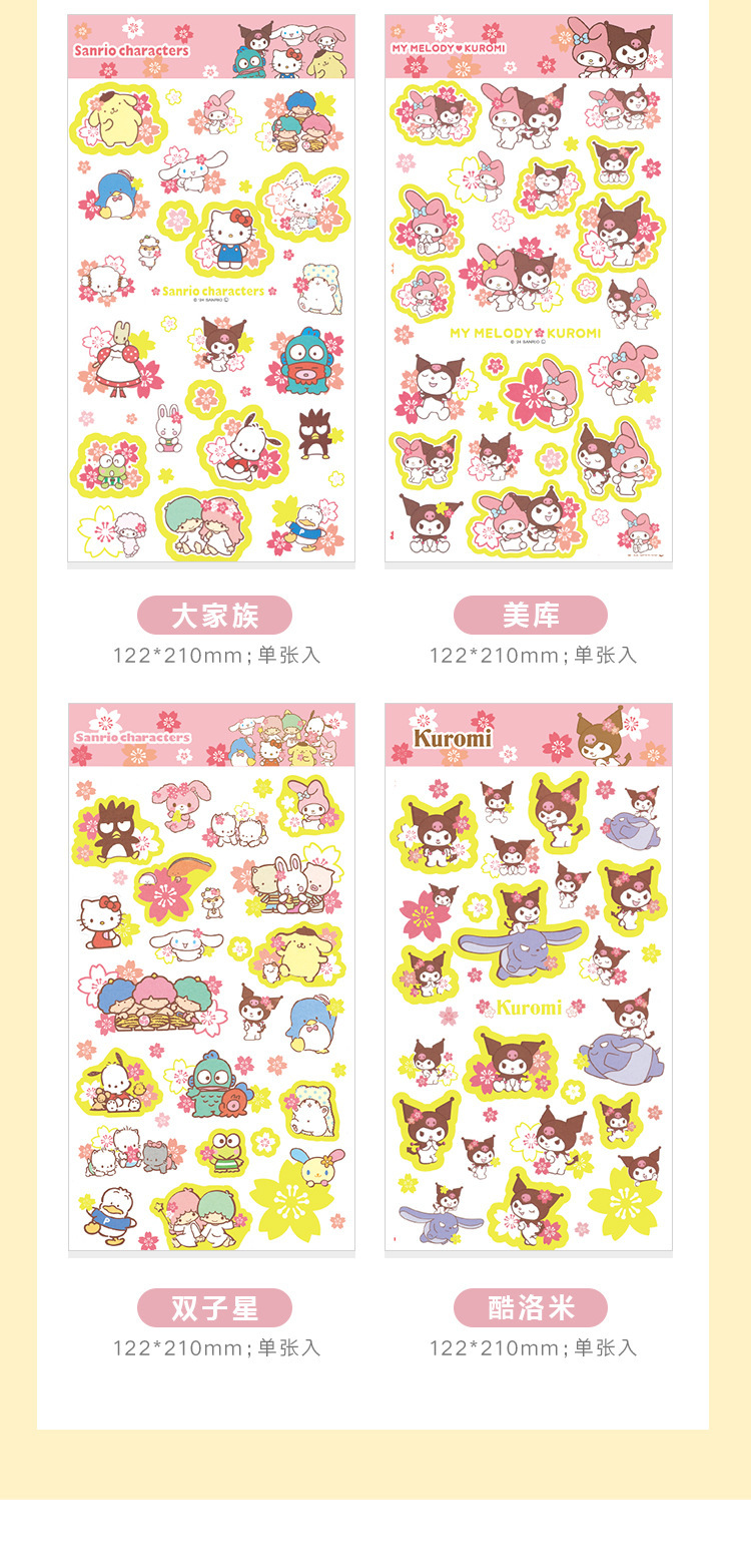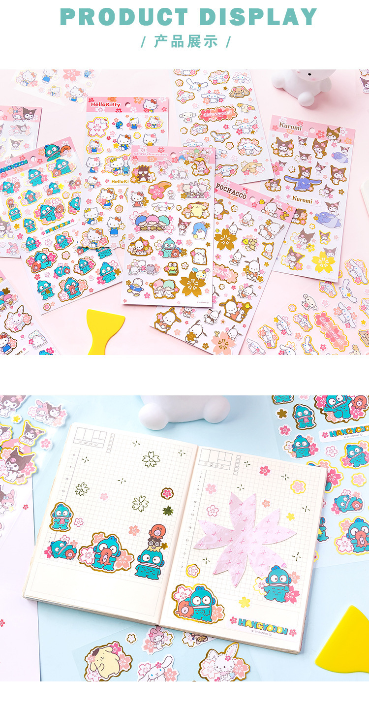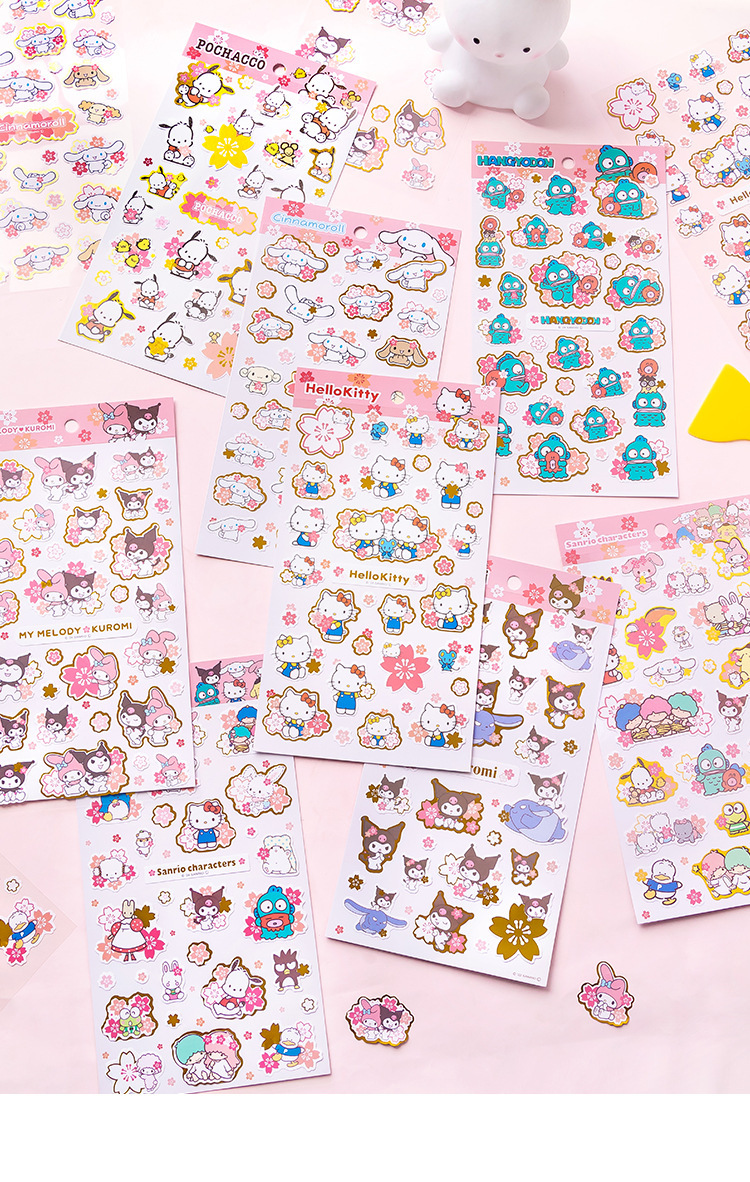 창조적 인 산리오 가족 사쿠라 문구 스티커 어린이 귀여운 만화 스티커 손 계정 소재 소녀 심장스토어 가기